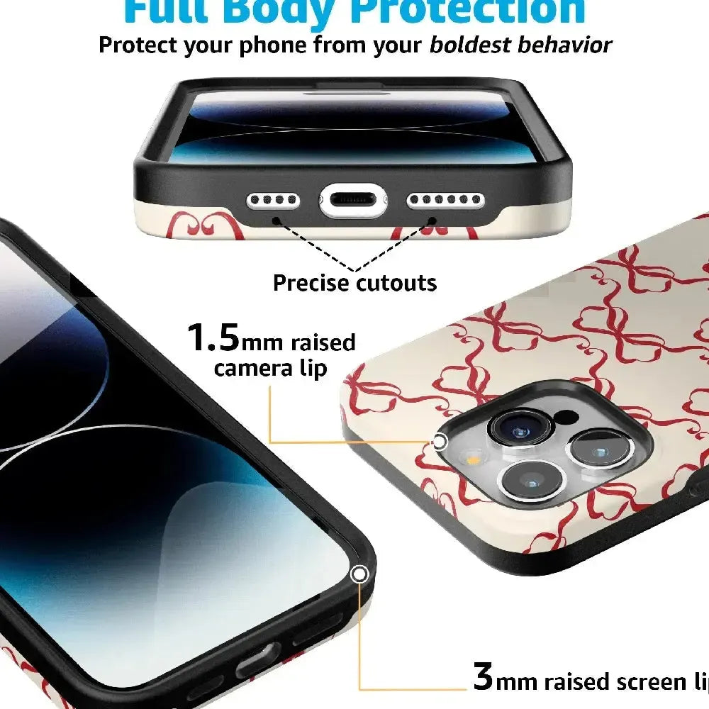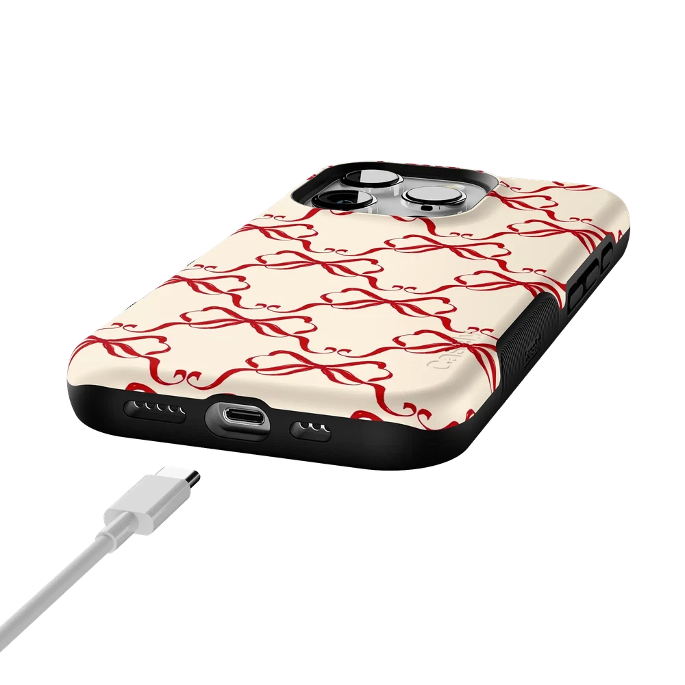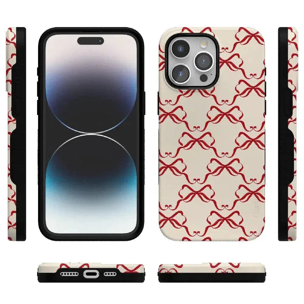 Crafted to fit your device securely. the Vintage Bows Case provides outstanding protection while remaining slim and easy to handle. Its delicate bow design. set against a soft. neutral background. delivers a festive aesthetic that works seamlessly all year round. With options to fit popular devices and support for MagSafe on select iPhone models. this case ensures both style and functionality.