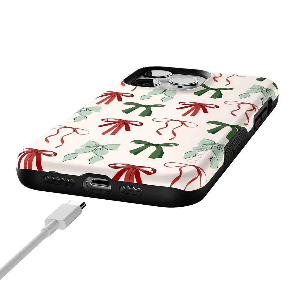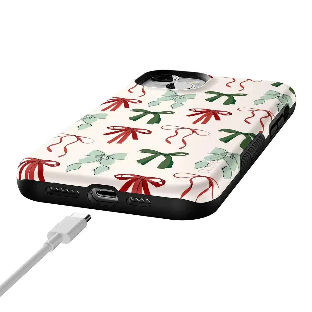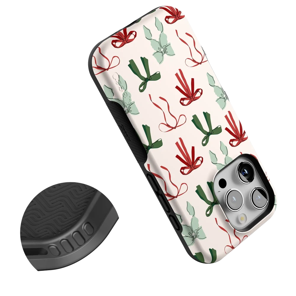 The Festive Girlie Holiday Bows Case is crafted from high-quality materials to ensure your phone is well-protected from daily wear and tear. Its slim. lightweight design maintains a sleek profile. making it easy to carry without adding bulk. The delightful bow pattern captures the holiday spirit in a subtle and sophisticated way. making it ideal for those who love festive fashion.