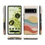The design features a golden sun at the top with beams shooting upward over a multi-layered landscape. Each layer of the landscape features a different color. from a cool teal to a warm reddish-brown. At first. this amount of color may sound overbearing. but the pale tones all mix together for a satisfying display that we’re certain you’ll love. Give your phone the protection and style it deserves with this colorful phone case.