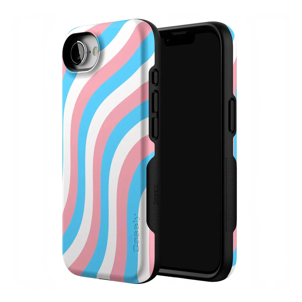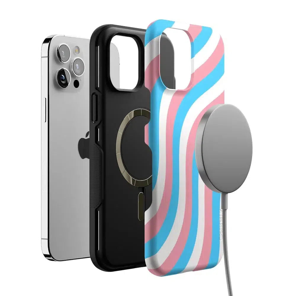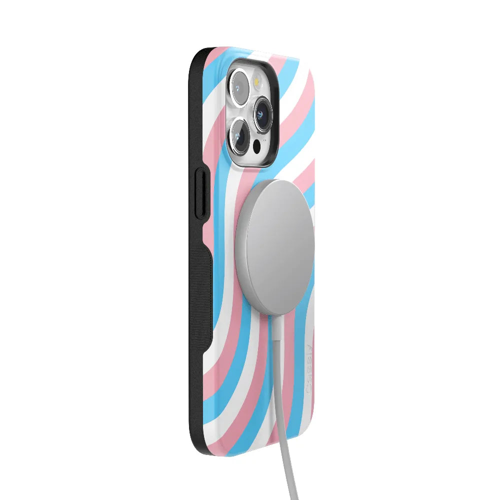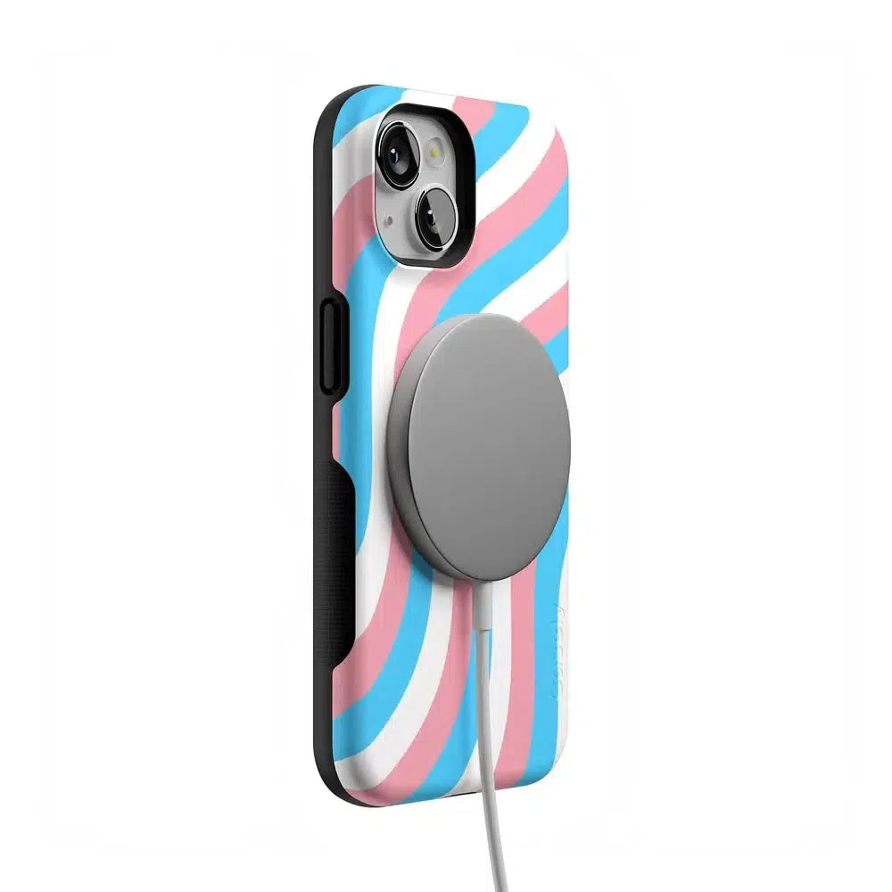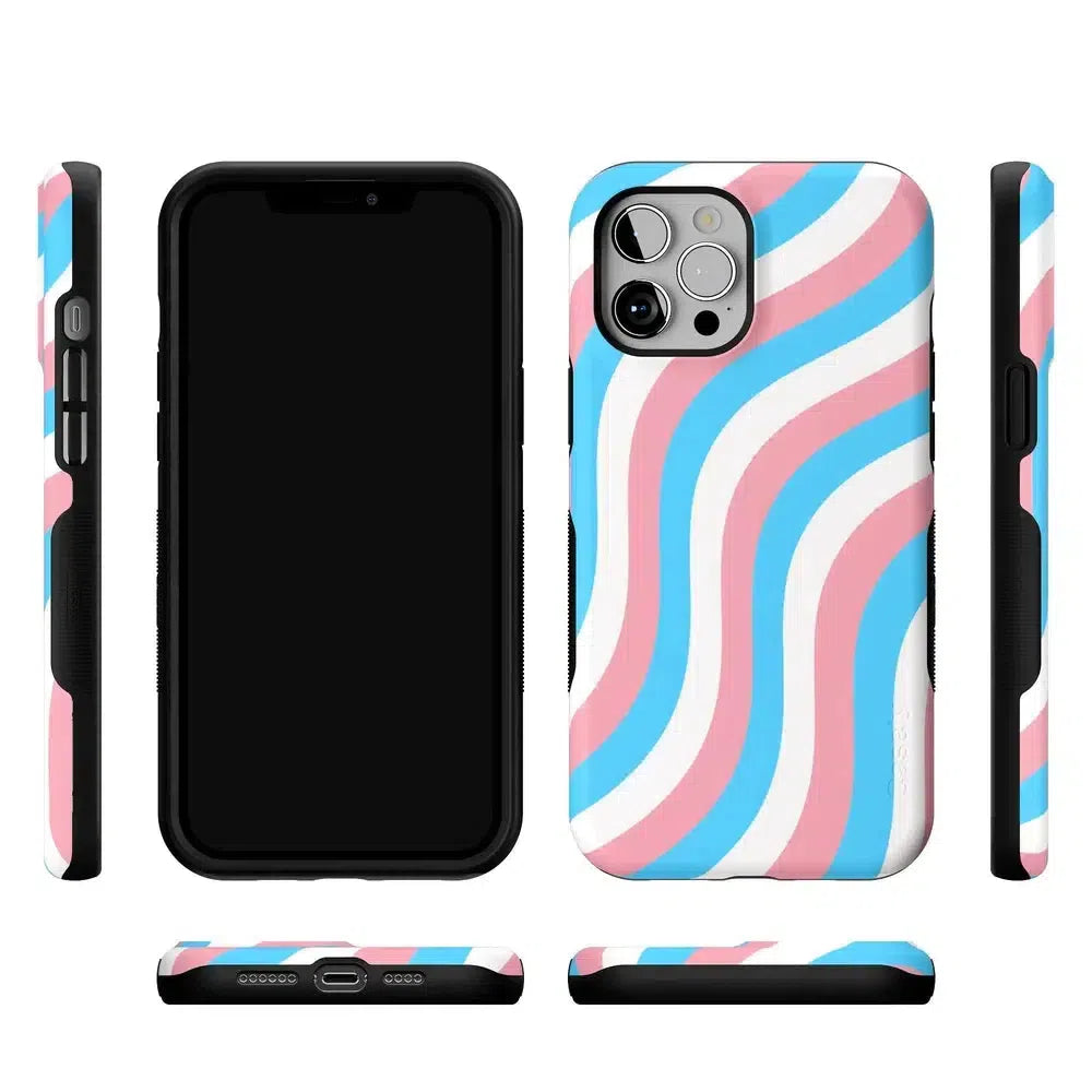 Celebrate your true self with the Proud To Be Me Pride Case. featuring a stunning wave design in the vibrant colors of the trans flag. This eye-catching case not only showcases your pride but also provides robust protection for your phone.