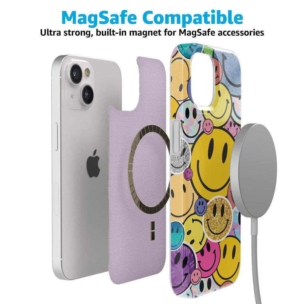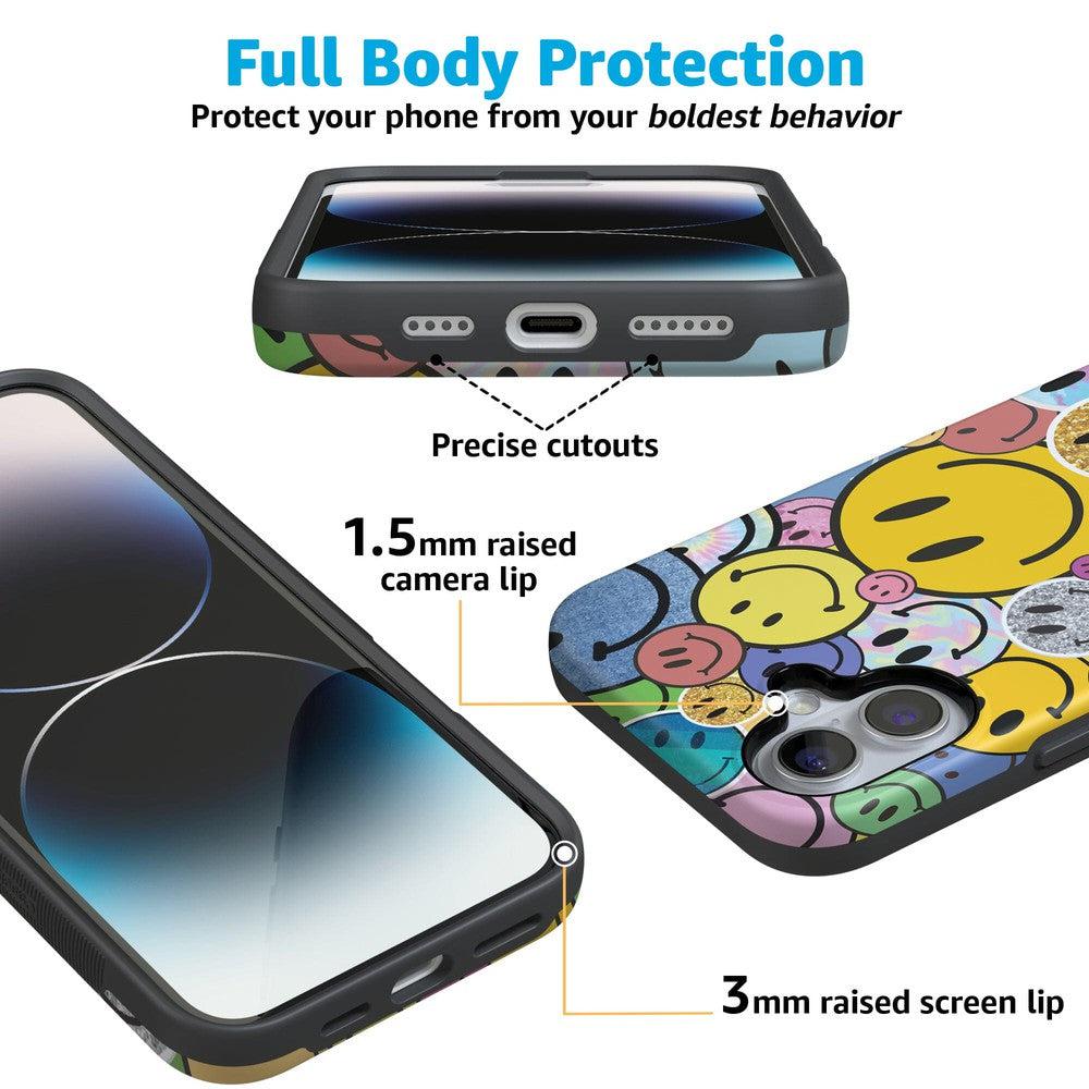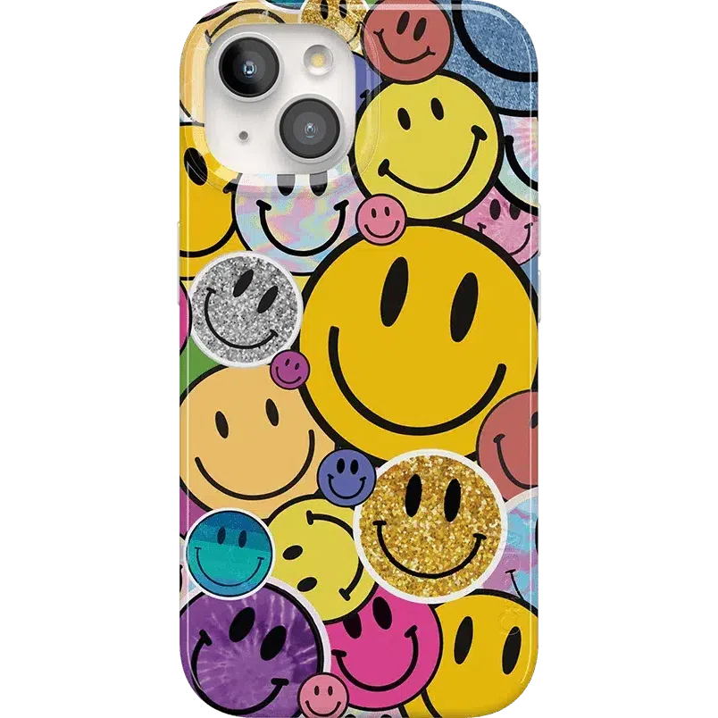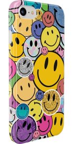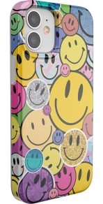 The overlapping smileys in this design give a sticker-like effect. building up layers of glitters and metallics sure to grab attention and make you the envy of your friends. As well as being incredibly fun and on-trend. this is a highly protective case that will prevent screen cracks and absorb impact if you happen to drop your device.