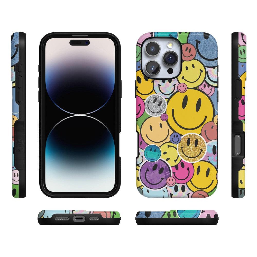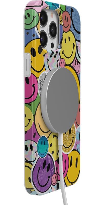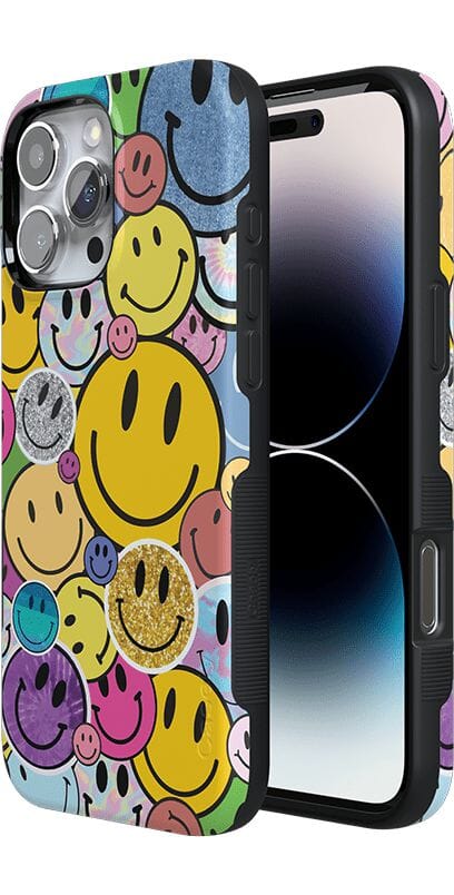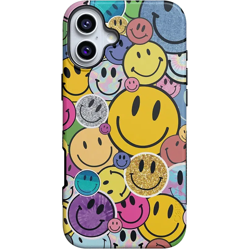 Want a retro look for your phone? Nail that 90s nostalgia aesthetic with this fun. playful phone case. With an eye-catching design in bright and cheerful colors. these smileys will bring a smile to your own face every time you take out your phone.