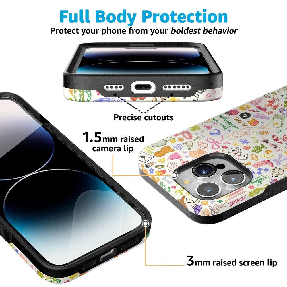 Introducing the All the Fun Things. a staple in the Fun on Weekdays Collection created in collaboration with Jenna Palek! Known for her infectious energy and love for life. Jenna Palek has become a social media sensation. inspiring her followers to find joy in the everyday. This ultra-protective Bold case keeps your phone safe from drops and scratches while showcasing Jenna’s favorite things in a lively. colorful design.
