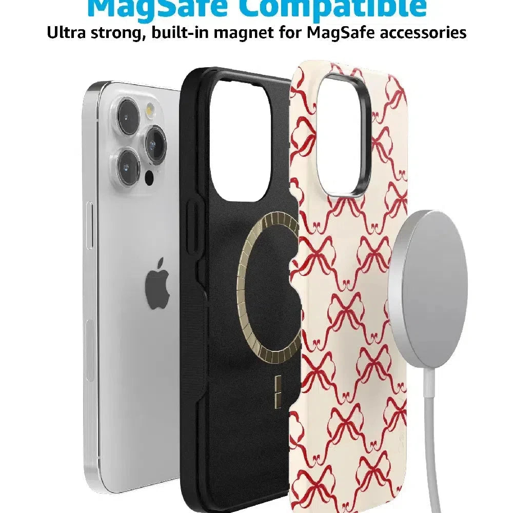 Crafted to fit your device securely. the Vintage Bows Case provides outstanding protection while remaining slim and easy to handle. Its delicate bow design. set against a soft. neutral background. delivers a festive aesthetic that works seamlessly all year round. With options to fit popular devices and support for MagSafe on select iPhone models. this case ensures both style and functionality.