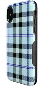 This unique accessory beautifully combines complimentary colors in order to give you a level of sophistication that few phone cases can provide. The light blue. navy. white. and black mesh seamlessly for a case that is classy and fun!