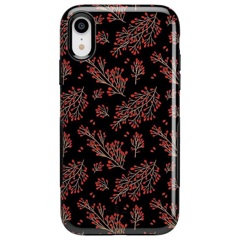 For those of you who have a bit of festive blood in you. this case is for you. With a stunning color combination of black and vermilion red. this case is just calling for fall festivities and dancing. This case is perfect for the person who can run around doing errands all day and turn around and go party all night right after! The jet black background offset by the slender branches of red buds makes it versatile and easily accommodates any outfit. This case’s frilliness doesn’t reduce its ability to protect your phone. however. With specifically rounded edges to protect your phone screen and volume buttons. you’ll never have to worry if you’re sacrificing protection for looks. This case is offered in the Bold and Classic collections. This phone cover can be purchased for all iPhones 6 and up. the latest Samsung models. and the latest Note models.