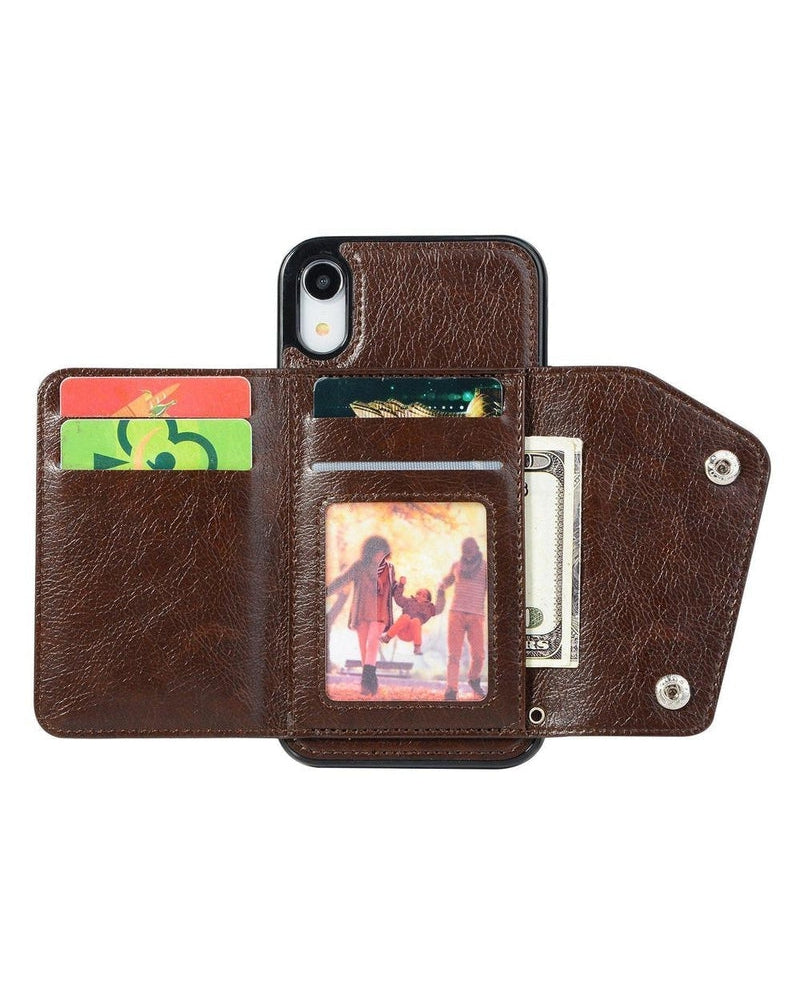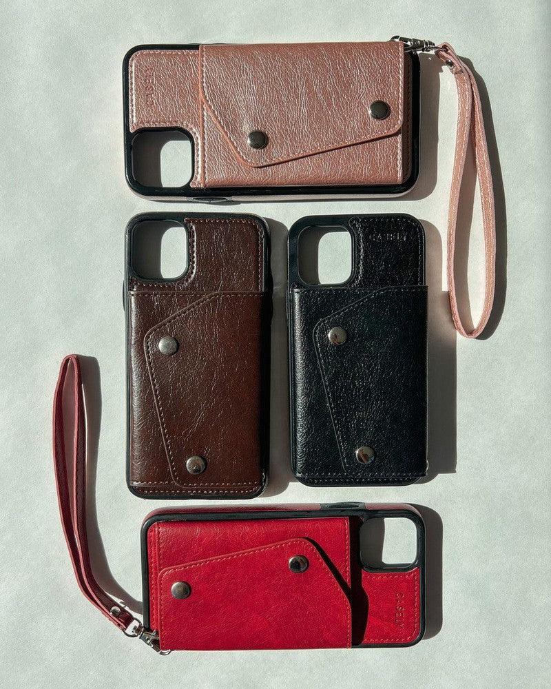 Brown leather cases aren’t just for briefcases anymore 鈥?they make for great phone cases. too! We love the Brown Vegan Leather Wallet Case because it combines functionality and style in one product. The wallet opens up to reveal several cards slots for cards and cash. It even has a clear pocket for quick access when you need to whip out your ID. The two-snap button enclosure ensures everything will be securely tucked away and eliminates the risk of cards or cash falling out. A removable wristlet strap lets you switch from handheld to dangling with ease. The case itself is secure to keep the phone safe during any bumps and drops to prevent cracks and scratches. This is a popular design option at Casely. as the Brown Vegan Leather Wallet Case fits many iPhone designs and consistently exceeds expectations. Brown not your color? Good thing this case comes in four other colors!
