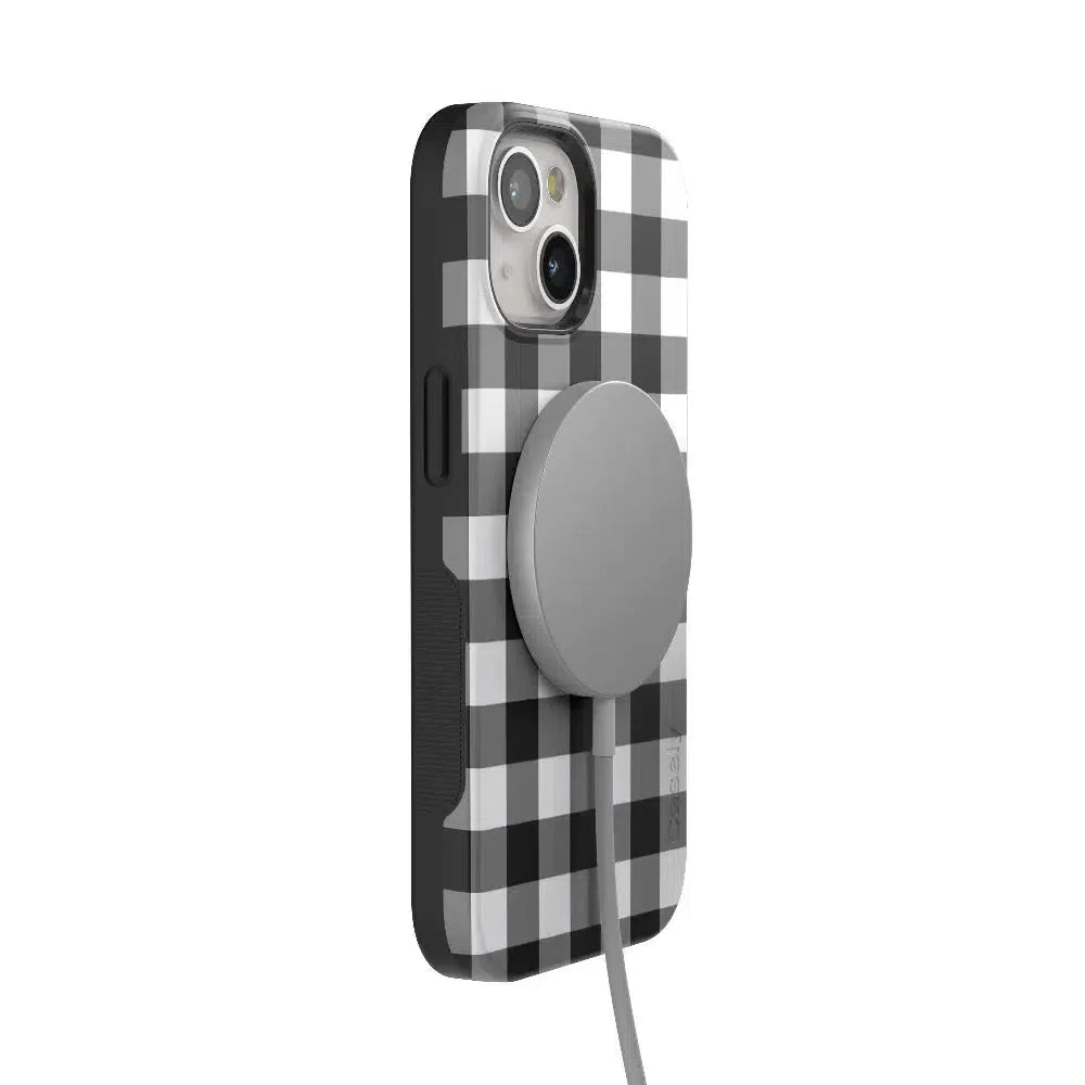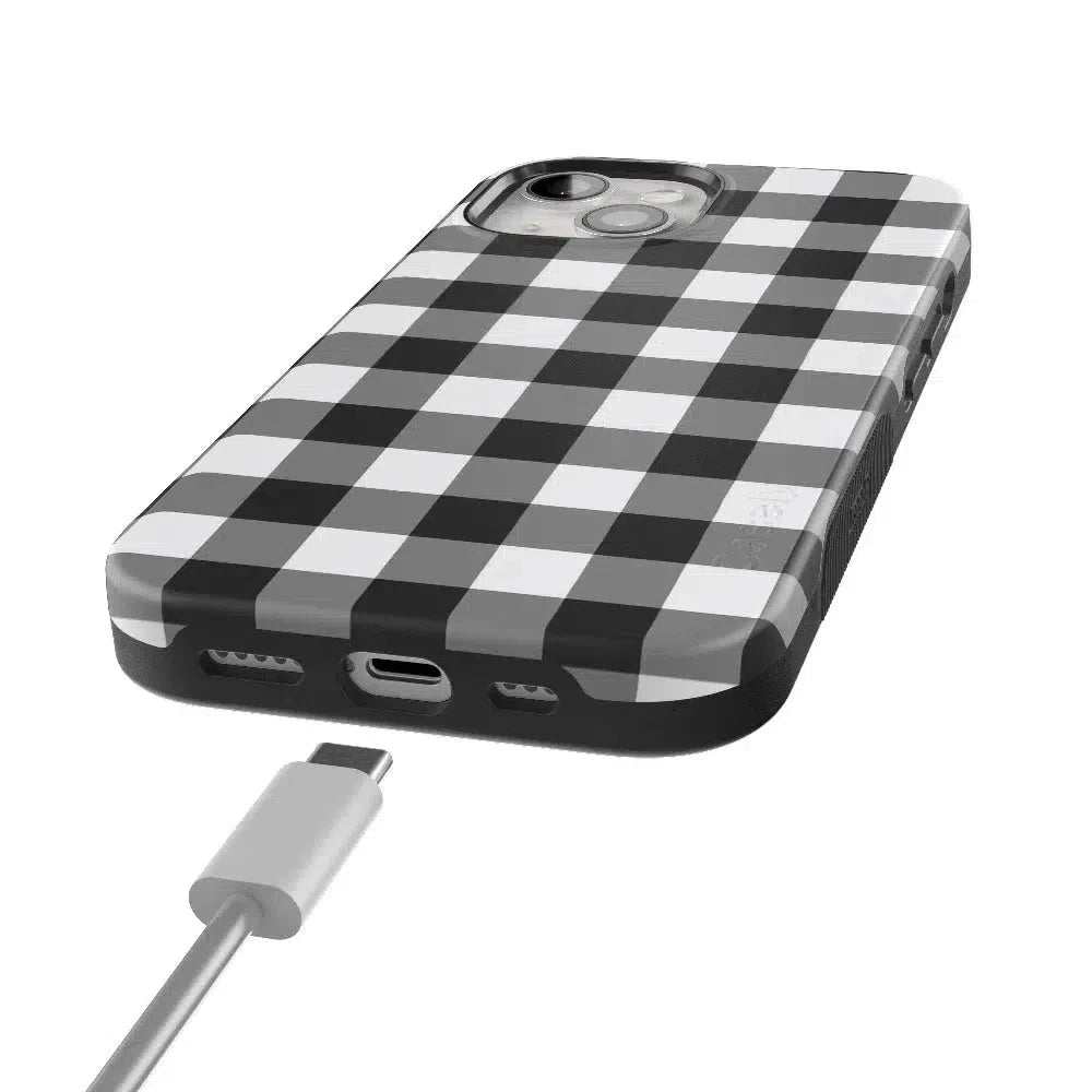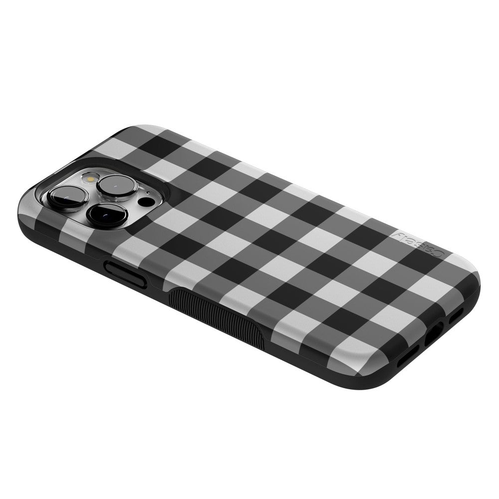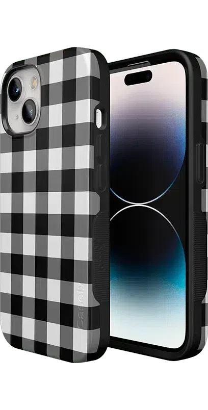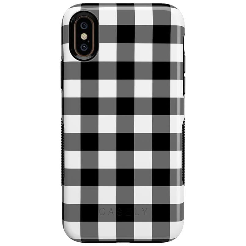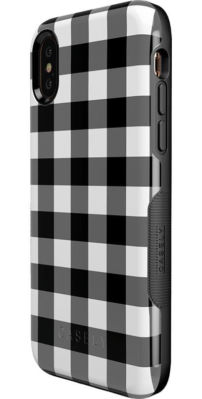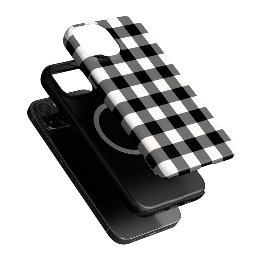 Get your hands on our Check Me Out gingham phone case. featuring a classic checkerboard pattern. The eye-catching yet casual gingham design features black-and-white checkering that goes with every look as you keep your phone handy throughout the day. But there’s more than just the modern check pattern to love. While the checkered design is an elegant classic that’s been popular with royalty for centuries. the case itself is manufactured with the latest in phone durability technology.