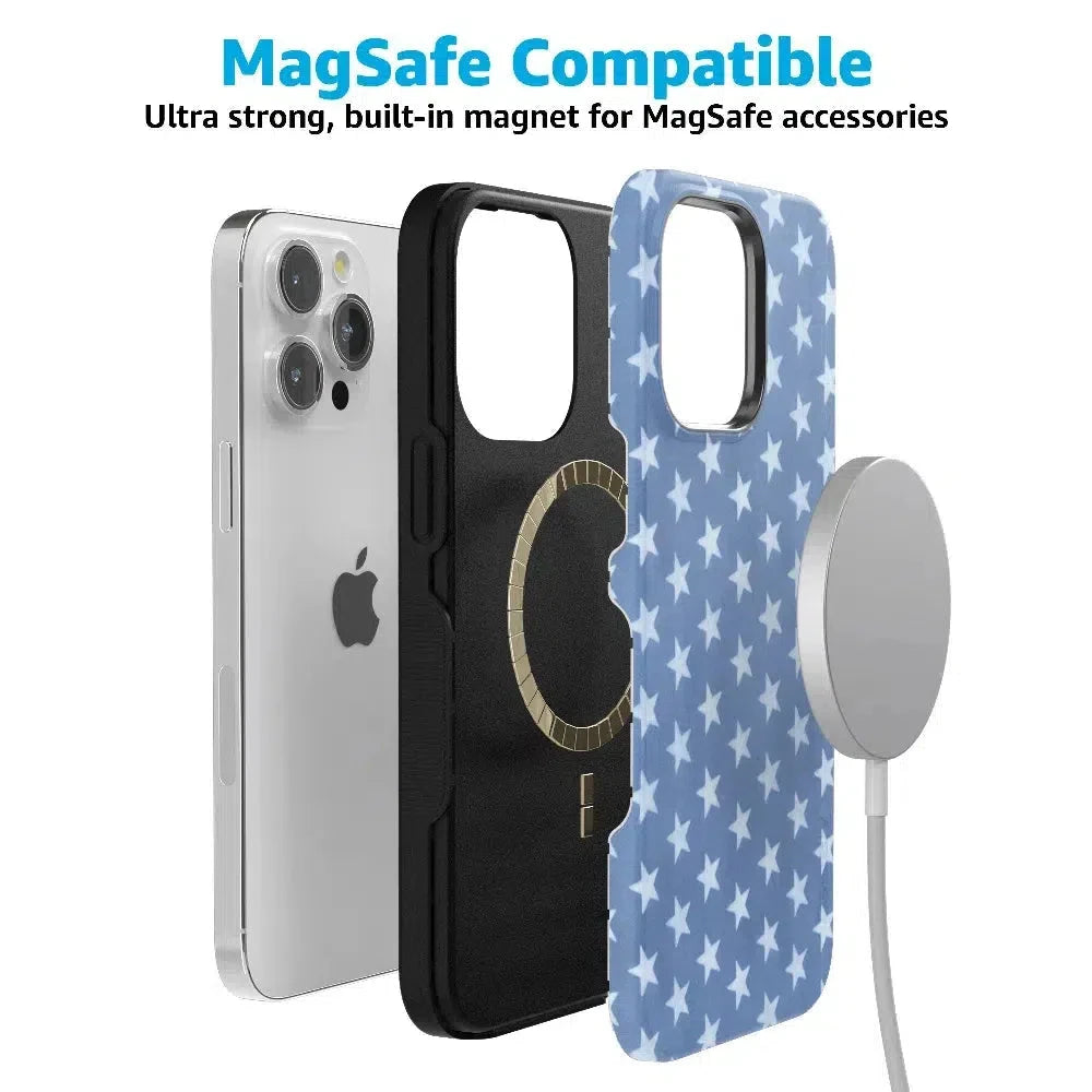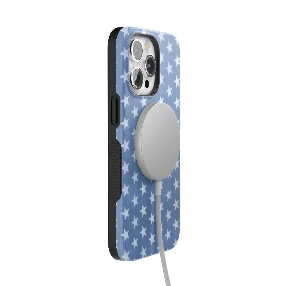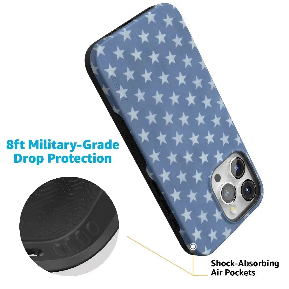 Feel the coastal charm with the delightful pattern of white stars on a denim blue background! Casely’s Coastal Blues Denim Stars Case captures the essence of summer with a chic and timeless design. Featuring 360掳 wrap protection. a slim profile. a 2mm raised lip for screen and camera protection. and a built-in MagSafe compatible magnet. this case ensures both style and durable protection for all your adventures.