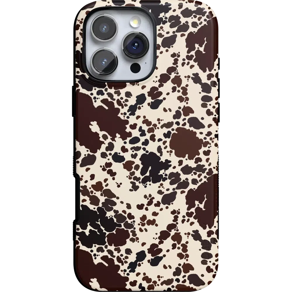 Saddle up with the Cowgirl Envy Cow Print Case from our Concrete Jungle Collection. Bold. rustic. and effortlessly chic. this case brings the charm of the countryside straight to your phone. while keeping you ready for the fast-paced urban jungle. Featuring a striking cow print with rich brown and cream tones. this case is perfect for those looking to channel their inner cowgirl while staying on top of the latest trends. Whether you’re exploring the city or dreaming of wide open spaces. this case is the perfect accessory to elevate your style.