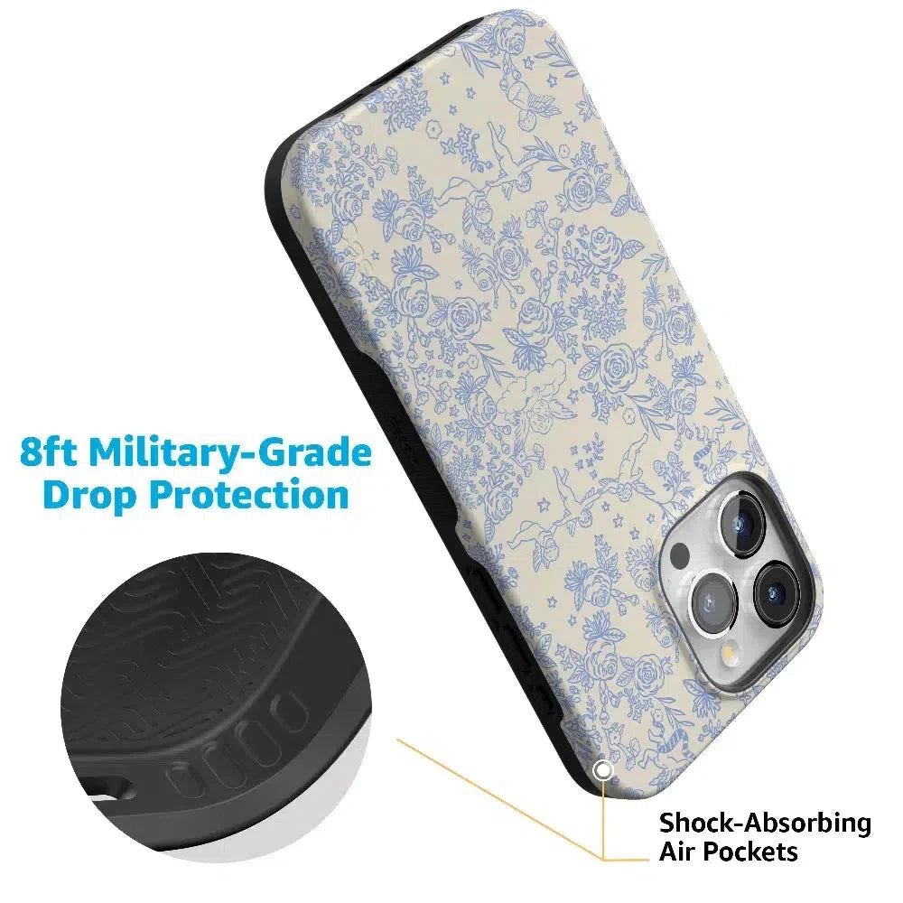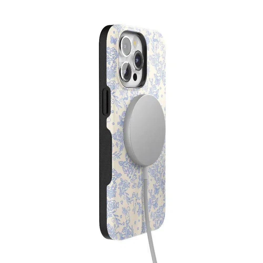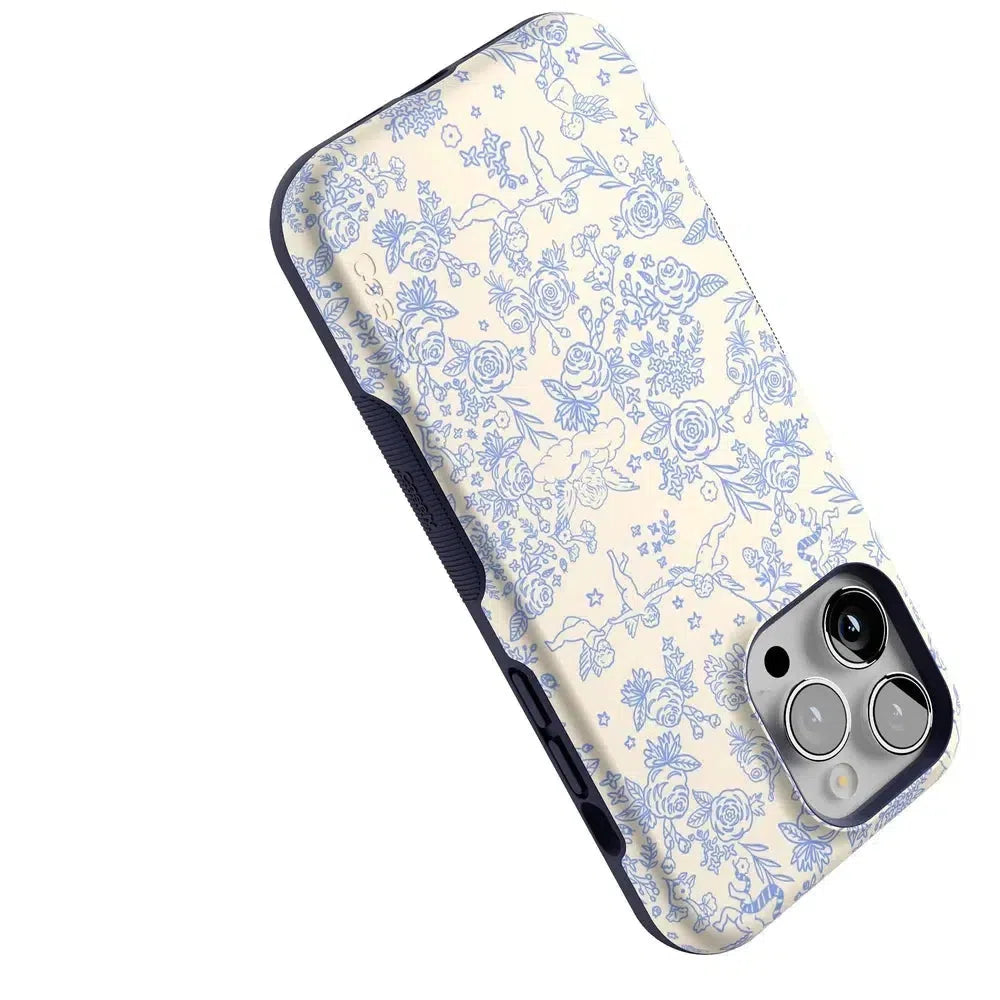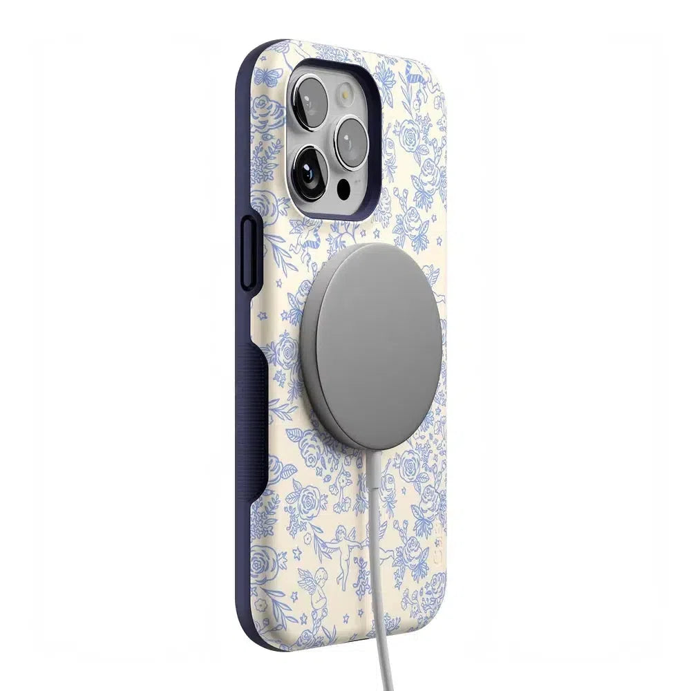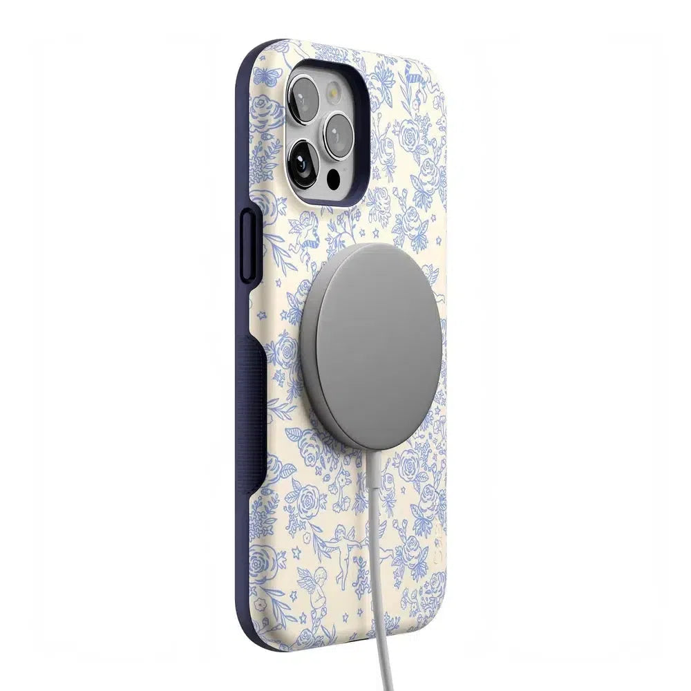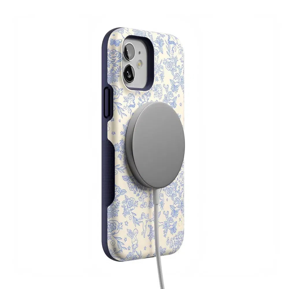 Embrace elegance and whimsy with the Cupid’s Canvas | Periwinkle Floral Case. This delicate design features charming cherubs and intricate floral patterns in soft periwinkle hues. bringing a touch of romance and artistry to your everyday life. Whether you’re a fan of classic beauty or looking for something unique to protect your phone. this case offers both stunning visuals and solid protection.