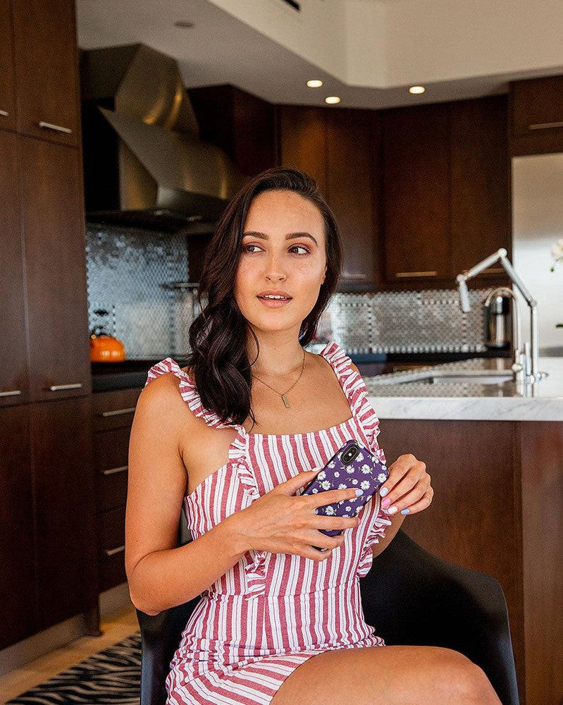 The Plum Purple Floral Case depicts gorgeous white daisies with beautiful green stems on a deep purple background. creating a perfect contrast that attracts attention immediately. The dark background helps the daisies stand out and look as pristine as ever. If you’re looking for an eye-catching phone case that can still be used for any occasion. then you have found the perfect match. This choice does a brilliant job of providing protection with style and sophistication. Suitable for seven different iPhone generations. this case really does do it all. No matter whether you are out running errands. chilling with friends. or heading to work. this phone case will serve as the perfect accessory to your life. No matter what you do with your phone or where you go. the Plum Purple Floral Case will ensure that it is protected- it is built to withstand anything life can throw at it. and get you through every day.