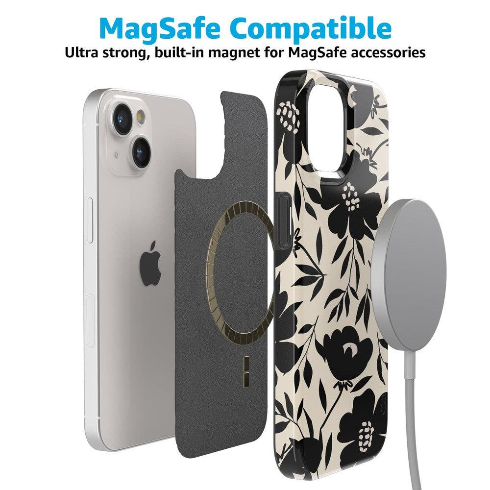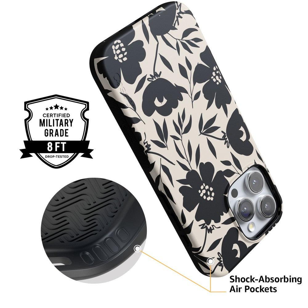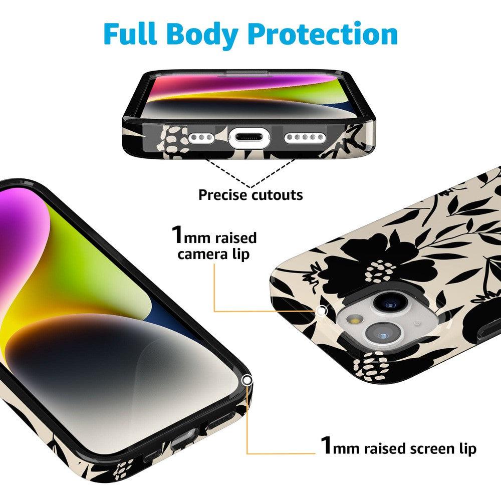 Designed with both style and functionality in mind. the Dark Fantasy Contrast Floral Case is available in MagSafe-compatible options. ensuring seamless charging and accessory use. Its precision cutouts provide easy access to all buttons. ports. and cameras. making it as convenient as it is beautiful. Whether you’re dressing up your phone for a night out or adding a touch of sophistication to your everyday tech. this case is the perfect blend of fashion and durability.