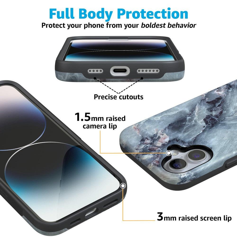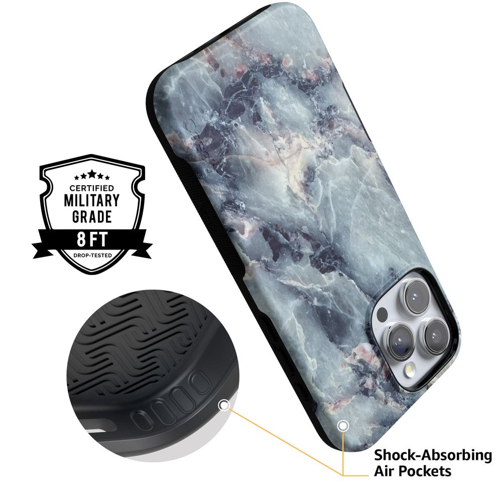 This eye-catching cute blue features a range of beautiful blue colors that will make your phone stand in a crowd! Interested in black marble as well? This elegant blue marble phone case is a unique and beautiful piece to add to any phone. The coloration of the case has a blueish gray base with accents of light pink. The marbled texture exudes a luxurious style that matches well with gold and blue. The case can be purchased for seven generations of iPhones. and its style and look does not detract from its ability to keep your iPhone safe! The edges are specifically designed to prevent screen cracking and button breaking if the phone were to be dropped. This phone really has an extravagant pattern. and a color scheme that draws the eye. Its powerful shock absorption combined with its absurdly cute color scheme makes this the perfect phone case for chill night on the town. or a rager with the friends! The eye-catching pattern seems almost ethereal and can complement both simple and more elegant outfits.