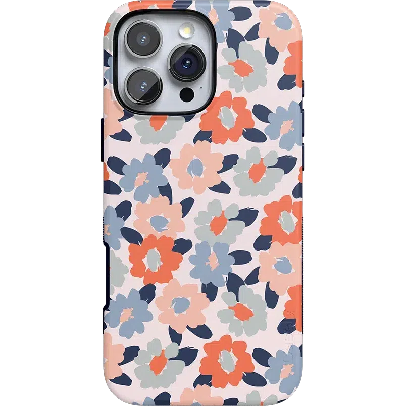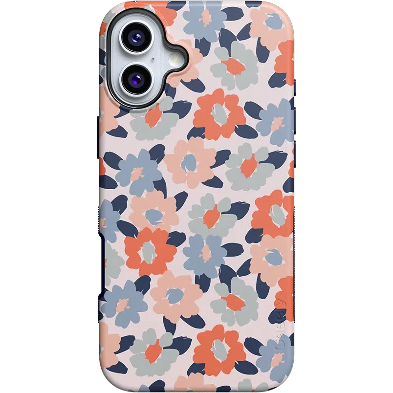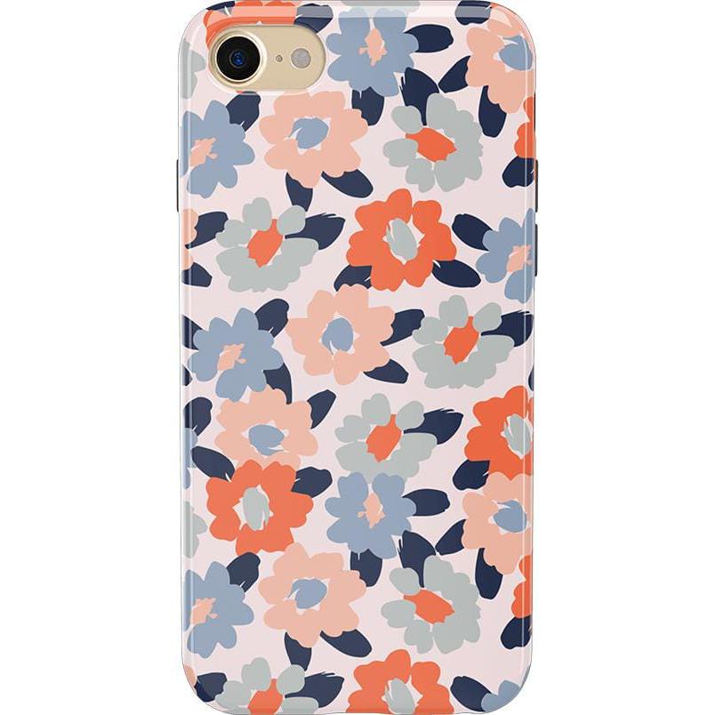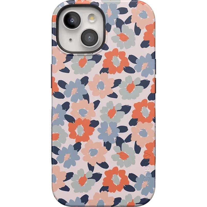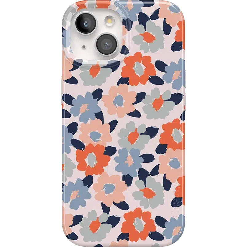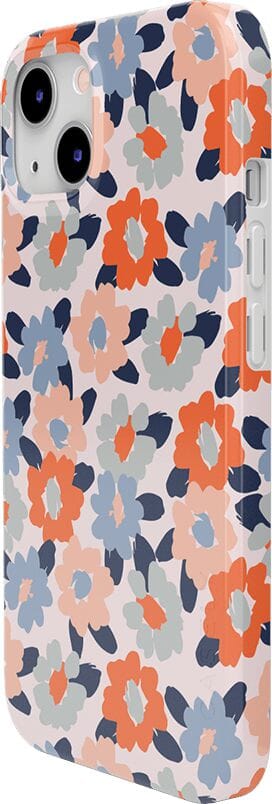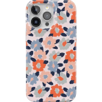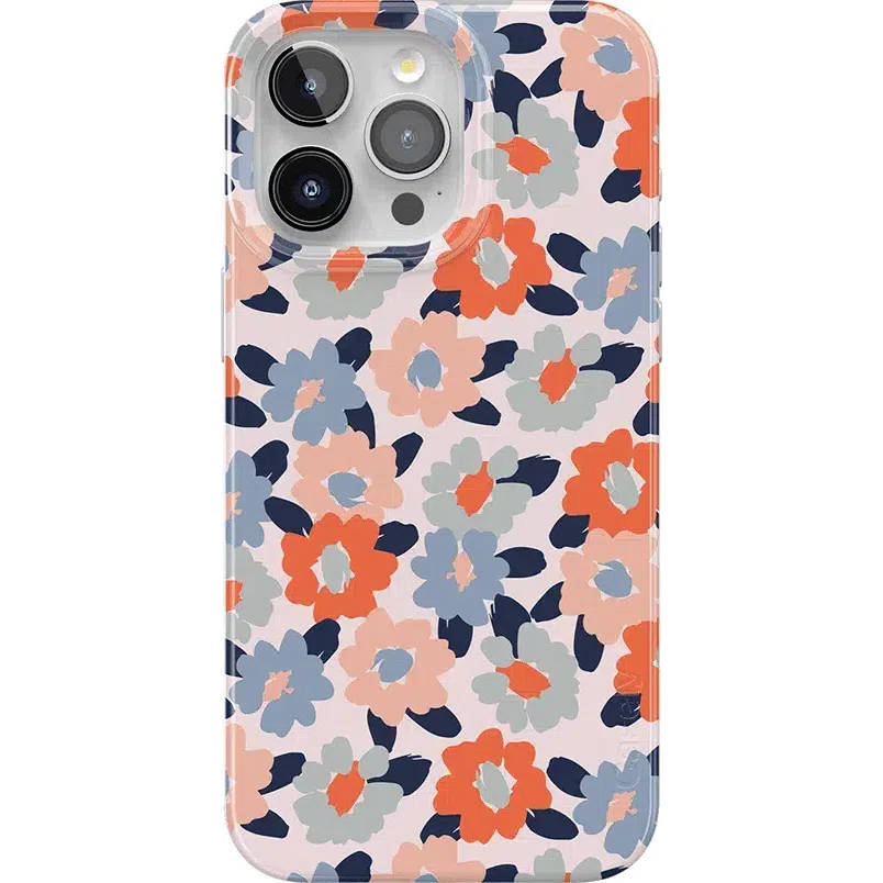 This Pastel Floral Case features beautiful orange. peach. and blue flowers. Dark blue petals accent all the flowers. which pop against the light pink background. While these pastel colors fit perfectly into the springtime. they can beautifully complement or contrast any theme year-round. Carry this accessory into the summertime or allow it to brighten up a dreary winter season.