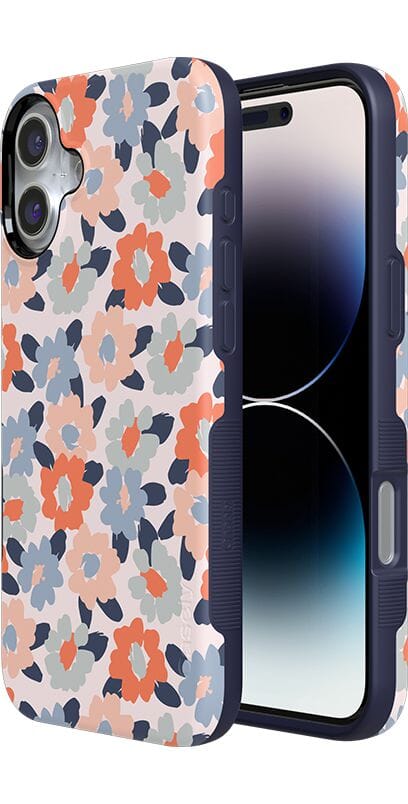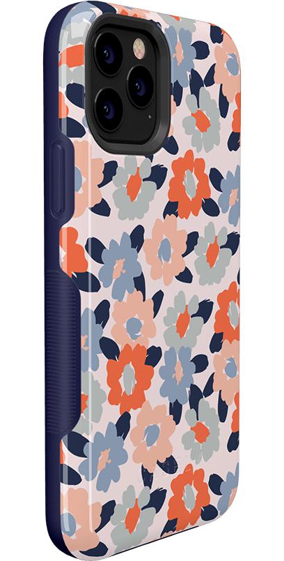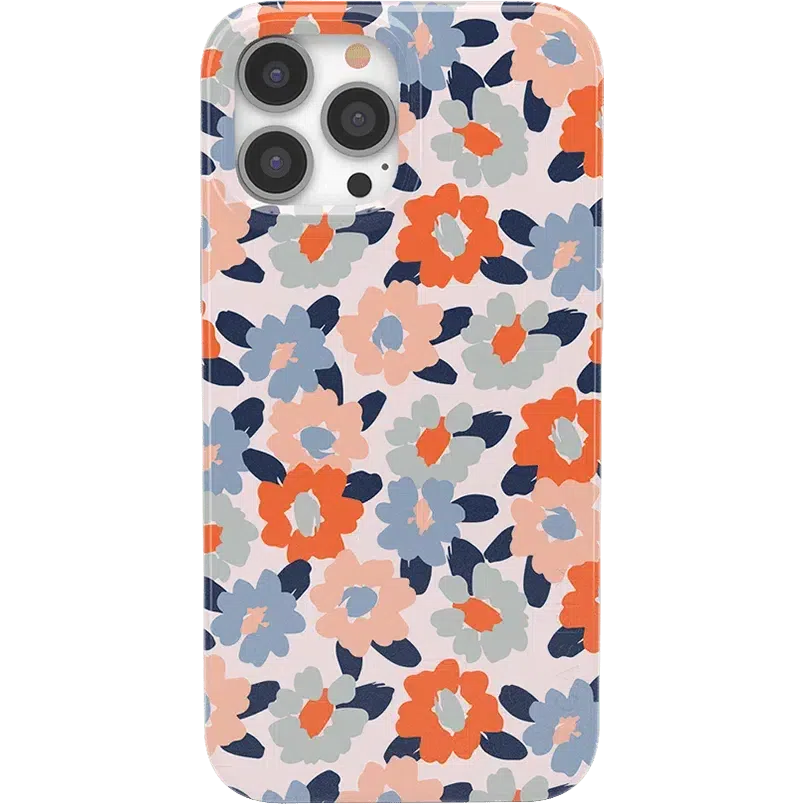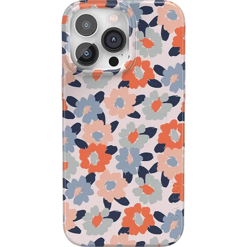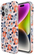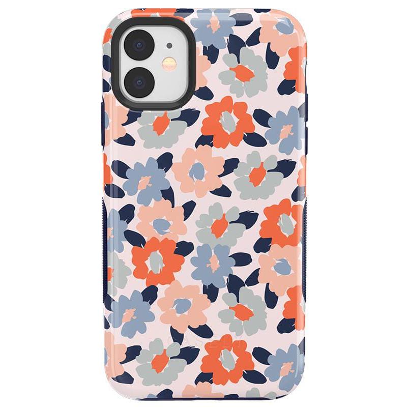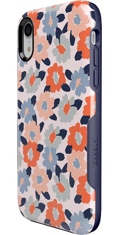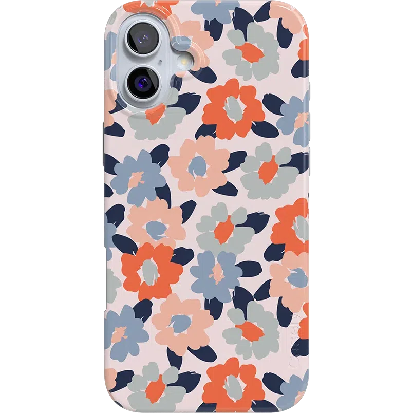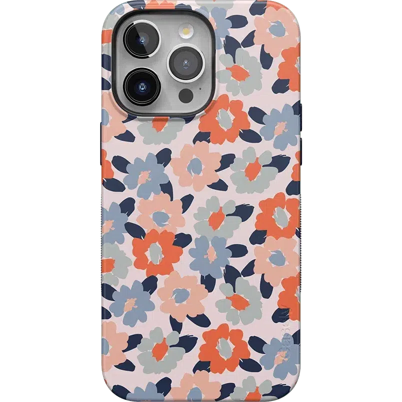 This Pastel Floral Case features beautiful orange. peach. and blue flowers. Dark blue petals accent all the flowers. which pop against the light pink background. While these pastel colors fit perfectly into the springtime. they can beautifully complement or contrast any theme year-round. Carry this accessory into the summertime or allow it to brighten up a dreary winter season.