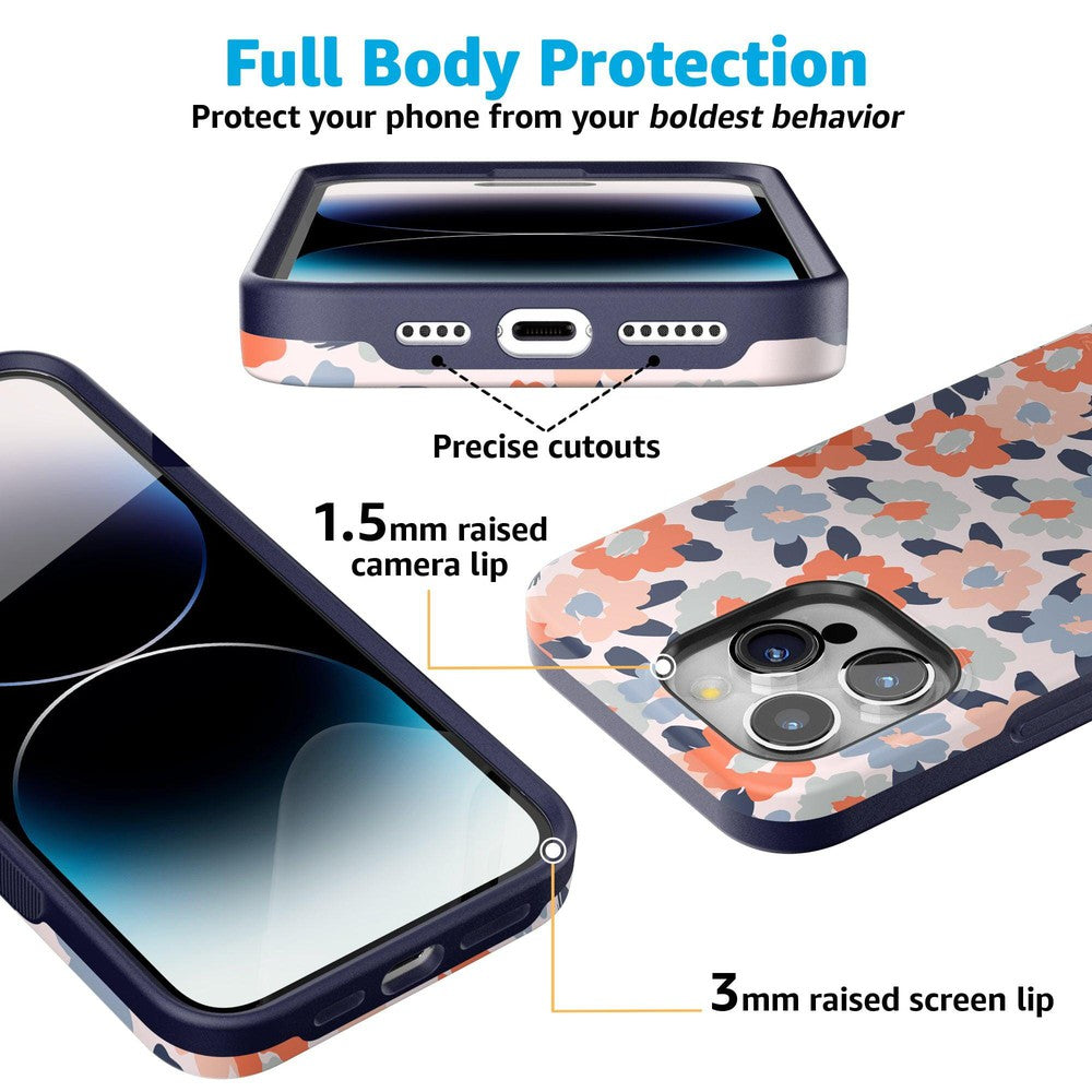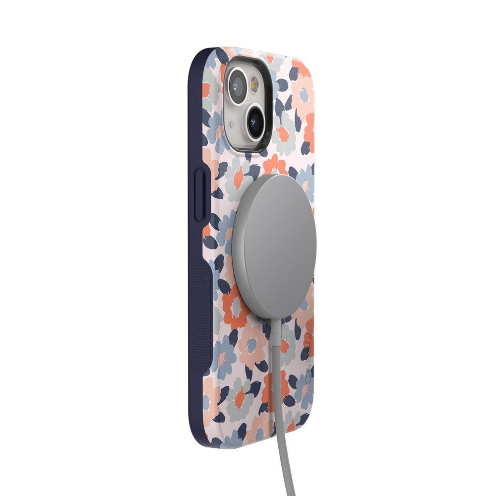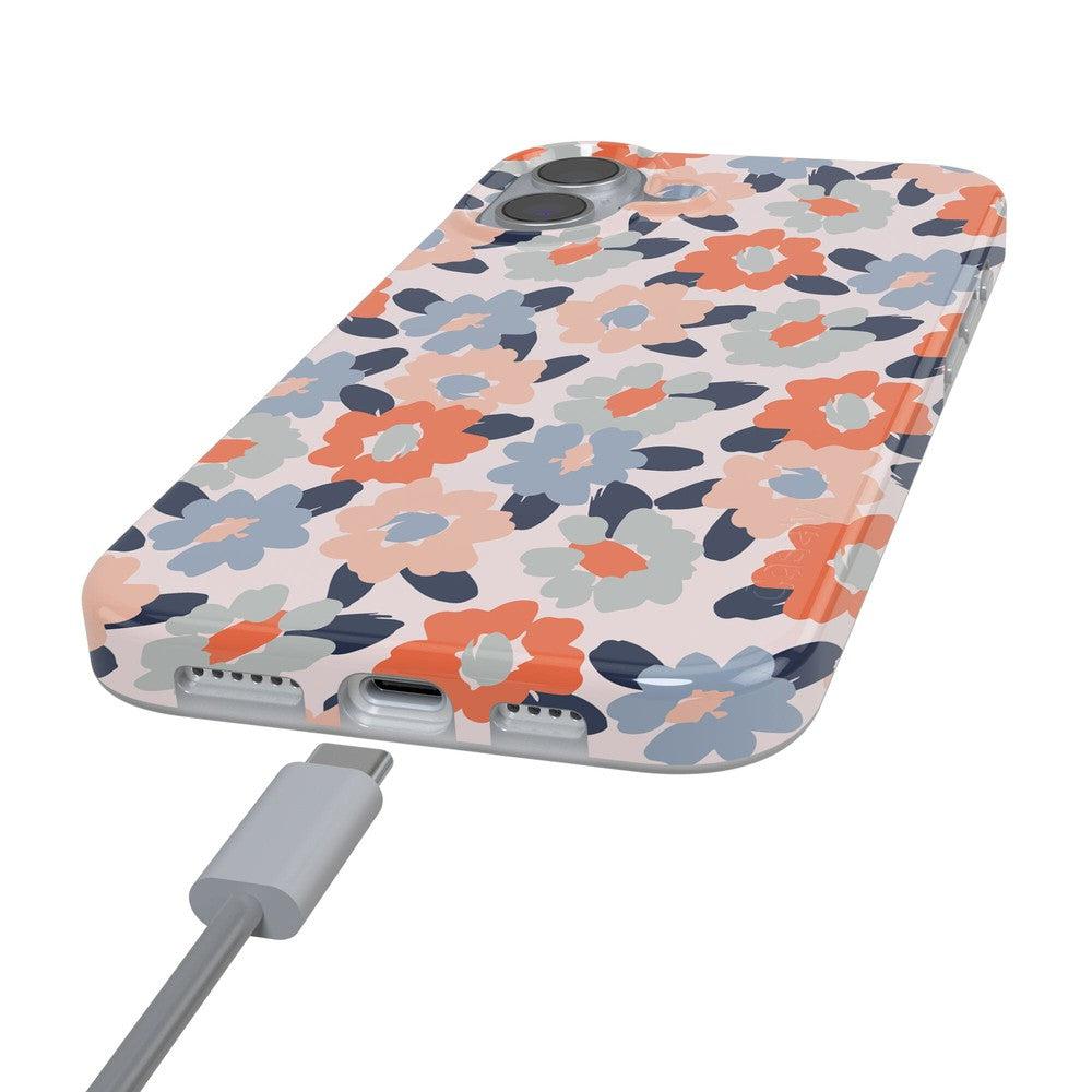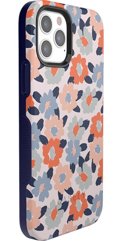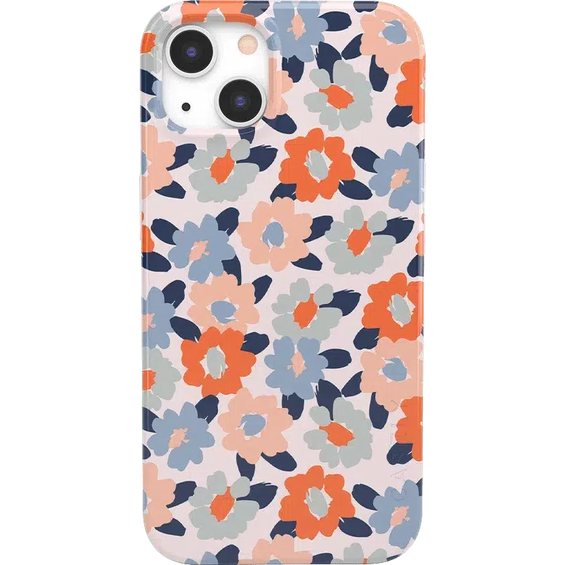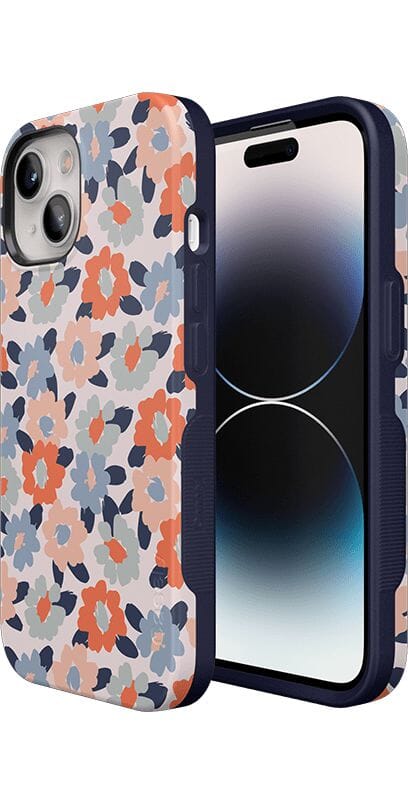 This Pastel Floral Case features beautiful orange. peach. and blue flowers. Dark blue petals accent all the flowers. which pop against the light pink background. While these pastel colors fit perfectly into the springtime. they can beautifully complement or contrast any theme year-round. Carry this accessory into the summertime or allow it to brighten up a dreary winter season.