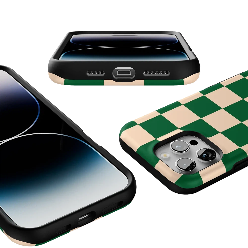 The Fit Check Green Checkerboard Case brings a vibrant twist to our popular . combining classic style with a bold green palette. This design features a striking checkerboard pattern in green and beige. adding a trendy edge to your phone. Perfect for those who love standout style. this case is compatible with Google Pixel. Samsung Galaxy. and iPhone models.