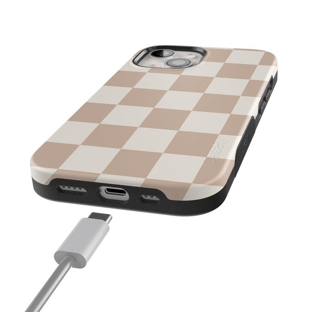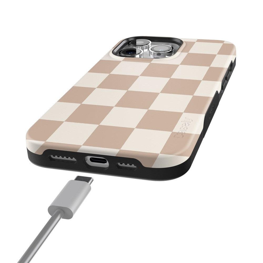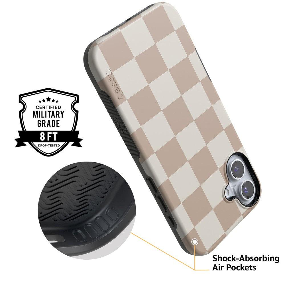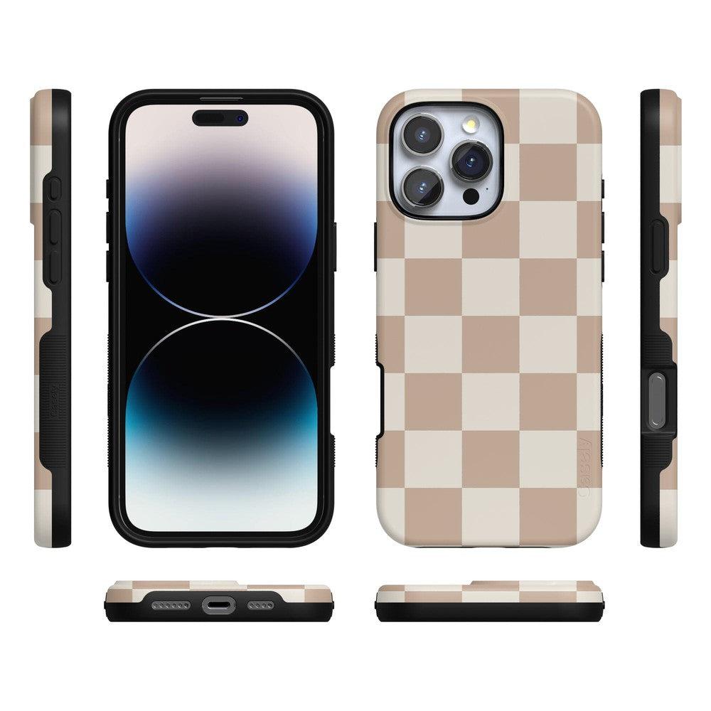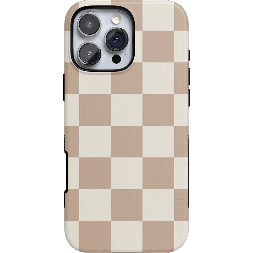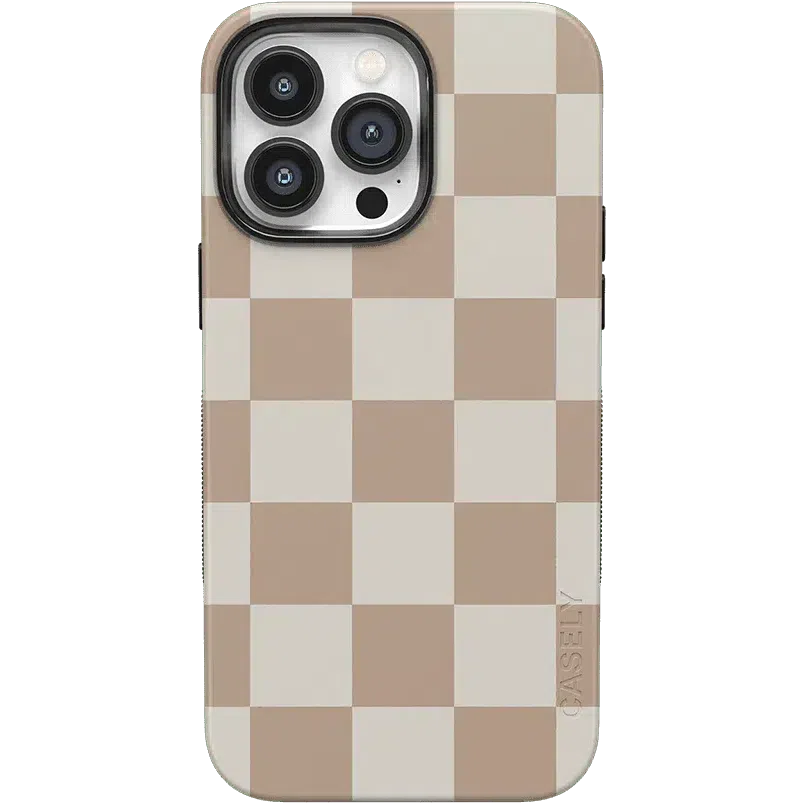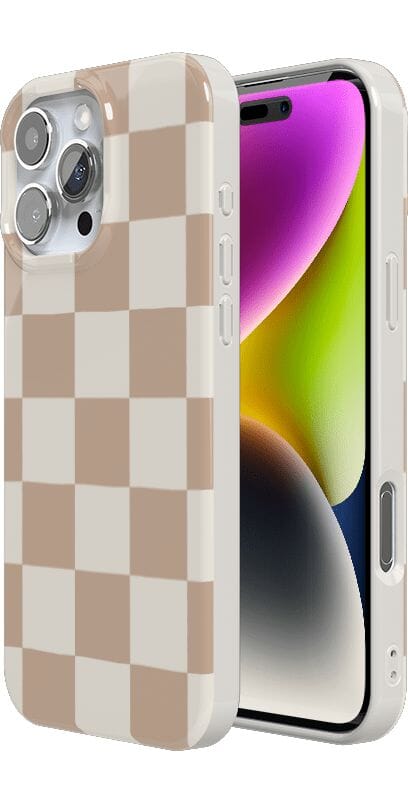 Out of all of our cases. the Fit Check is probably one of the most muted designs – and that’s its greatest strength. Neutrals are huge right now. so why not keep the vibe going with the perfect case to match? If your wardrobe is mainly whites. creams. browns. and beiges. there’s no other choice than the Neutral Checkerboard case for your latest fit check.