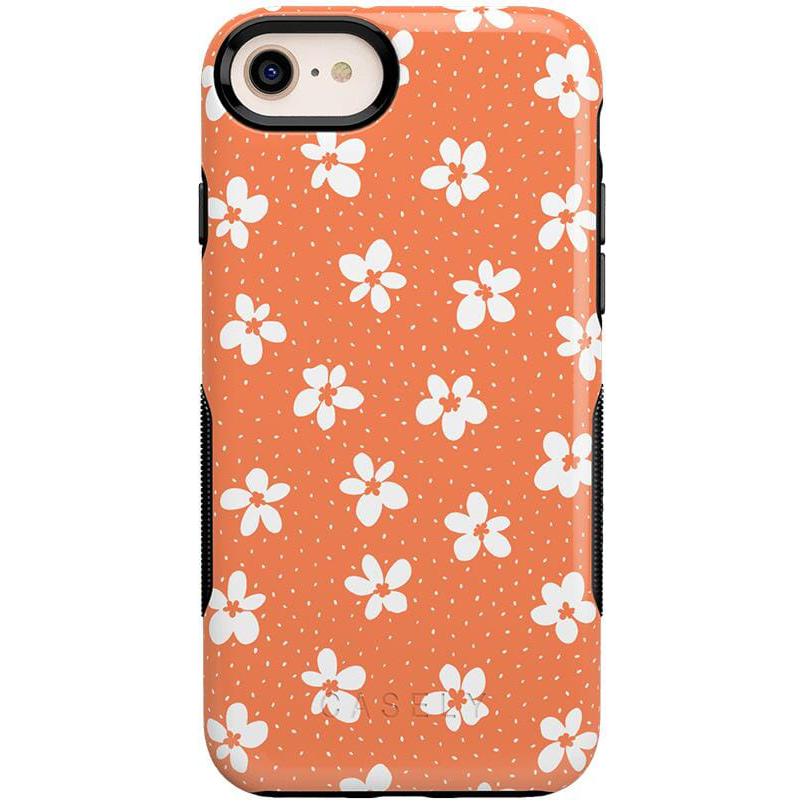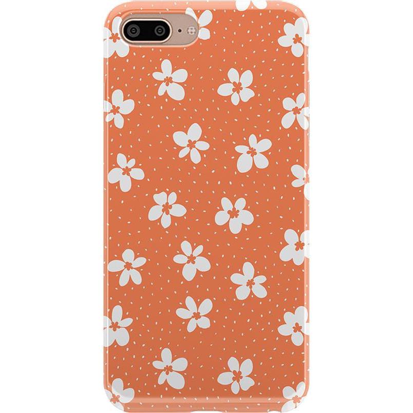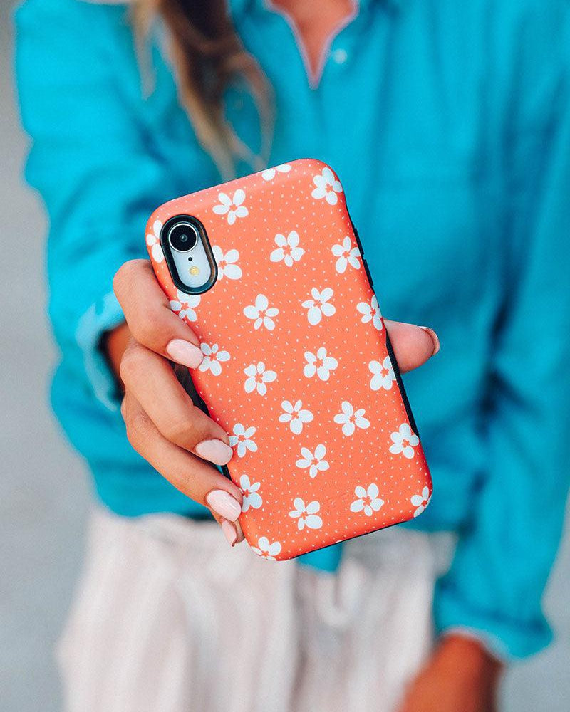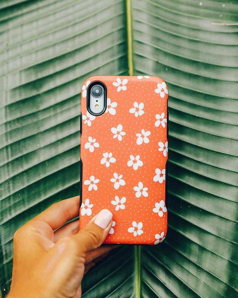 If you are stuck in a rut and looking to indulge in your vacation fantasies. the Flower My World Burnt Orange Flower Case from both our Bold and Classic Collections is just for you! This case gives off a serious Hawaiian tropical vibe. It features individual flowers. varying in size and petal shape. distributed in a purposeful arrangement. Surrounding the flowers are small white seeds that color your case’s design. The vibrant orange background offers a bold pop of color that will flatter any touristy shirt in your closet! You can also opt to pair this case with any everyday outfit; it is sure to amplify your fashion sense and capture the attention of those around you. Get in the vacation mindset and chill out: this case doesn’t sacrifice safety in the name of aesthetics. Its strategically raised edges. along with built-in shock absorption. protect your phone from a cracked screen or broken buttons caused by incidental fumbles.