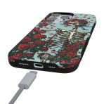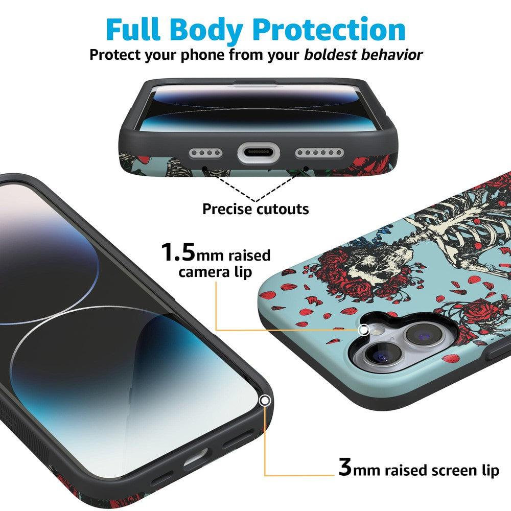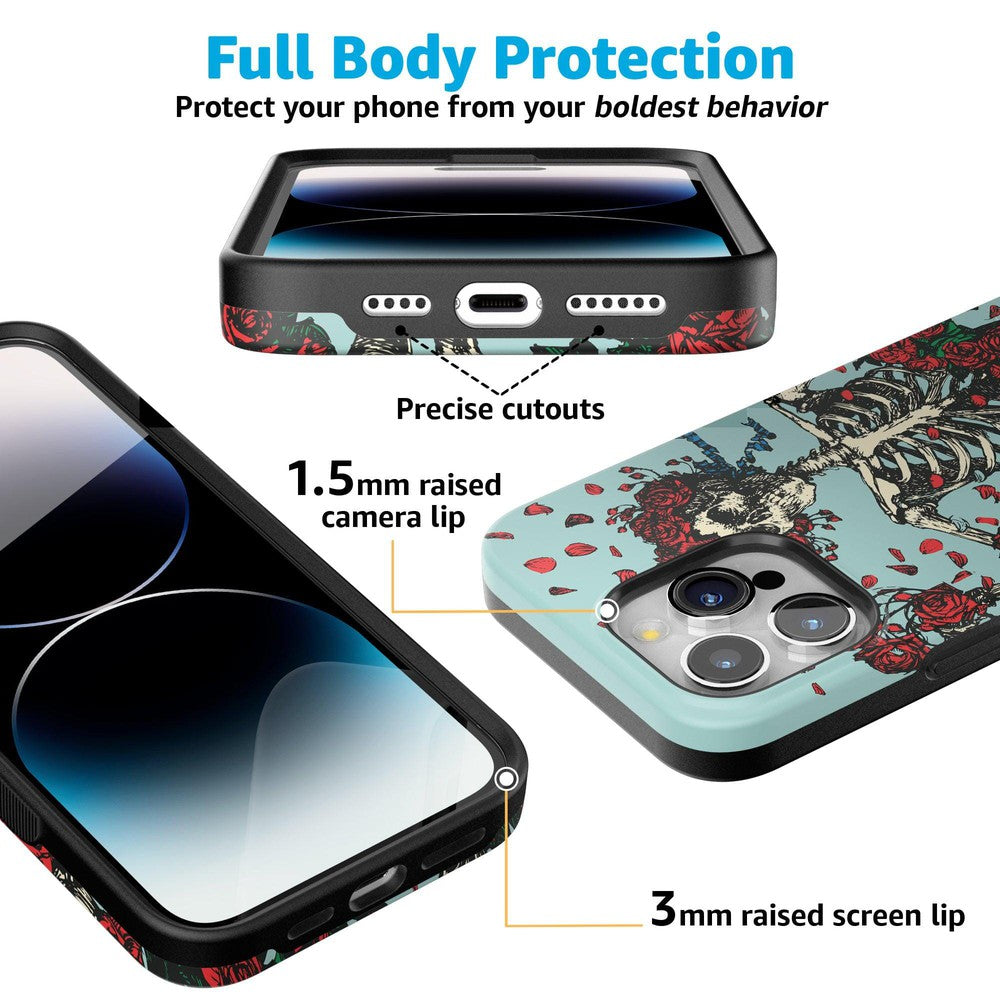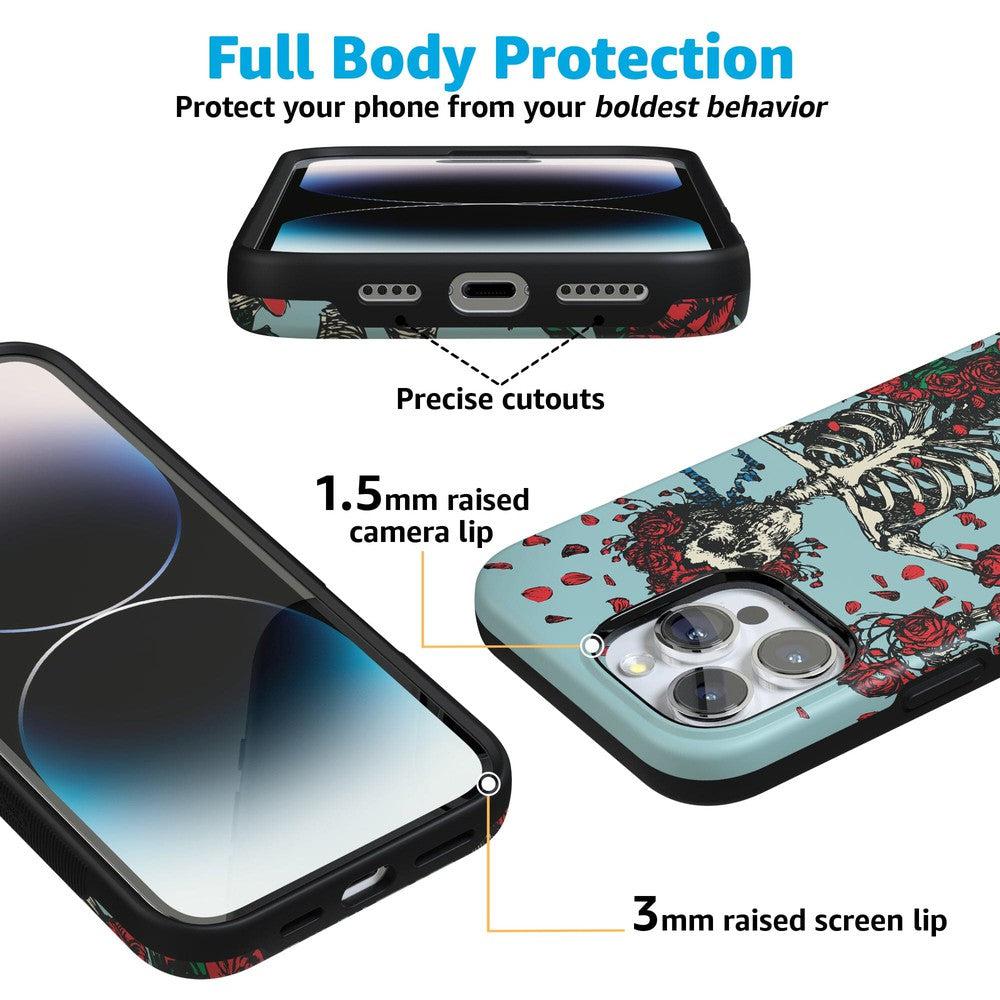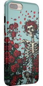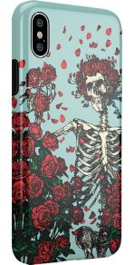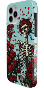 Are you a die-hard Deadhead? You’ll be forever grateful for this phone case. featuring the classic skeleton donned in roses. This case features a pale blue background and a skeleton wearing a crown of roses. The hollowed-out frame is surrounded by other rose bundles and petals. which creates a truly unique look that’s reminiscent of the beloved counterculture music group. This product is officially licensed by the band. so you can rest assured of its authenticity.