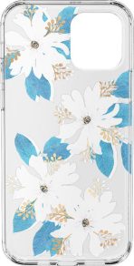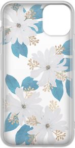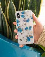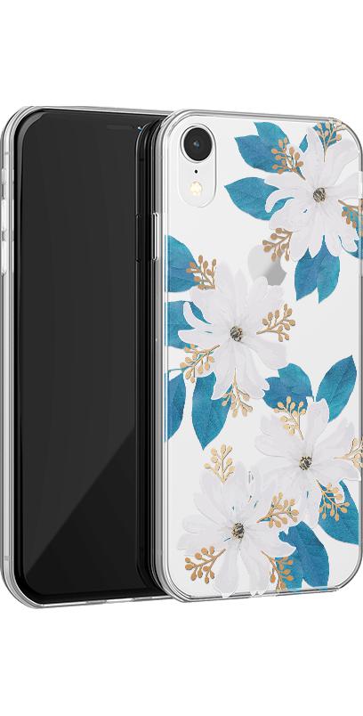 Blue and white clear floral iphone case layered with petals. an exclusive signature original designed by Casely. A modern twist to the classic flower design. This summery case really gives off a great down to earth look. The natural greens of the leaves and whites of the flowers make the phone case give off a natural vibe. while the golden petals and clear background give off a great modern aesthetic. The floral design matches with a lot of different styles. so this phone case is bound to match with plenty of outfits already in your closet! The phone also has powerful shock absorption. and its special design makes it so that even if the phone is dropped. the edge protects the screen from making contact with the ground. Though most floral prints try and keep their color scheme to warmer colors. this case stands out in its cooler floral design. It also has a clear background. so that the wearer never loses any of the original iPhone color that they chose when they bought it!