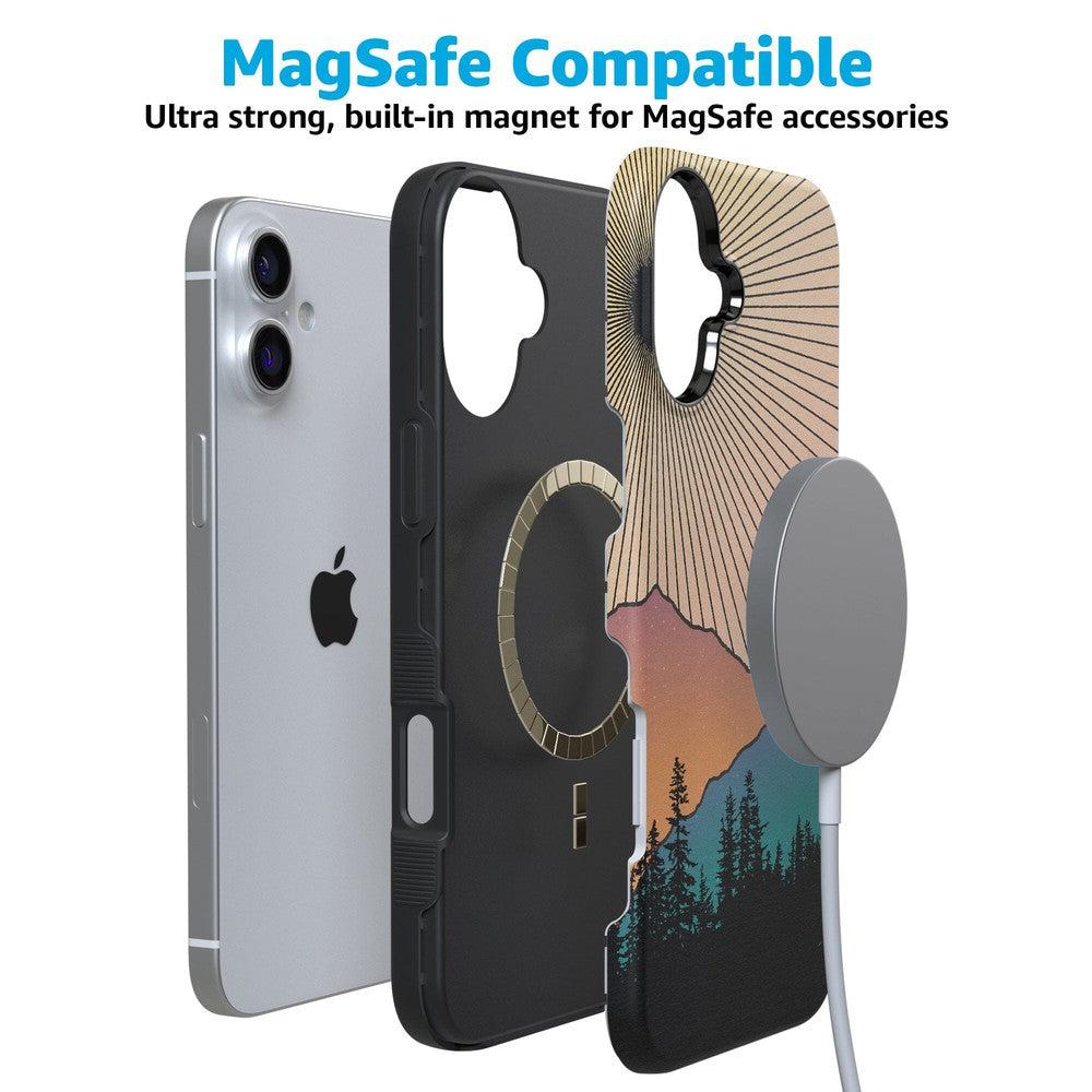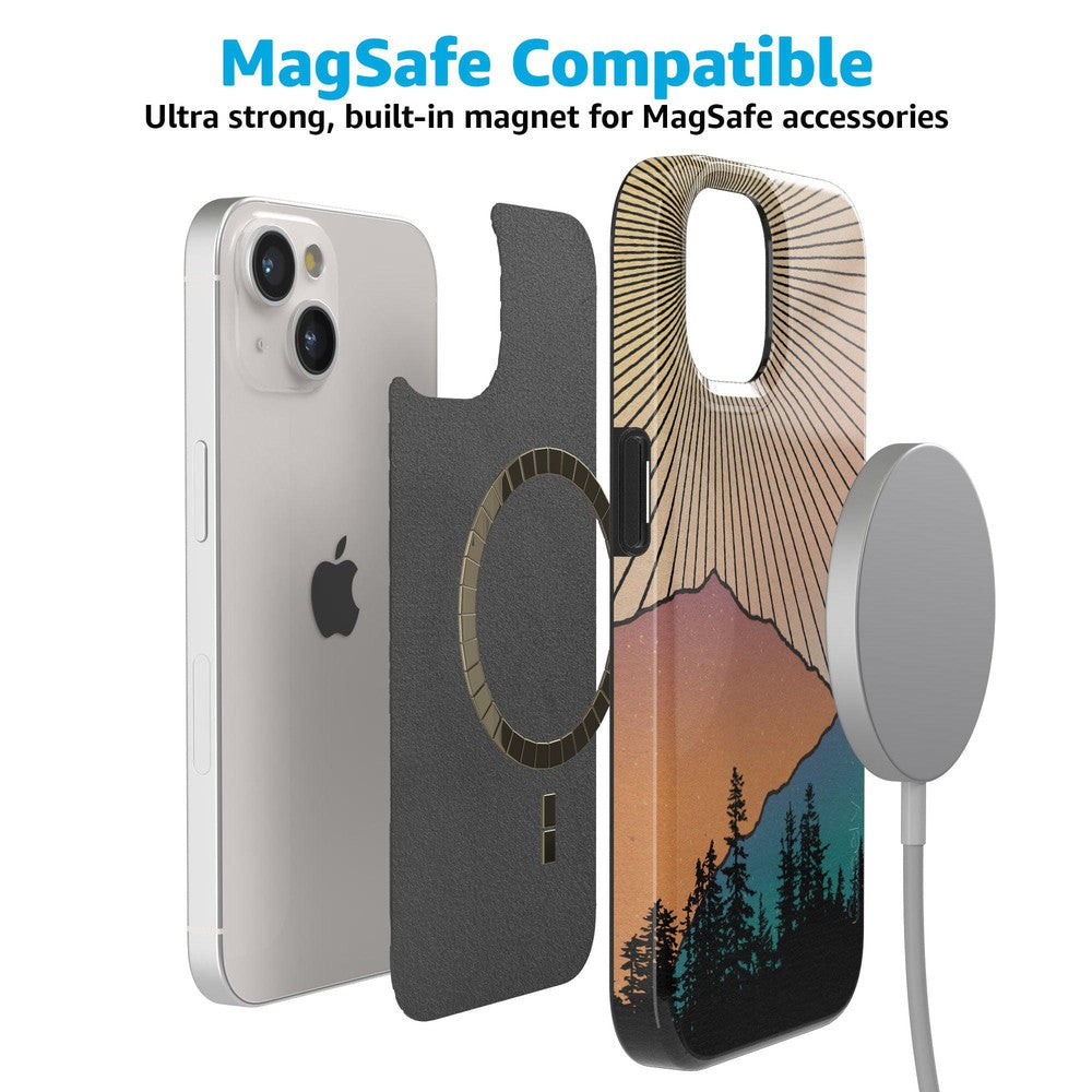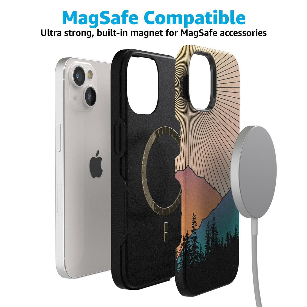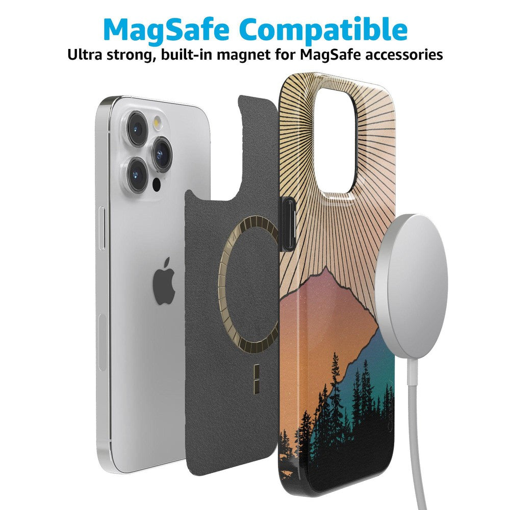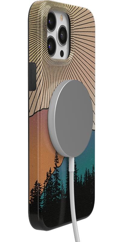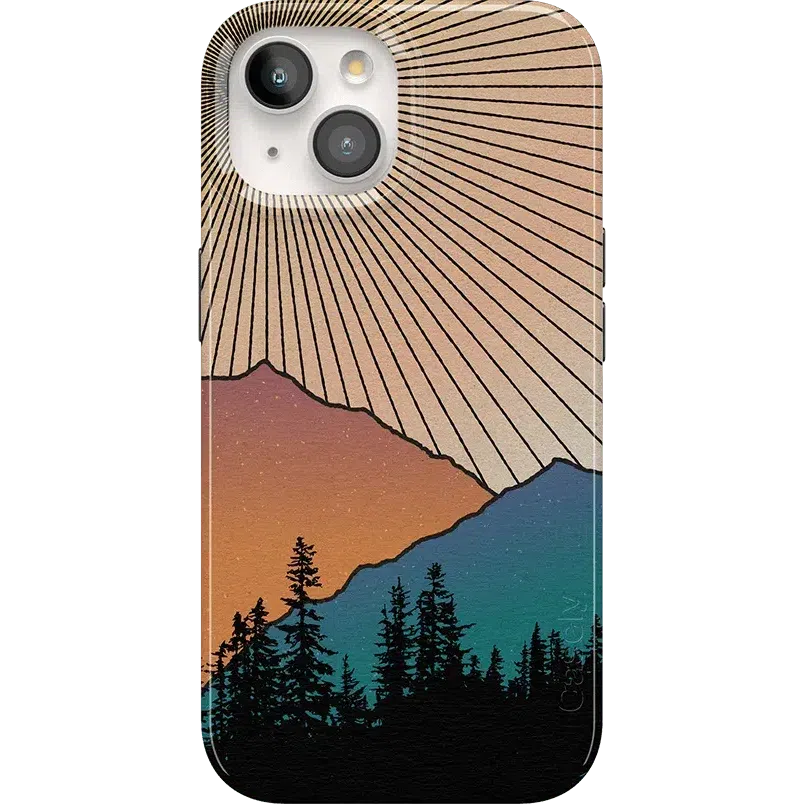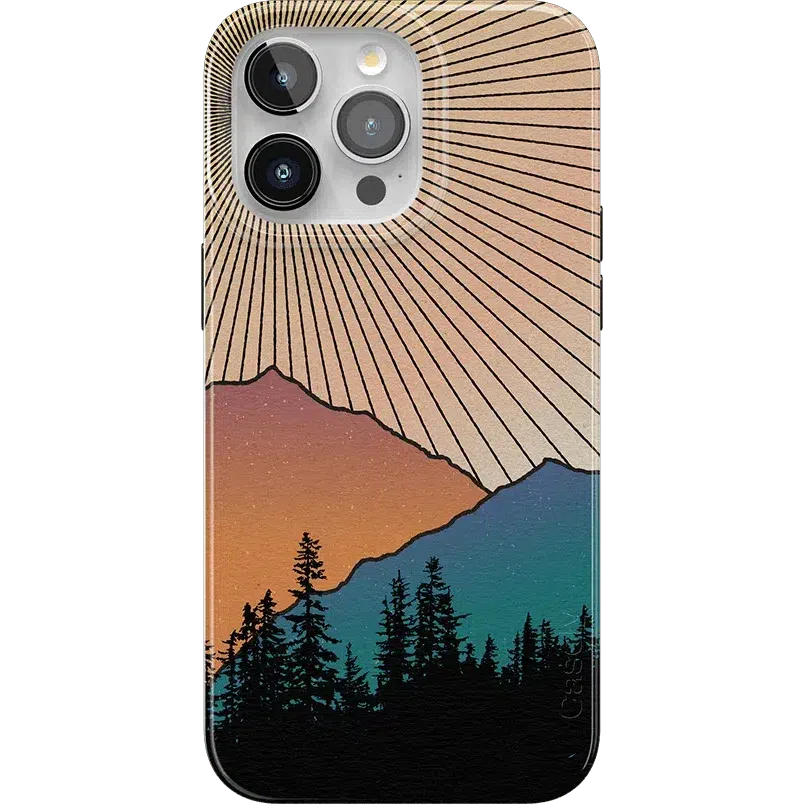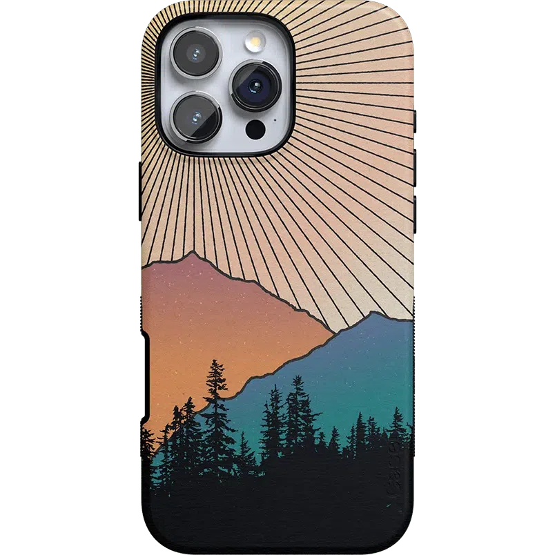 Rays of sunlight beam down over a mountain range. showcasing the silhouette of a stunning forest. It’s all taking place at that hushed golden hour between night and day鈥攖hat’s the inspiring vision you get to see every day when you pick up the Golden Hour Mountain Sunset case at Casely. It’s easy to get lost in its beauty in the same way you might get lost in images of natural landscapes. If you’re a hiker. camper. nature lover. or just appreciate beautiful horizons in general. this is the case for you.