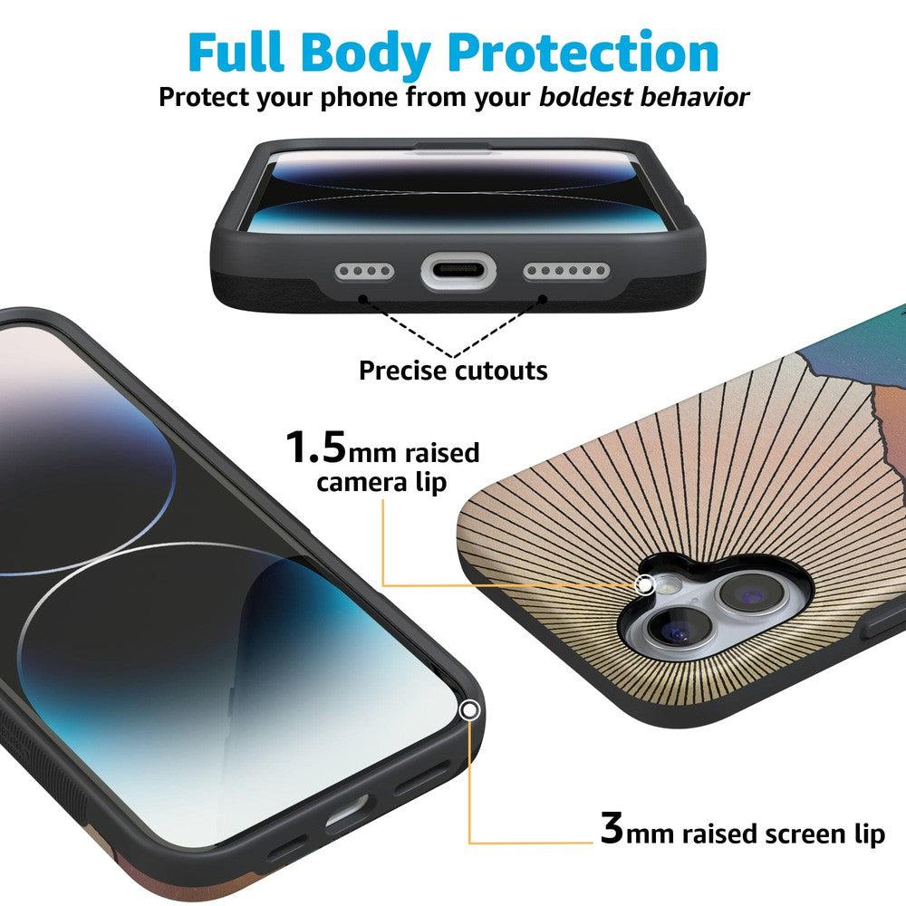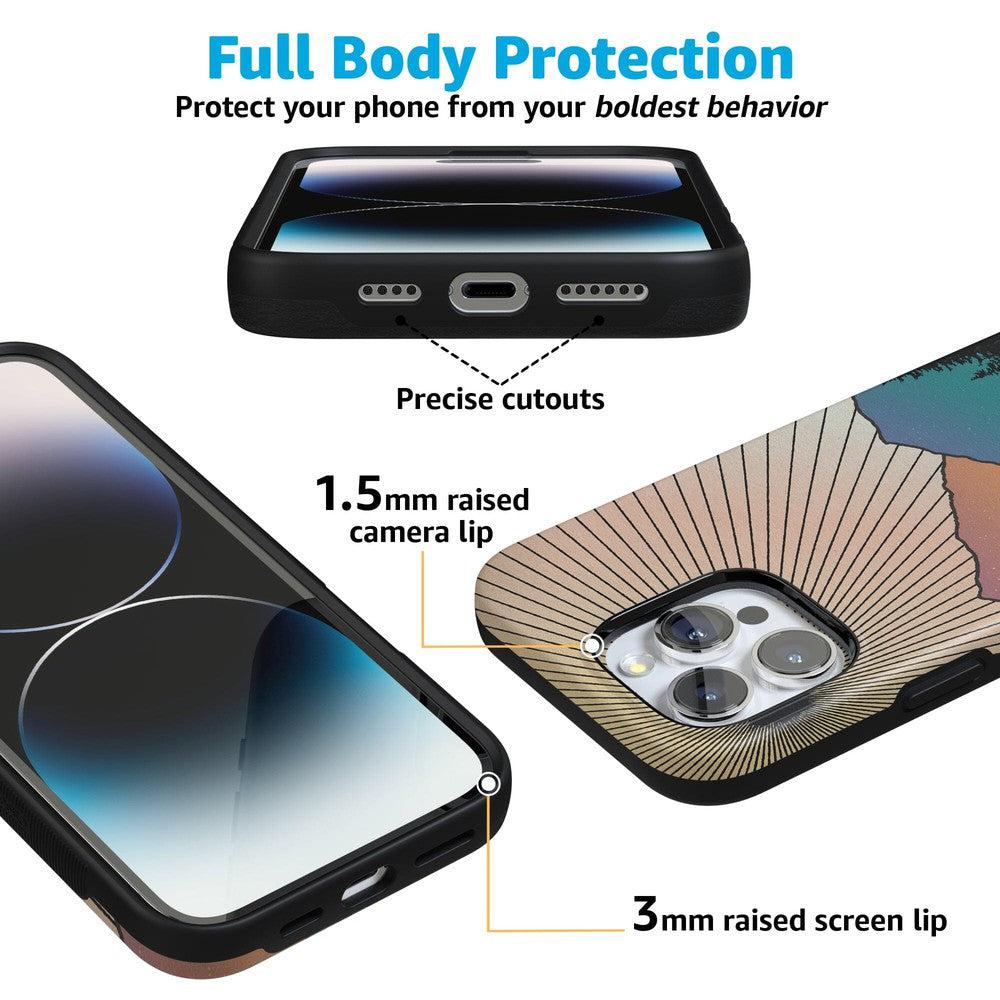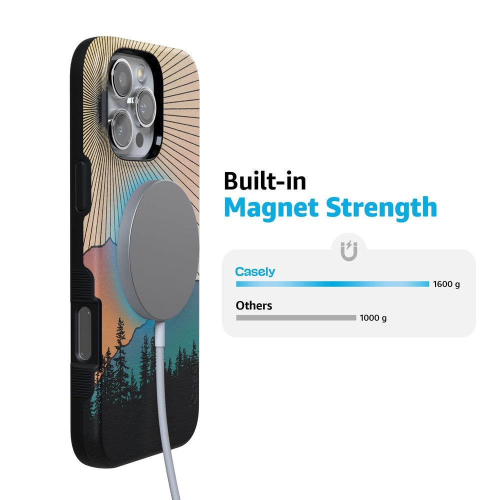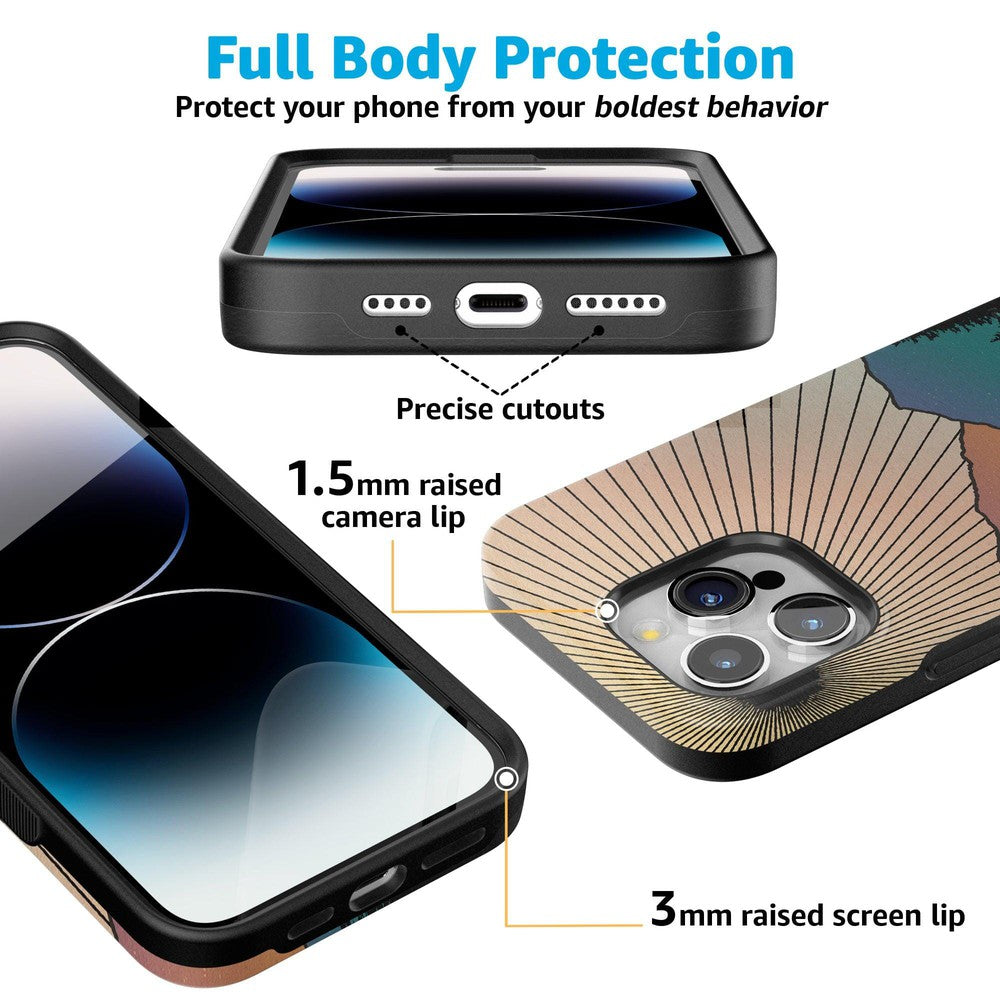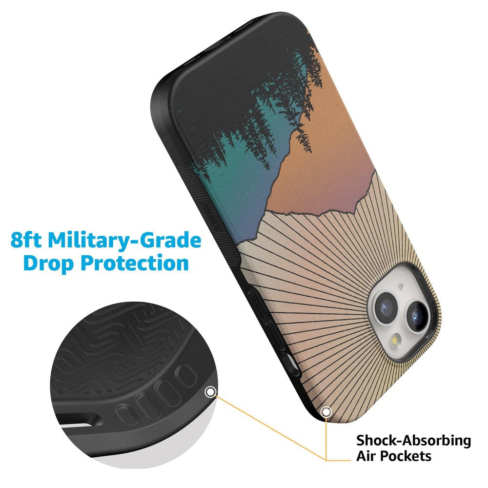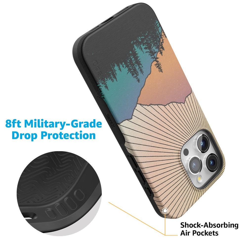 This case captures the natural world’s magic but then subtly weaves in the robust protection of the technological one. With it. you get military-grade drop protection. It might be aesthetically pleasing. but this case is tough. And you’ll need rugged protection when hiking up the mountains to see this vision in real life.