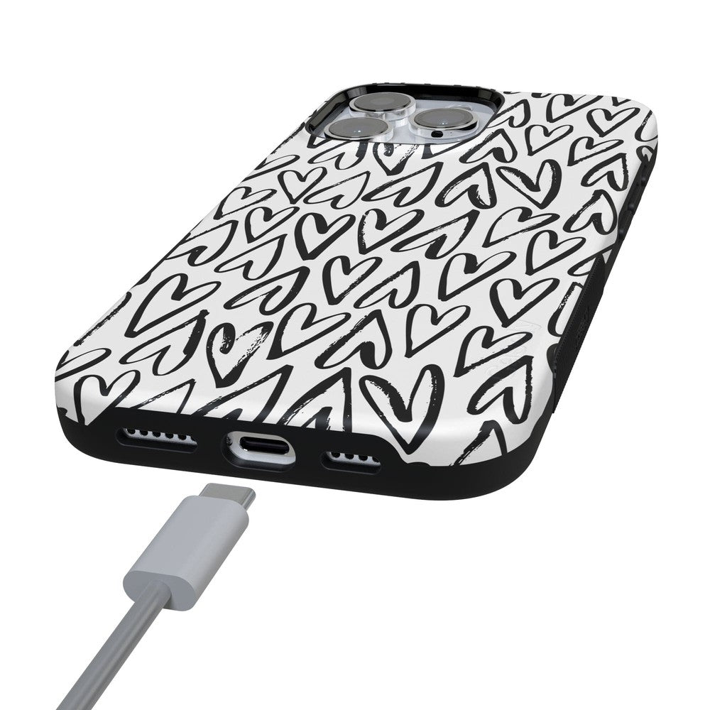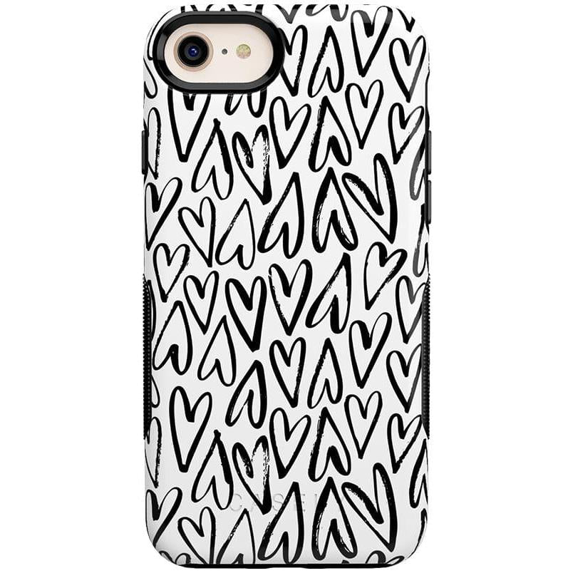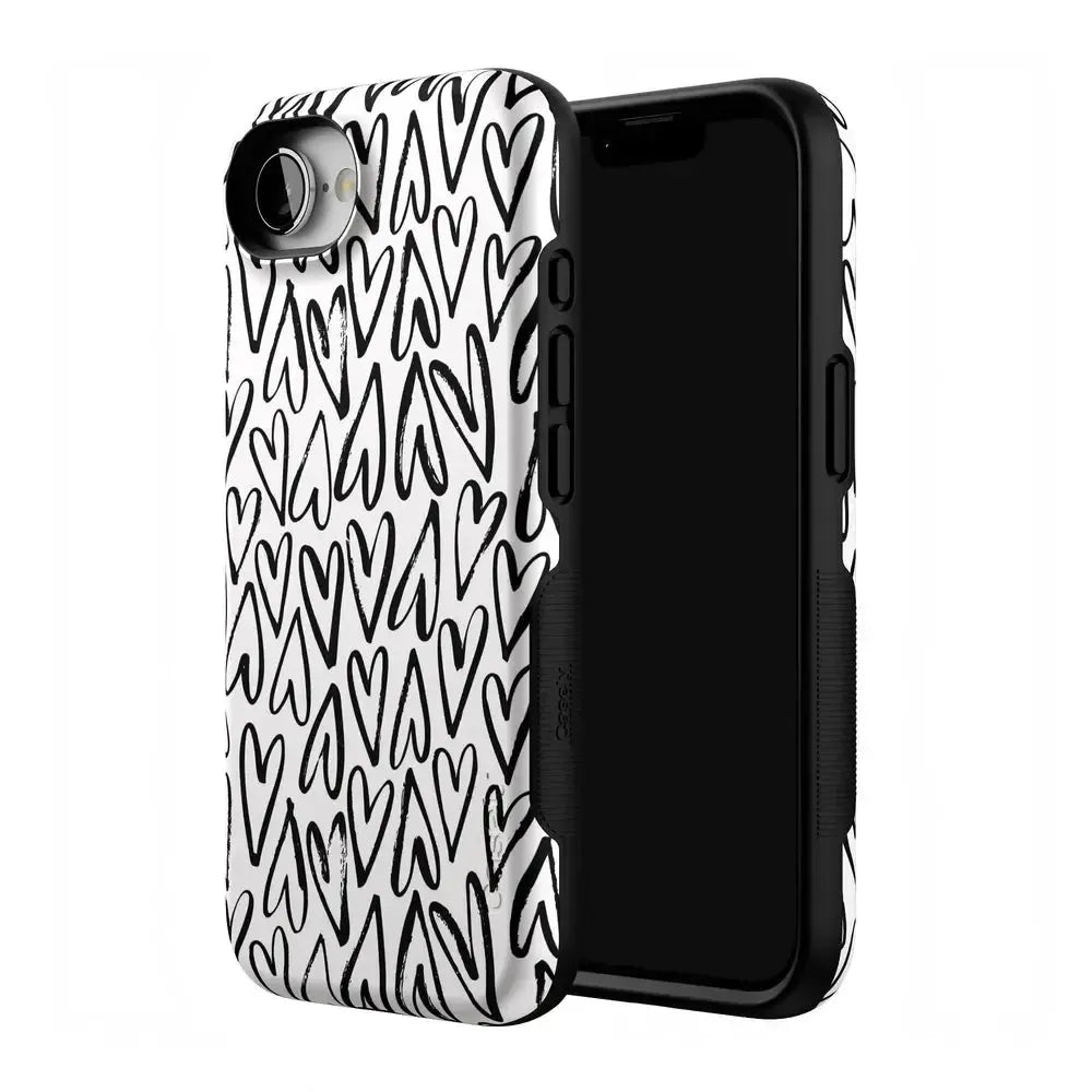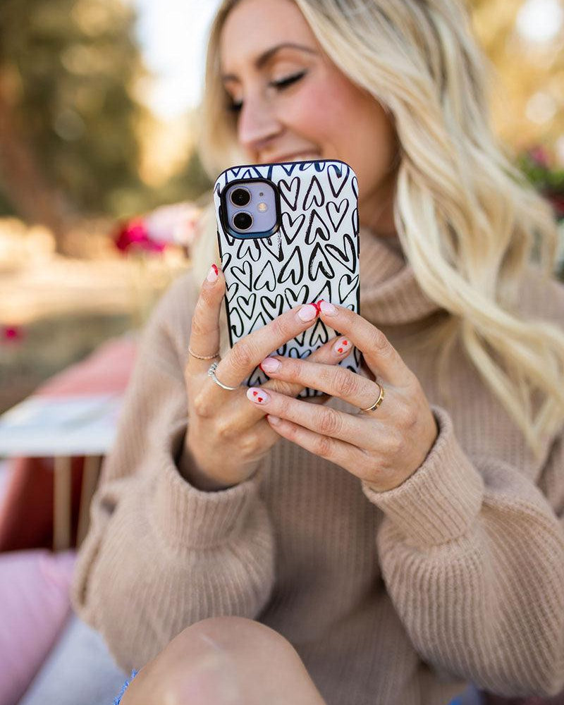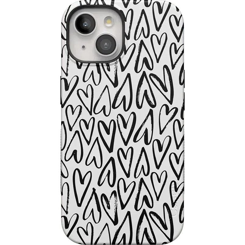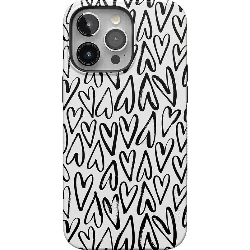 For the hopeless romantics of the world. this case is for you. Decked out with hearts to satisfy your heart’s desire. this case is perfect for anyone who is looking for love or just throbbing with love and trying to spread some of it around. This case is offered in both the Bold and Classic collection. featuring a white background in the Bold collection. and a clear background in the Classic collection. With neutral colors such as these. you can wear your heart on your phone. It’s the ultimate matching accessory to your passion. As gorgeous and sweet as this cover looks. don’t be fooled! It’s able to withstand some hard falls. With specifically rounded edges to protect your phone screen and volume buttons. you’ll never have to worry about if you’re sacrificing protection for looks.