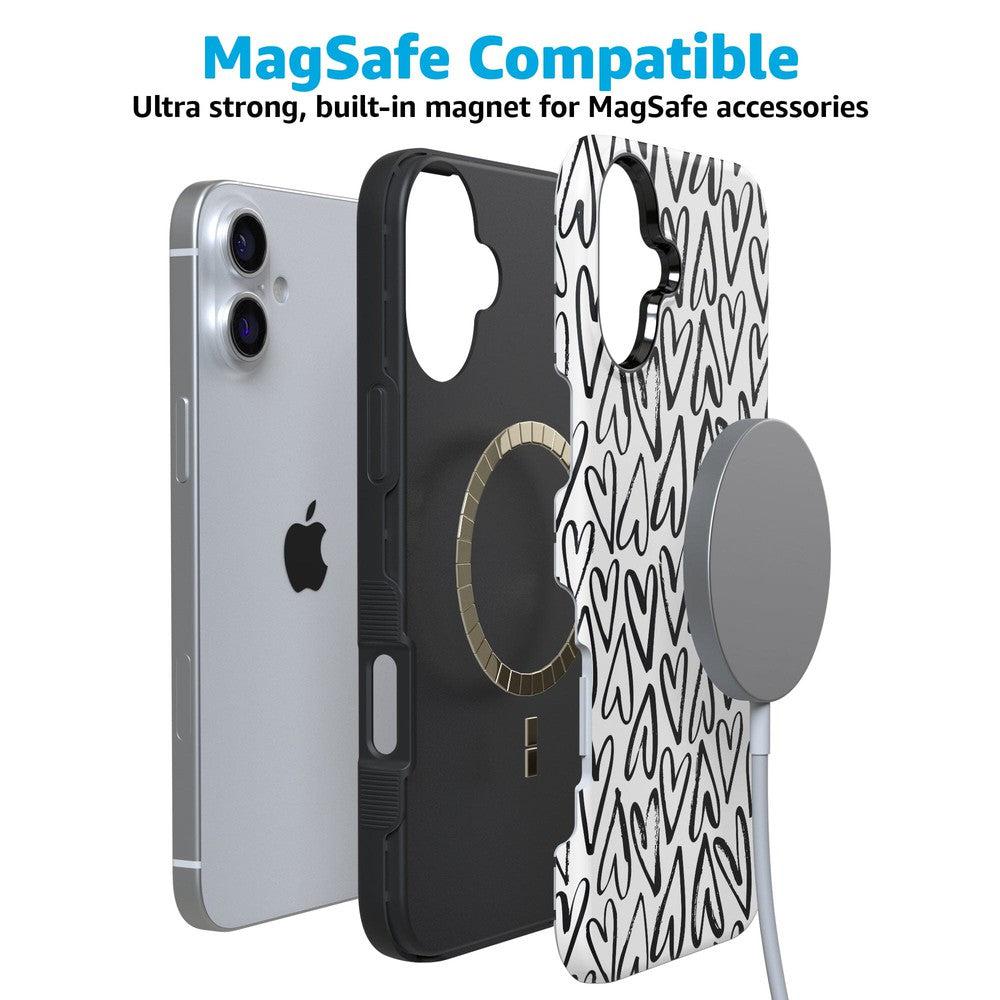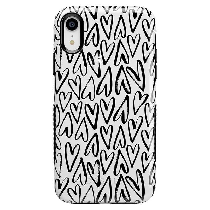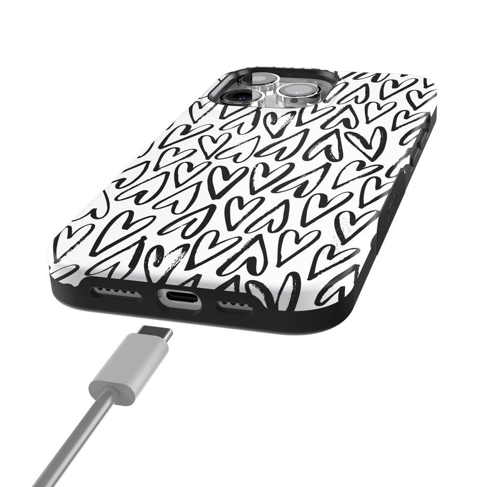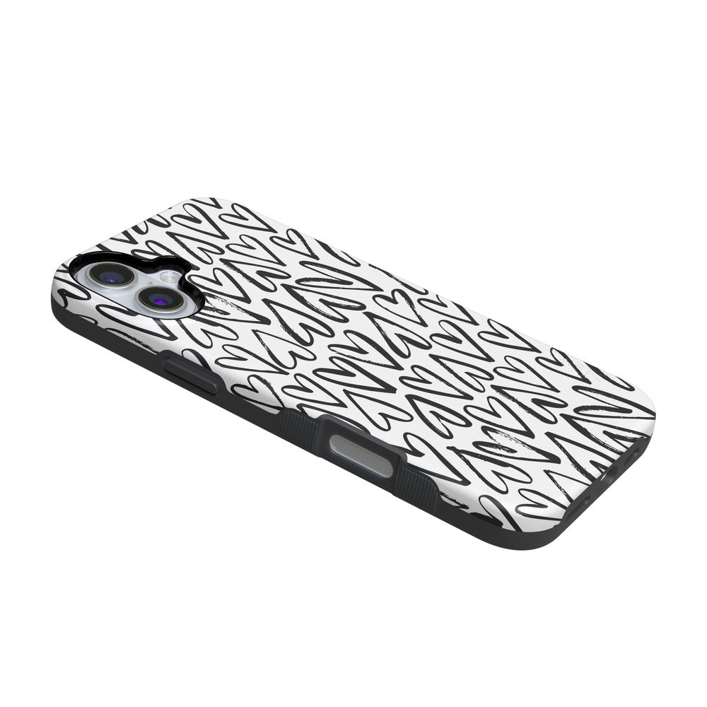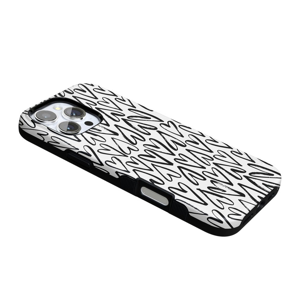 For the hopeless romantics of the world. this case is for you. Decked out with hearts to satisfy your heart’s desire. this case is perfect for anyone who is looking for love or just throbbing with love and trying to spread some of it around. This case is offered in both the Bold and Classic collection. featuring a white background in the Bold collection. and a clear background in the Classic collection. With neutral colors such as these. you can wear your heart on your phone. It’s the ultimate matching accessory to your passion. As gorgeous and sweet as this cover looks. don’t be fooled! It’s able to withstand some hard falls. With specifically rounded edges to protect your phone screen and volume buttons. you’ll never have to worry about if you’re sacrificing protection for looks.
