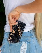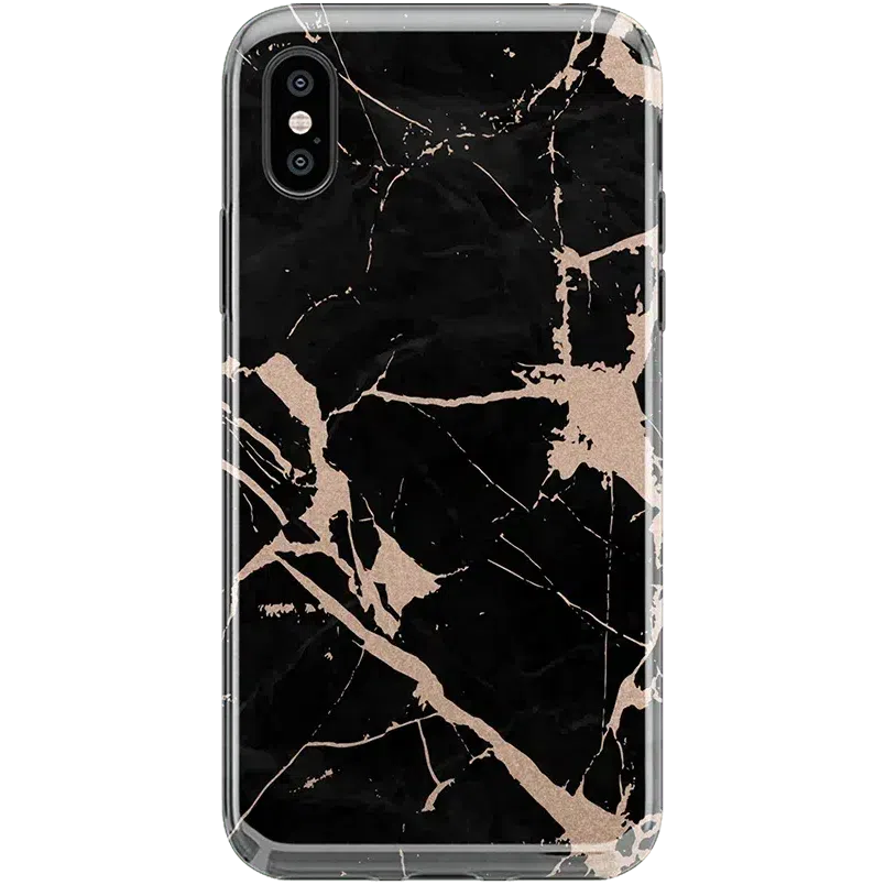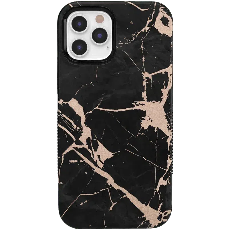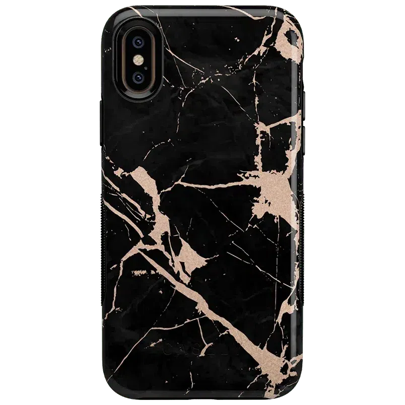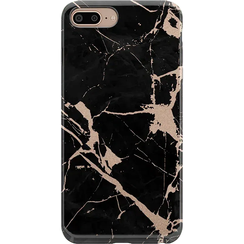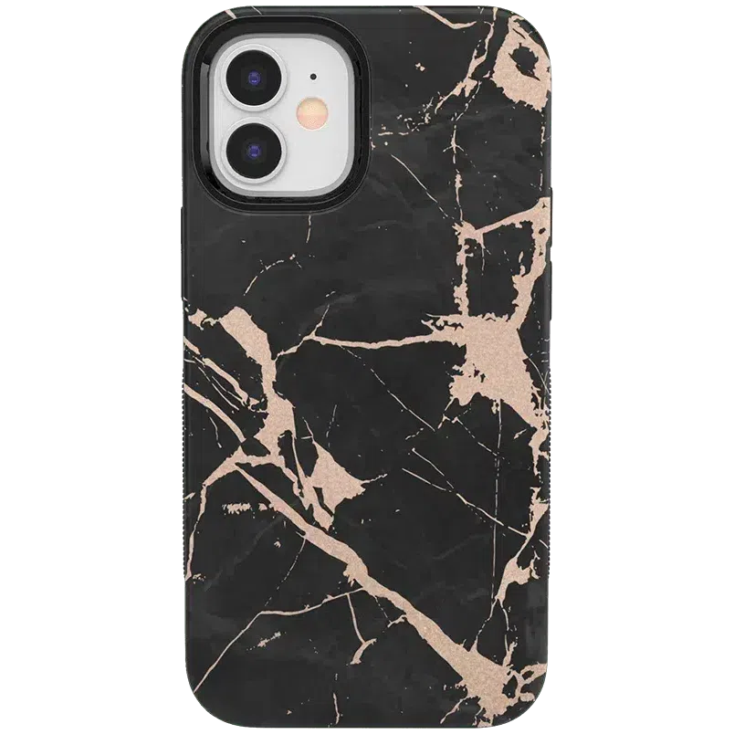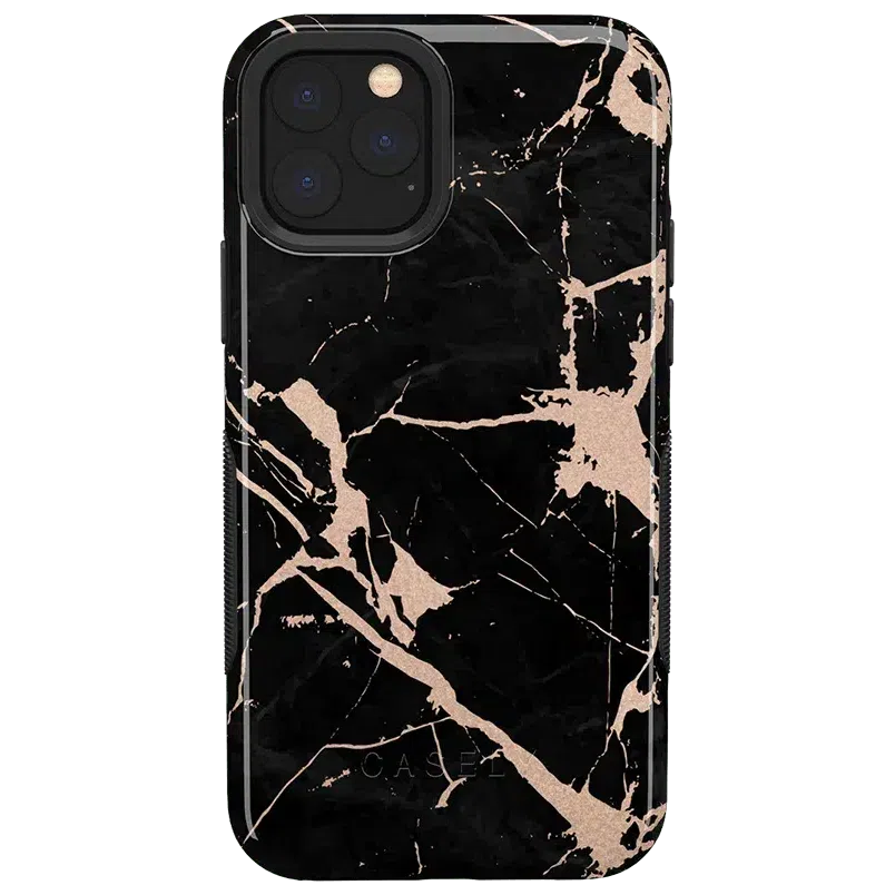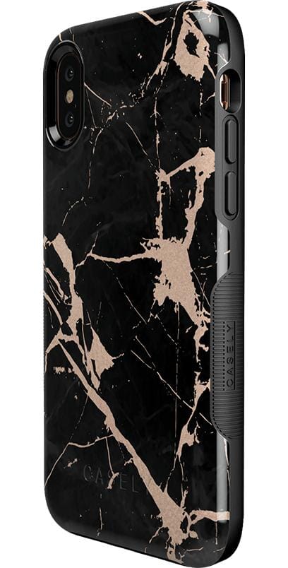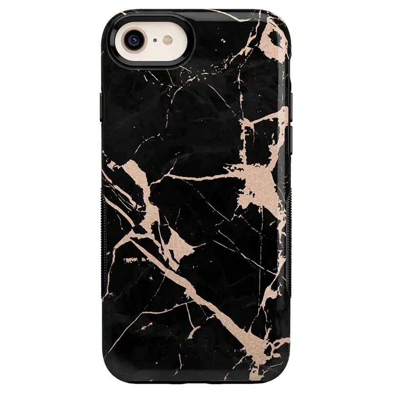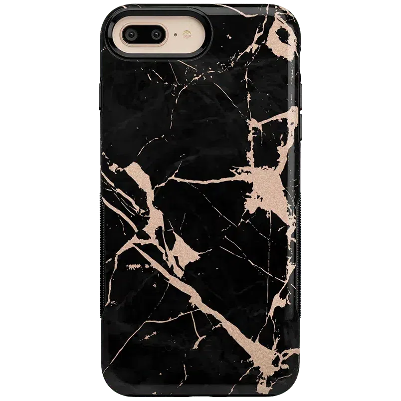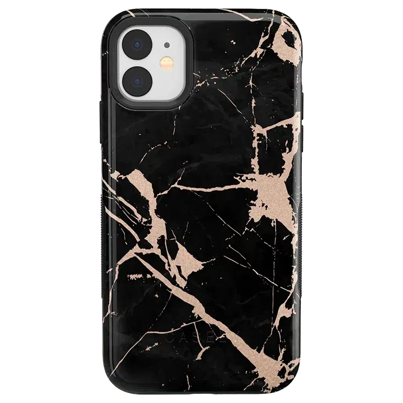 Protective black and rose gold iphone case layered with a shiny rose gold glossy finish. Prefer white marble? Designed with elegance and beauty in mind. this protective case for iPhone features a black marble print highlighted by layers of cracks that have a shiny rose gold and glossy finish. The Crack Rose Gold Black Marble iPhone Case has 1.2mm raised edges to provide phone and camera protection while remaining lightweight. The backing of this case is made with two layers of hard polycarbonate. This backing. plus the flexible TPU sides. are engineered to minimize impacts and absorb shock. For day to day drops and tumbles. this case ensures premium phone protection. This case is specifically designed with customers in mind. A limited edition case. this product can be ordered for a variety of Apple iPhone products. In addition to compatibility. this case is also user-friendly. The case fits securely around the responsive embossed buttons