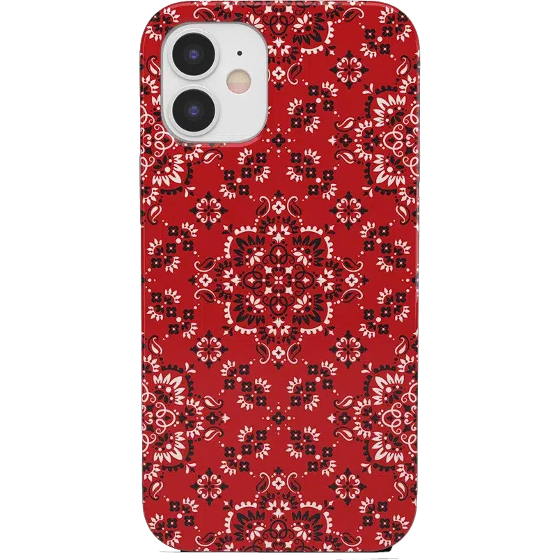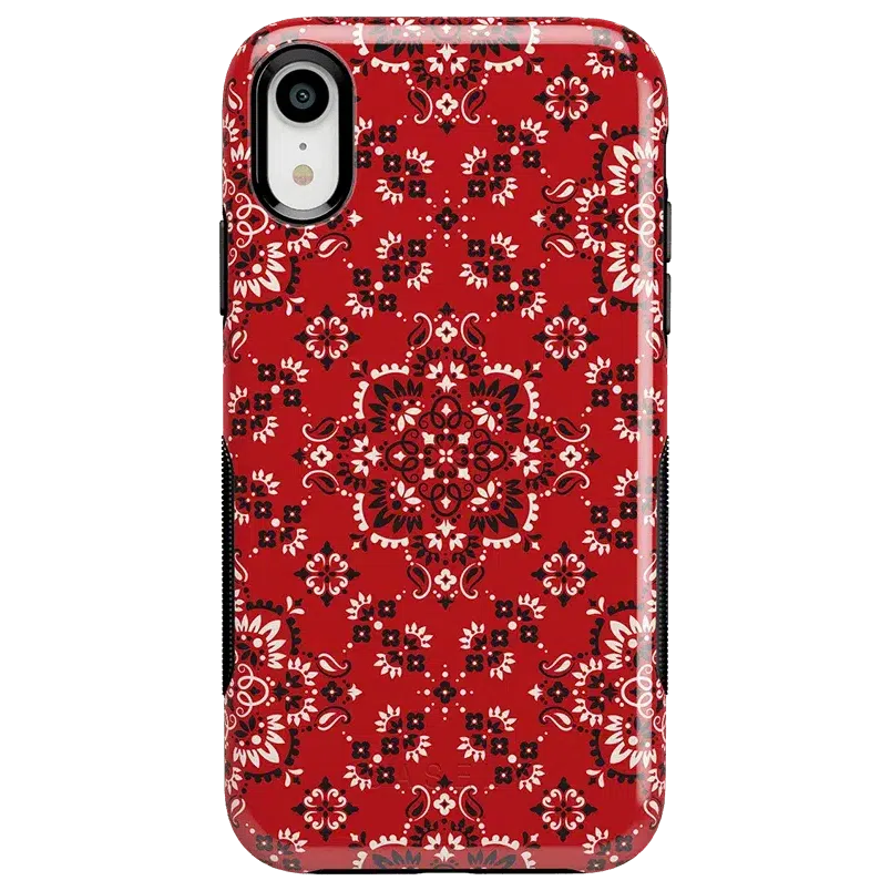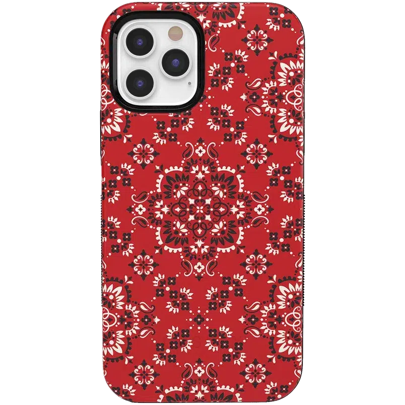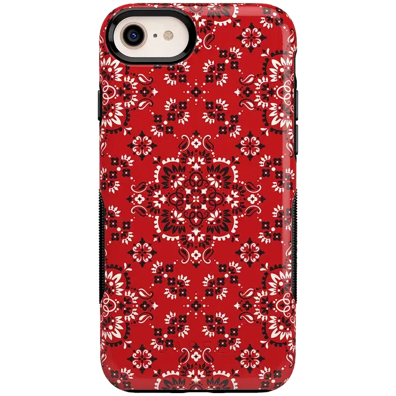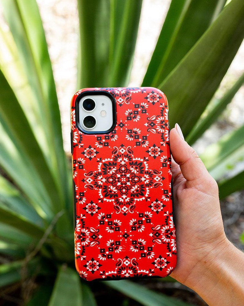 Did you ever want to be one of the cool girls who could say. I’m with the band? With the Red Bandana case. you can embody that cool girl band aesthetic. The boldness of the red paisley print gives it a festive feel. perfect for concerts. bonfires. rodeos鈥攜ou name it! But you should know. this case is not for the faint of heart: it is a piece that is meant to be seen! This pattern is cool enough to make people you’re not just with the band but in it! But paired with the right outfit. it also can be homey. ready to snuggle up with you on the couch with a book. Don’t let its coziness fool you though鈥攊t’s perfectly able to withstand hard falls. With specifically rounded edges to guard your phone screen and volume buttons. you’ll never have to worry if you’re sacrificing protection for looks. This case is offered in the Bold and Classic collections. This cover can be purchased for all iPhones 6 and up. the latest Samsung models. and the latest Note models.