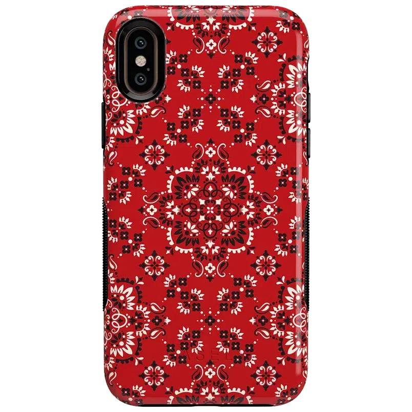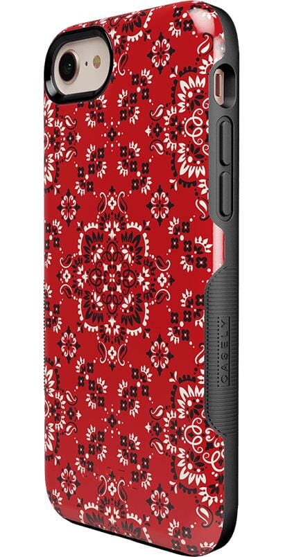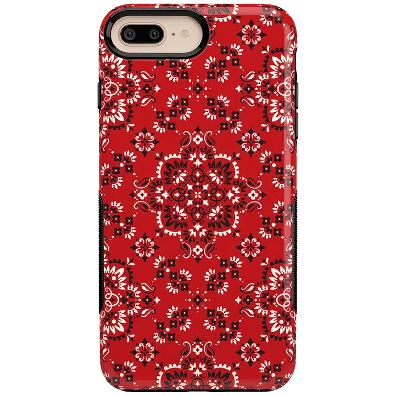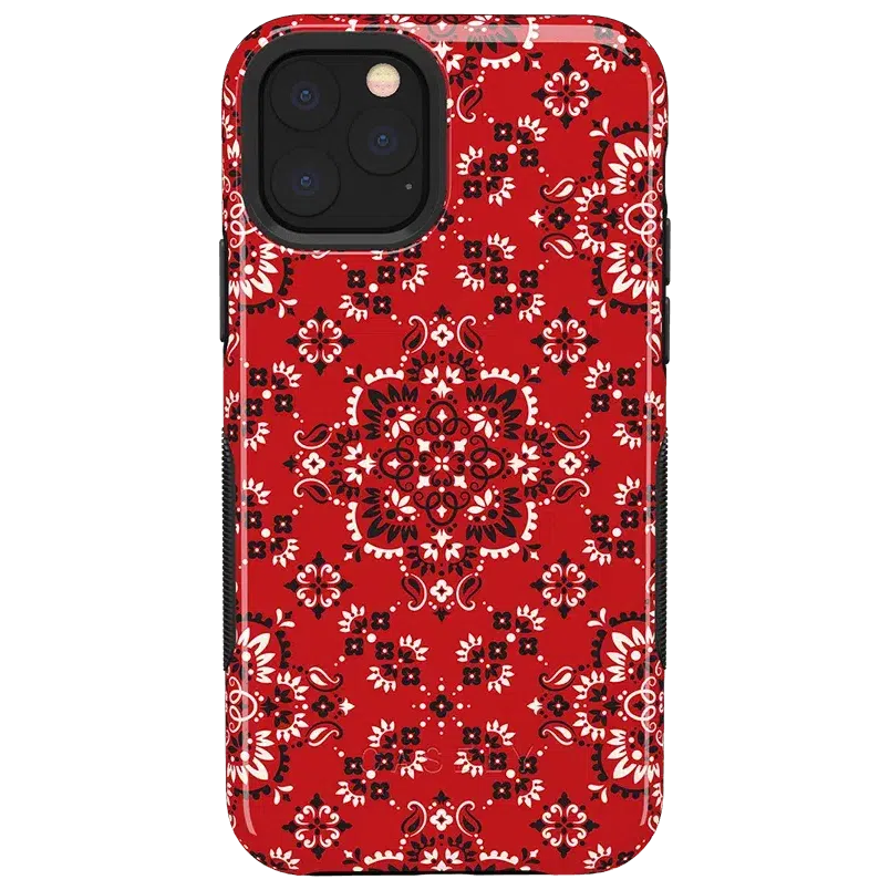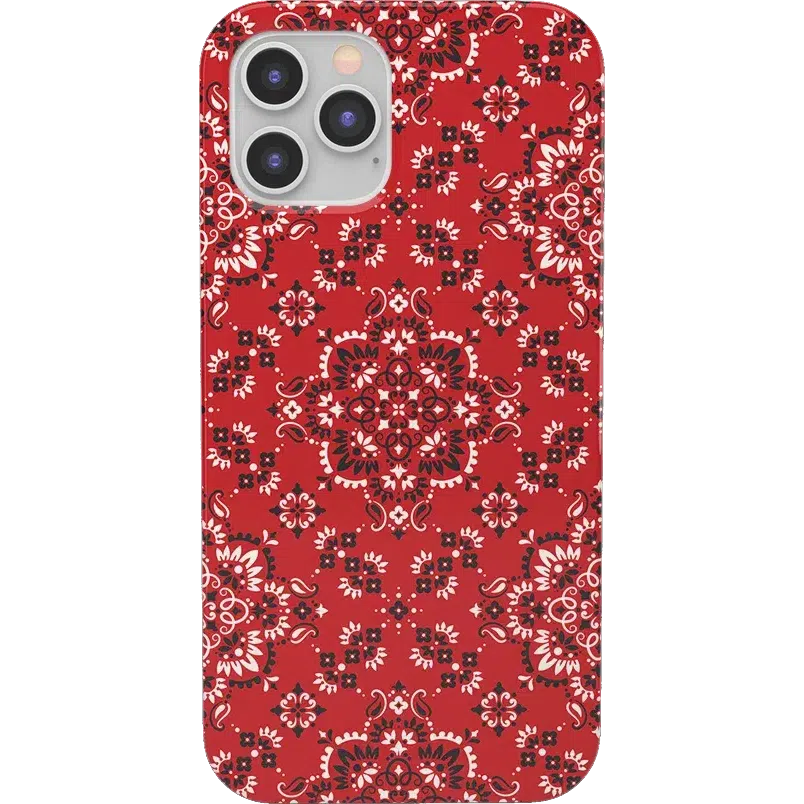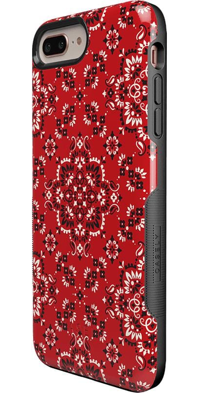 Did you ever want to be one of the cool girls who could say. I’m with the band? With the Red Bandana case. you can embody that cool girl band aesthetic. The boldness of the red paisley print gives it a festive feel. perfect for concerts. bonfires. rodeos鈥攜ou name it! But you should know. this case is not for the faint of heart: it is a piece that is meant to be seen! This pattern is cool enough to make people you’re not just with the band but in it! But paired with the right outfit. it also can be homey. ready to snuggle up with you on the couch with a book. Don’t let its coziness fool you though鈥攊t’s perfectly able to withstand hard falls. With specifically rounded edges to guard your phone screen and volume buttons. you’ll never have to worry if you’re sacrificing protection for looks. This case is offered in the Bold and Classic collections. This cover can be purchased for all iPhones 6 and up. the latest Samsung models. and the latest Note models.