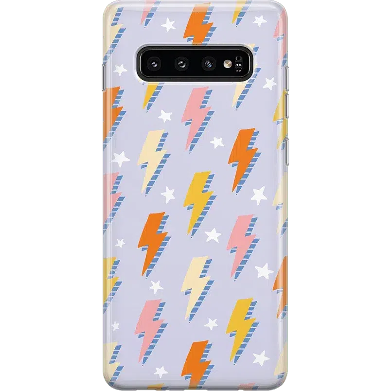The on-trend weather-themed pattern will keep you and your phone happy come rain or shine. With a pastel purple background and lightning bolts of orange. yellow. and pink. it offers a stylish color palette without being too over the top. Pastels remain an on-trend aesthetic. making this the perfect case if you want to combine those trendy pastels with a bold. graphic print.