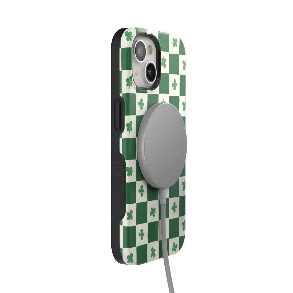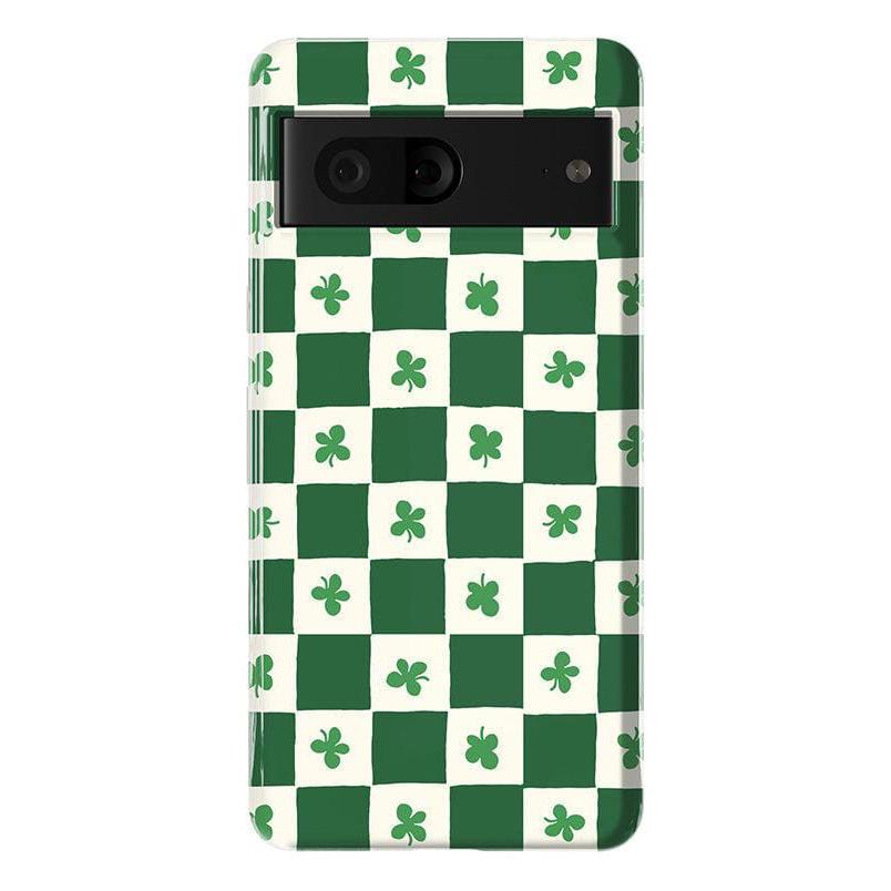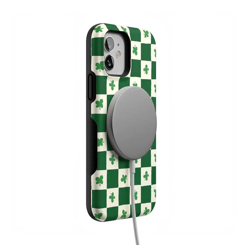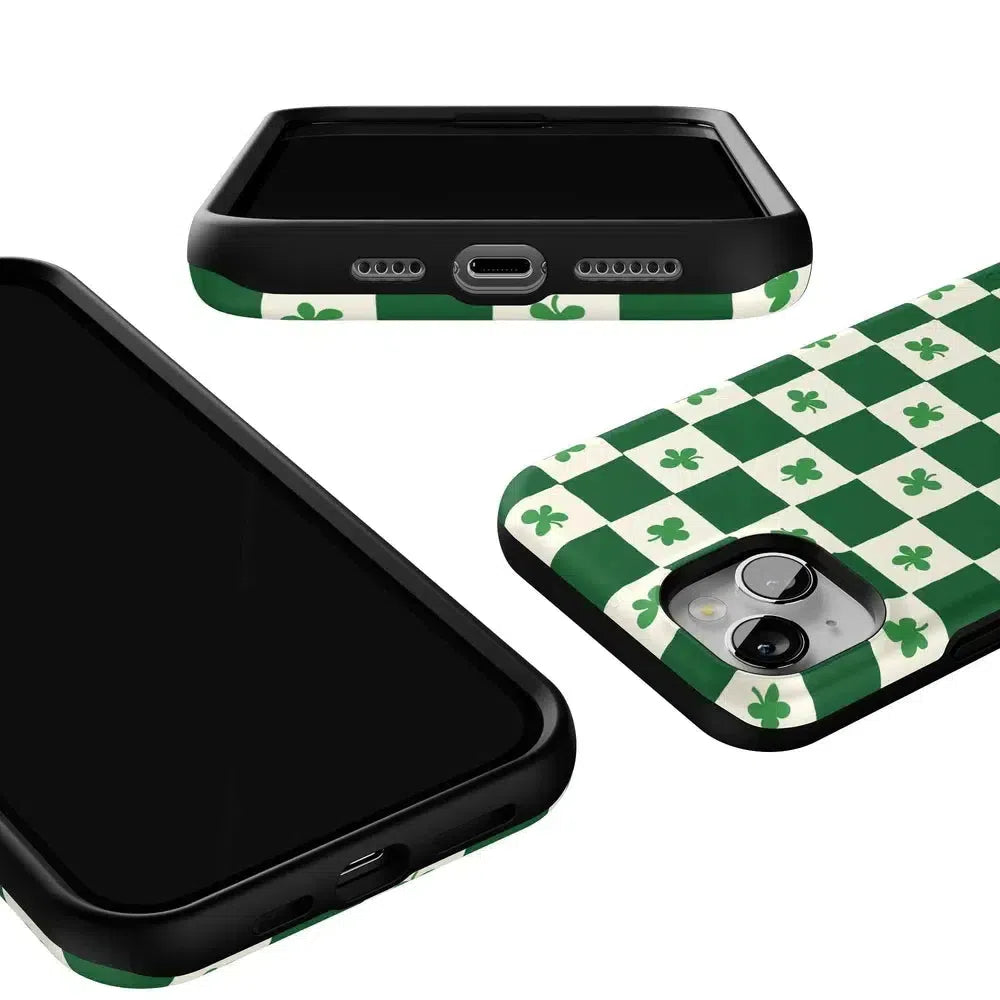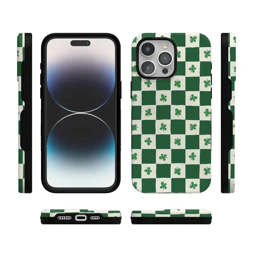 Celebrate St. Patrick’s Day with a new. shamrock checkerboard case. Available in iPhone. Samsung & Google Pixel.