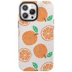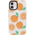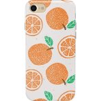 The artwork is speckled across the case as if a child was playing with paints and stamps in the backyard. Bright orange slices and cute green leaves splash across the white background. The homemade feel brings the warmth of summer to the simple stencil design.