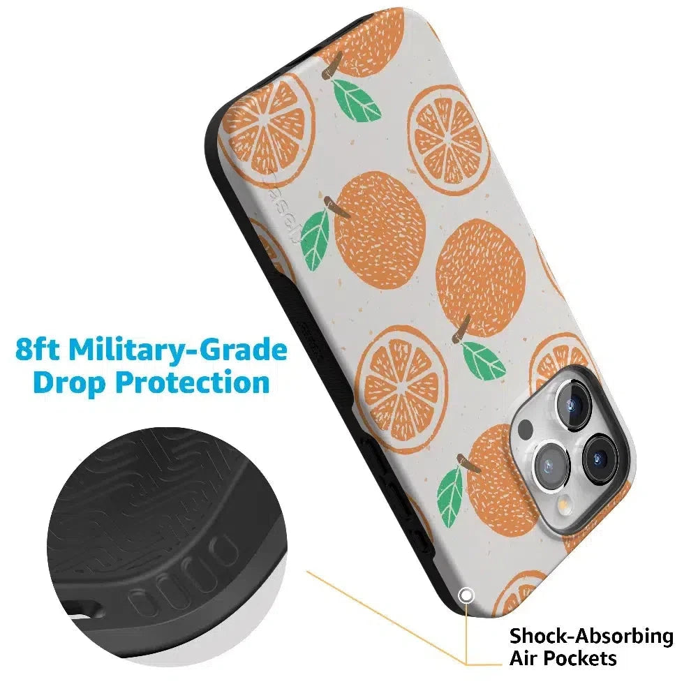 Are you team California or Florida when it comes to oranges? Regardless of what side of the debate you fall on. the Main Squeeze Casely phone case doesn’t discriminate. With bright. cheery colors and simplicity. this case taps into the childlike energy of summer vacation. Go back to the days of eating orange slices on the playground with this delightfully fun case!