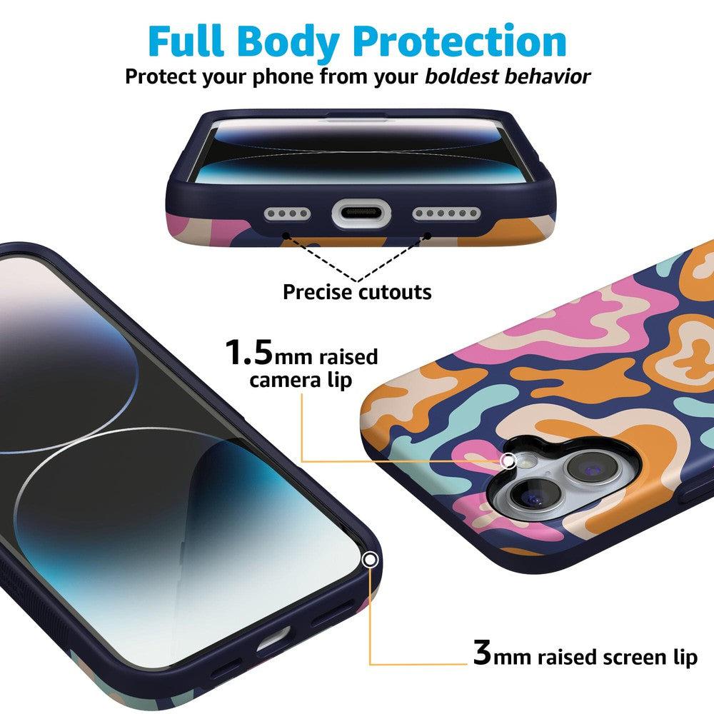 If you feel your era was the 70s or 80s. this case will be your newest totally tubular friend. Bold. beautiful. and slightly chaotic. it’s the perfect abstract case. Let your creative side run wild and express yourself with this vibrant retro case.
