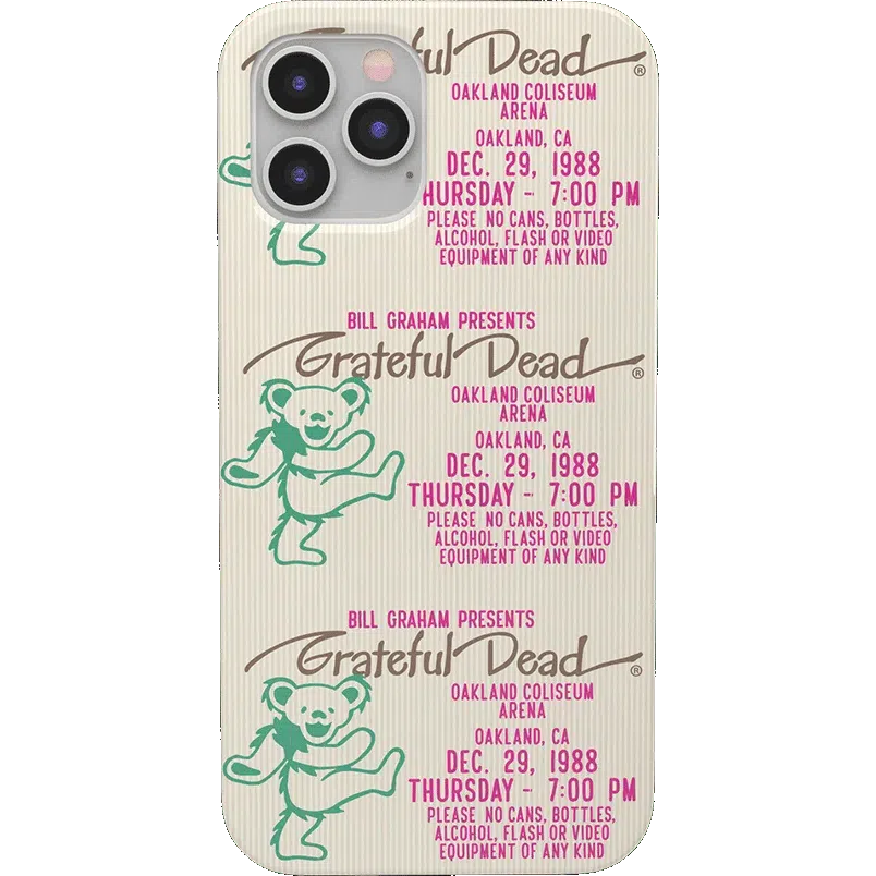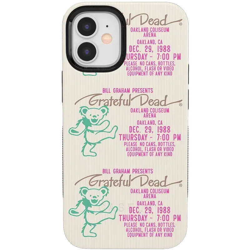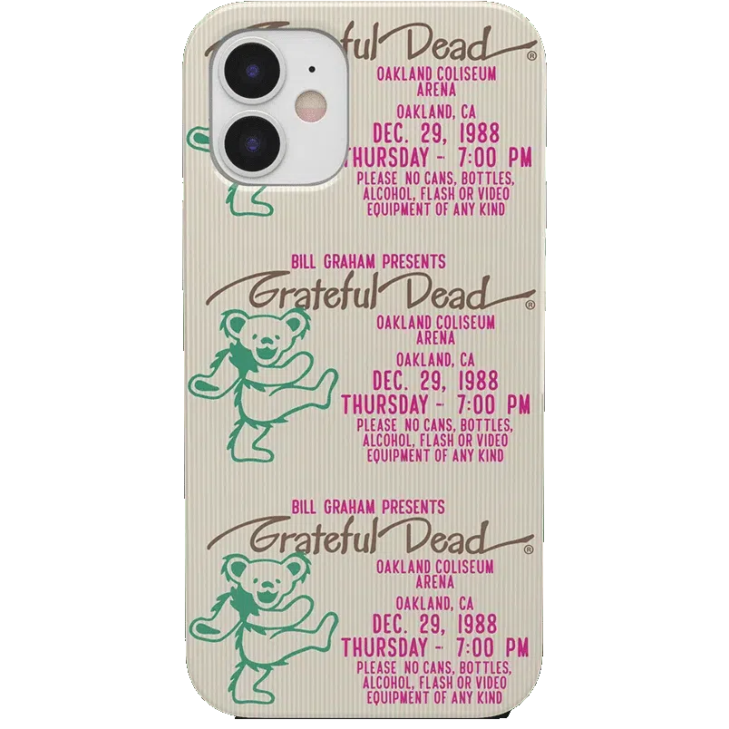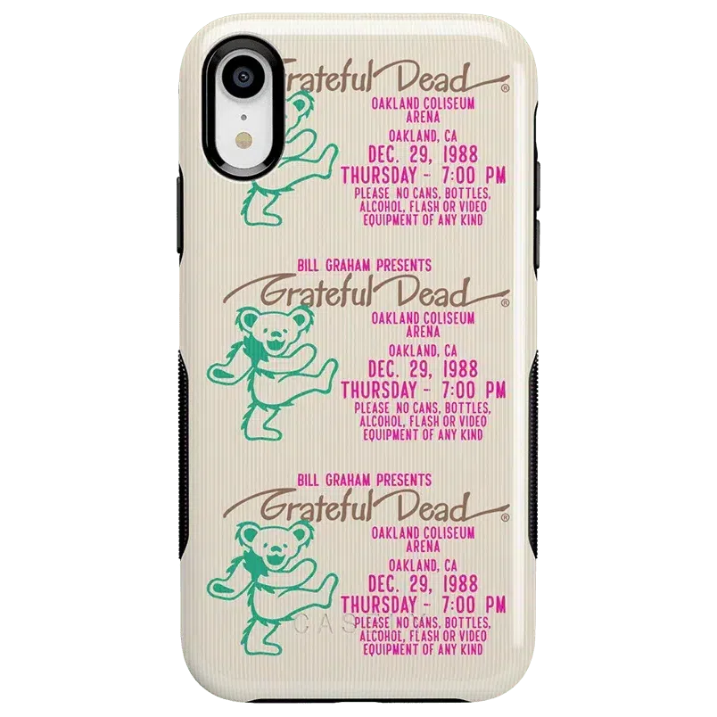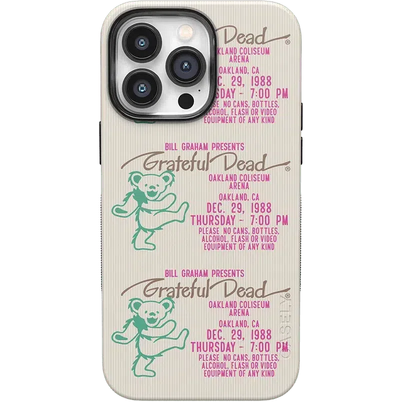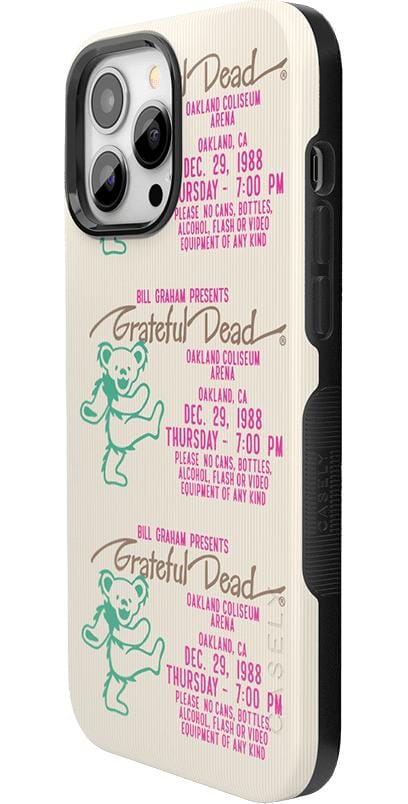 We’re kicking it back to 12/29/88 at Oakland Coliseum Arena with our NEW Miracle Ticket | Grateful Dead Vintage Case. The original ticket from the Grateful Dead’s rockin’ show is featured on this stylish phone case. and allows you to bring a piece of the legendary band with you everywhere you go. This limited-edition product is part of the Grateful Dead x Casely collection and is available for all iPhone 6 and up. It’s stunning and durable. and is perfect for any Deadhead.