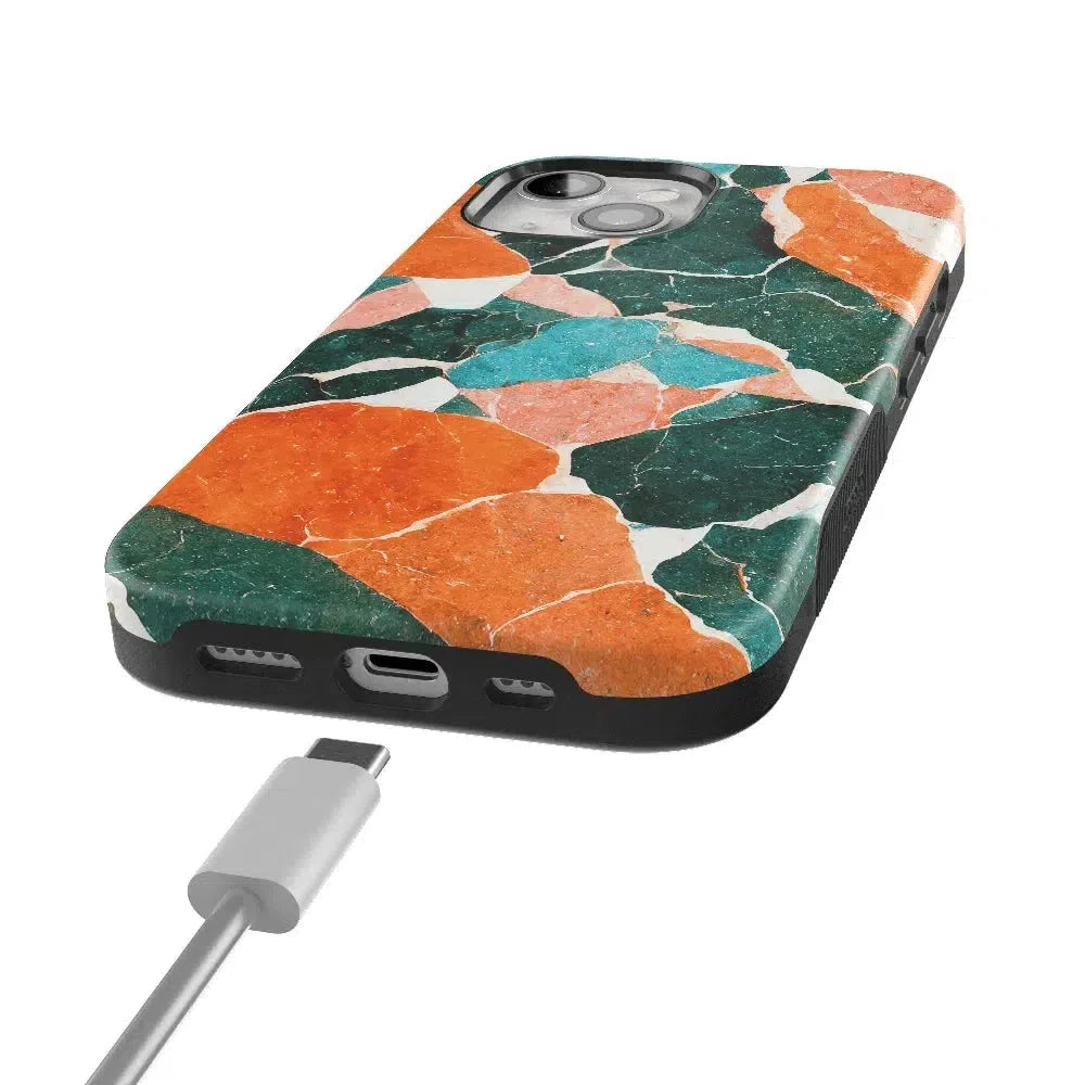 Emerald green. sapphire orange. and a chunk of turquoise at the center鈥攚e’re not talking about a case of gemstones but the sculpted marble case. Of Quartz! The marble cut aesthetic will make you feel like you’re carrying a work of beautiful modern art. It’s chic. classy. and bold all in one. If you couldn’t tell already. we’re big fans.