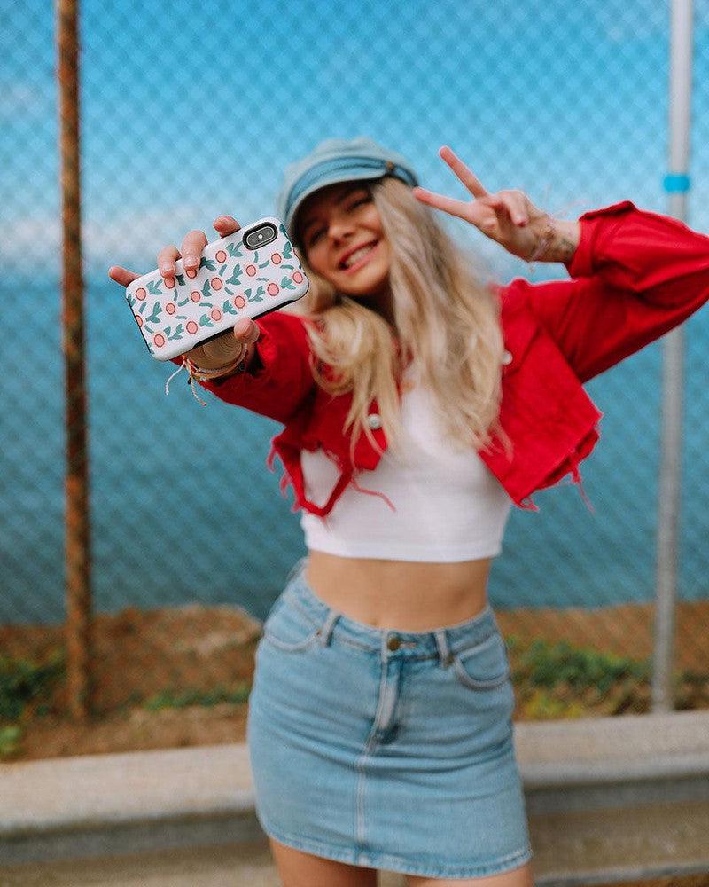 Fresh off the vine. this fruity and fun cover is just in time for the change in season. The orange fruits arrive just in time for refreshing your autumn decor. The design is casual and sweet. perfect for running errands and day-to-day happenings. The clean white background. juicy orange fruits. and tendrils of green make this case look fresh and bright. adding a bit of sunshine to anyone’s day! But don’t let the cute factor and playful charm of this case fool you – it’s perfectly able to withstand hard falls. With specifically rounded edges to protect your phone screen and volume buttons. you’ll never have to worry if you’re sacrificing protection for looks. This case is offered in the Bold and Classic collections. This phone case can be purchased for all iPhones 6 and up. the latest Samsung models. and the latest Note models.