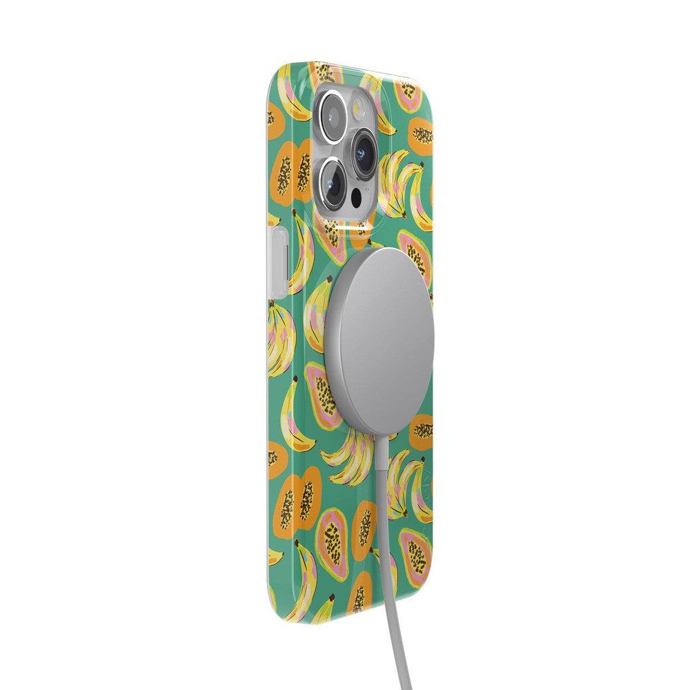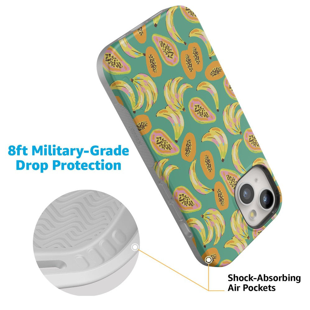 Step into a tropical paradise with the Papaya Palms case. This lively and vibrant phone case is part of a limited-edition collaboration with . showcasing a playful pattern of ripe bananas and juicy papayas set against a refreshing teal background. capturing the essence of island vibes. Shop the case at Casely. and snag matching swimwear in Dippin’ Daisy’s Tropical Vacation collection.