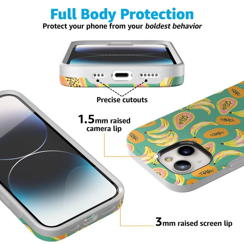 Designed to make a bold statement. the Papaya Palms case offers more than just style. It provides reliable protection for your phone with its durable. high-quality material. ensuring your device stays safe from everyday wear and tear. Whether you’re lounging by the pool or strolling along the beach. this tropical-themed case is the perfect accessory to complement your summer wardrobe. Embrace the fun and vibrant spirit of the tropics with the Papaya Palms case and matching swimwear from Dippin’ Daisy’s.