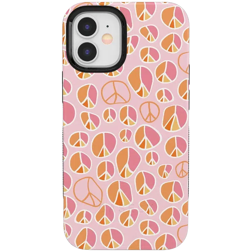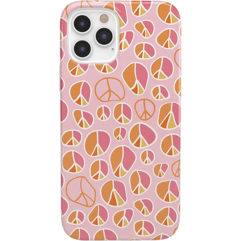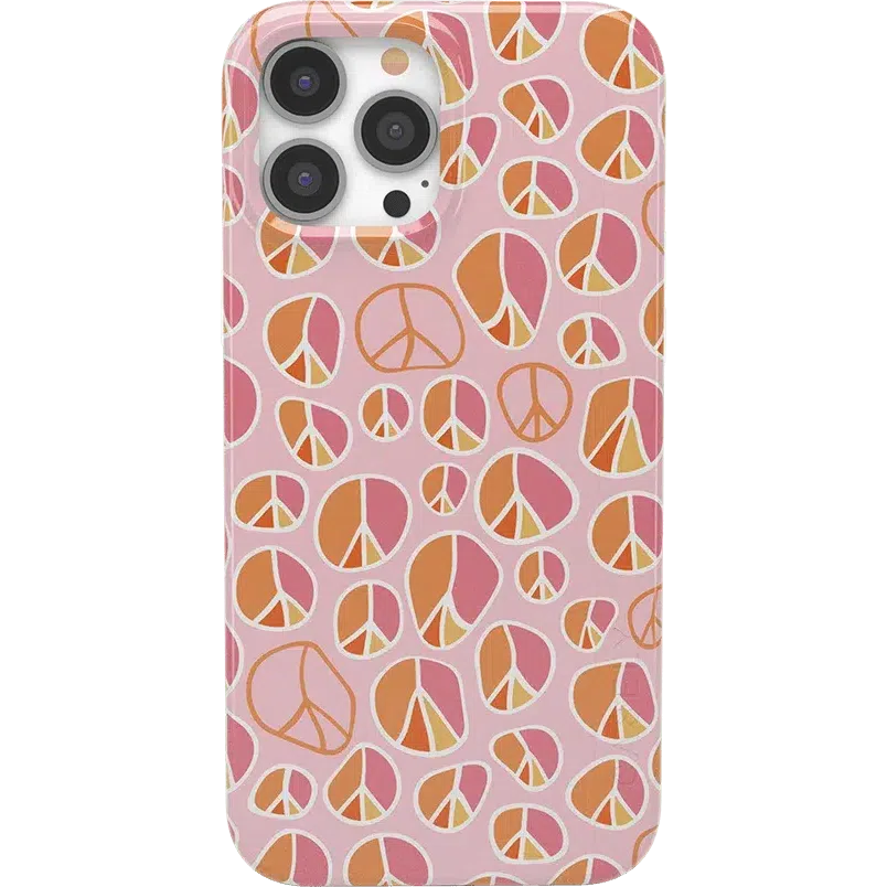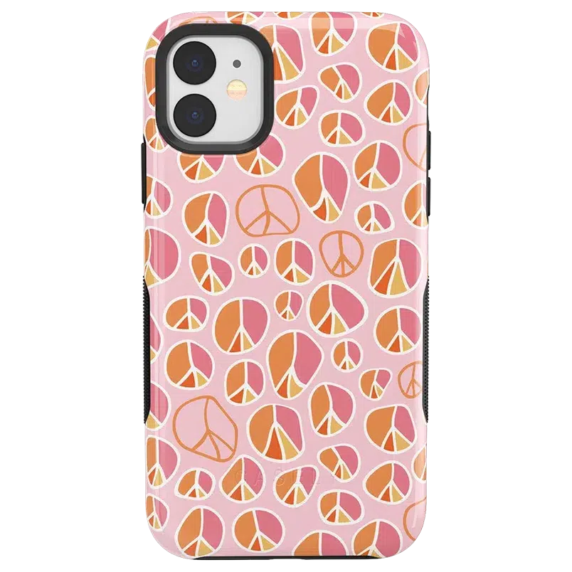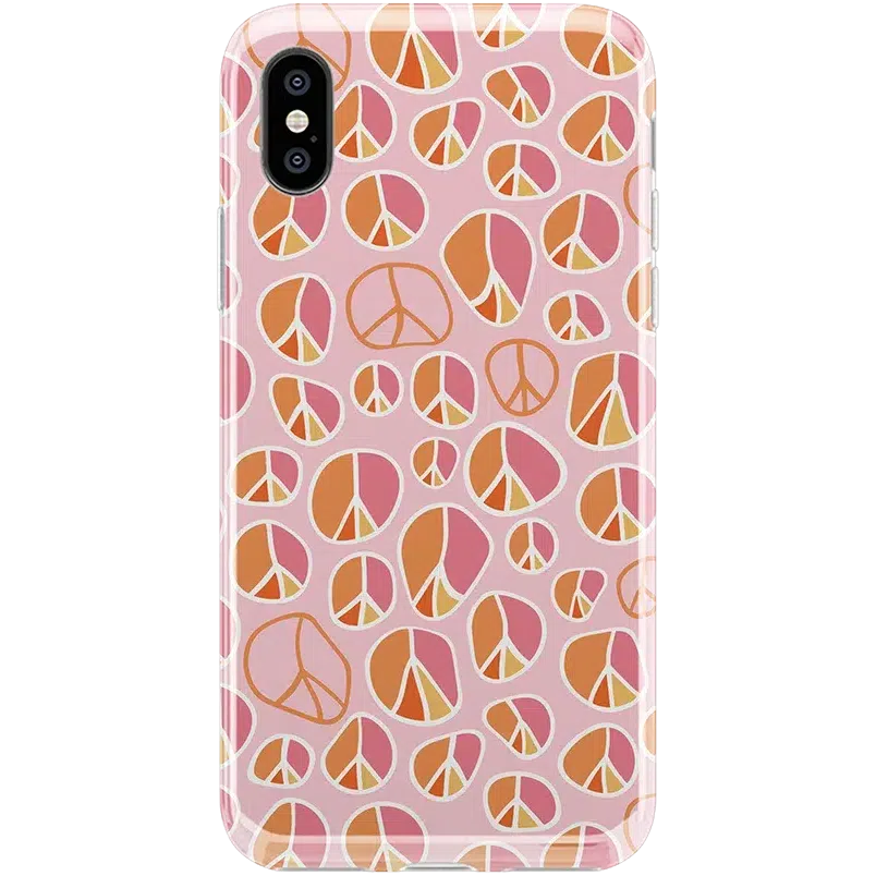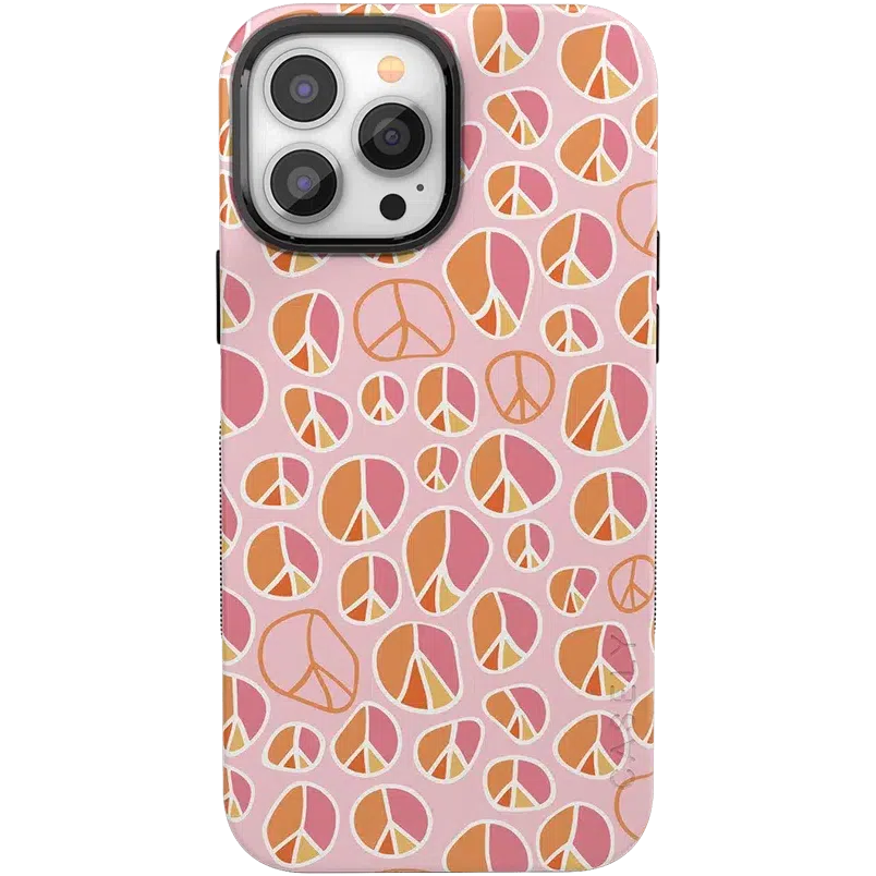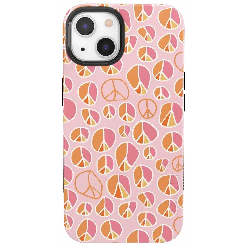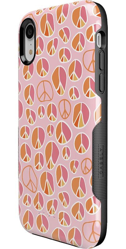 Give your phone major flower power vibes with the groovy Casely Peace Out case. The pink and orange peace sign graphics on the dreamy rose pink background are the perfect way to let the world know that you’re all about peace. man. This accessory is the can’t miss item for those with a true hippie heart. old soul. and a contemporary flair. Plus. a good flower child knows the importance of accessories that are both cute and functional. and this gives you just that. The polycarbonate material and shock-absorbent TPU siding make this case appropriate to take to even the wildest of music festivals. Factor in the embossed buttons for easy use and the raised 12mm edges that offer robust camera lens protection. and this case is sure to leave you feeling peaceful about your aesthetic choices. Get groovy today with the Peace Out case from Casely!