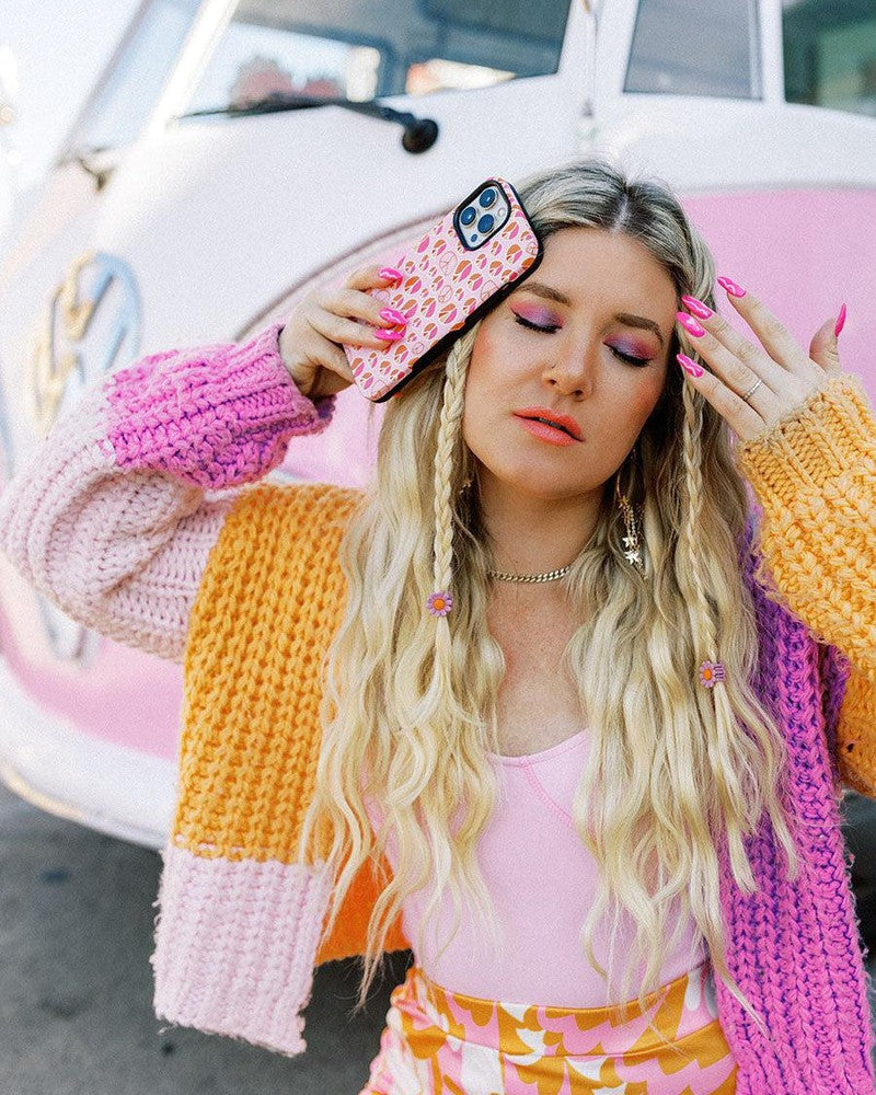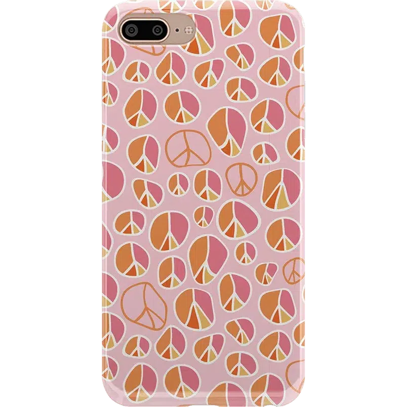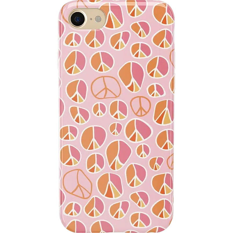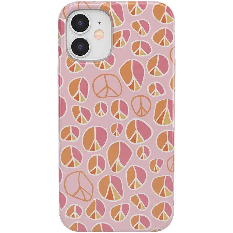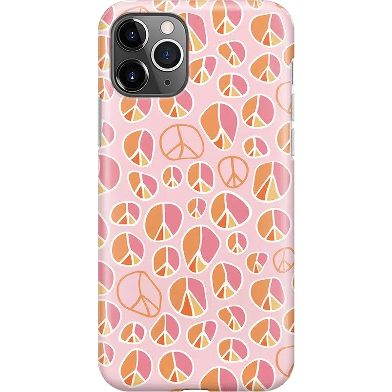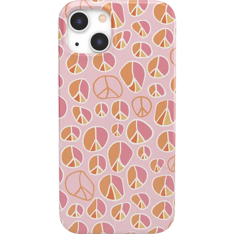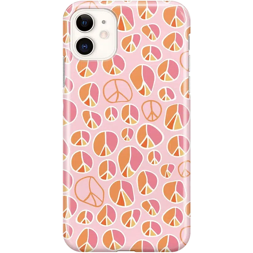 Give your phone major flower power vibes with the groovy Casely Peace Out case. The pink and orange peace sign graphics on the dreamy rose pink background are the perfect way to let the world know that you’re all about peace. man. This accessory is the can’t miss item for those with a true hippie heart. old soul. and a contemporary flair. Plus. a good flower child knows the importance of accessories that are both cute and functional. and this gives you just that. The polycarbonate material and shock-absorbent TPU siding make this case appropriate to take to even the wildest of music festivals. Factor in the embossed buttons for easy use and the raised 12mm edges that offer robust camera lens protection. and this case is sure to leave you feeling peaceful about your aesthetic choices. Get groovy today with the Peace Out case from Casely!