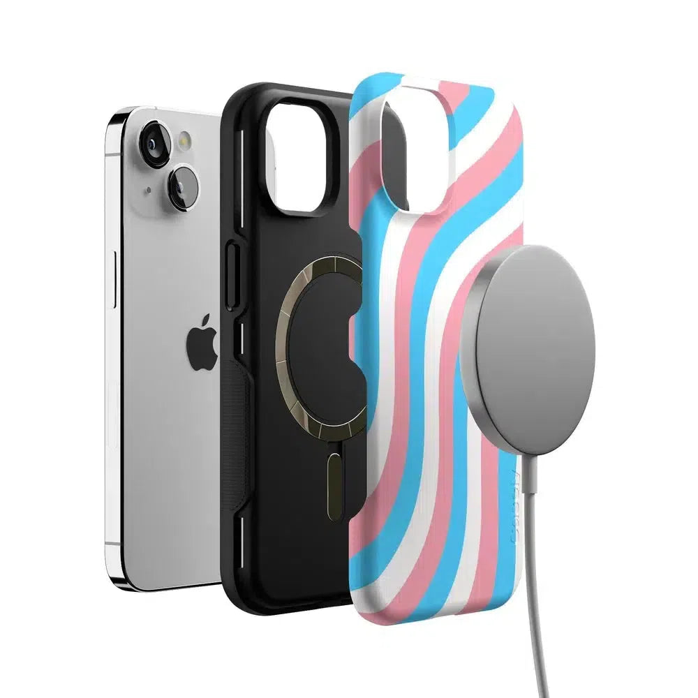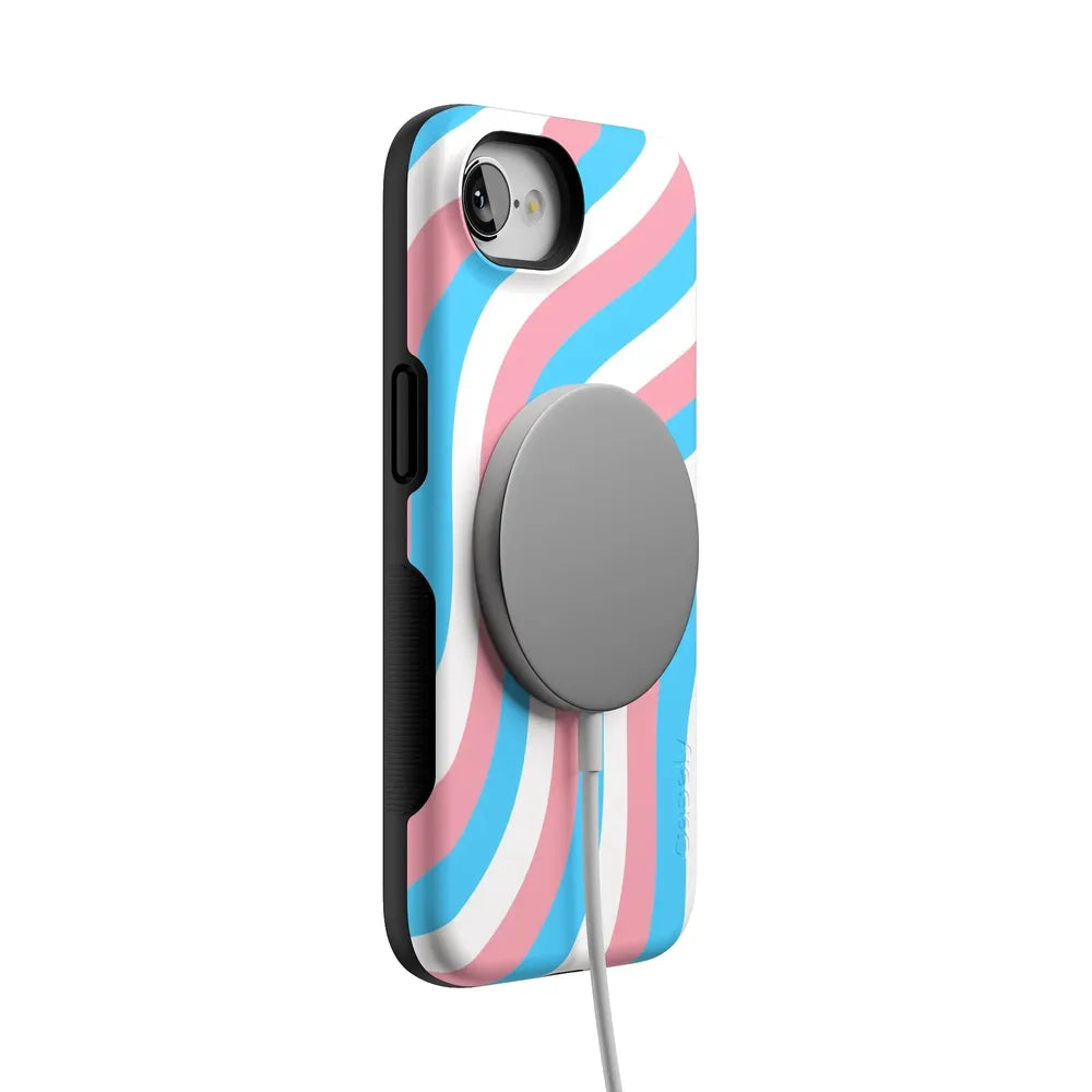 Celebrate your true self with the Proud To Be Me Pride Case. featuring a stunning wave design in the vibrant colors of the trans flag. This eye-catching case not only showcases your pride but also provides robust protection for your phone.