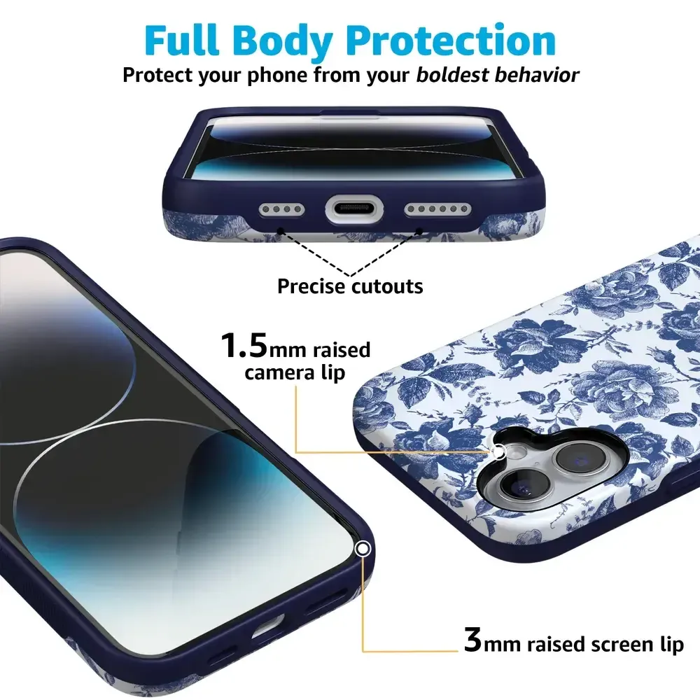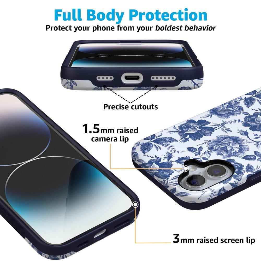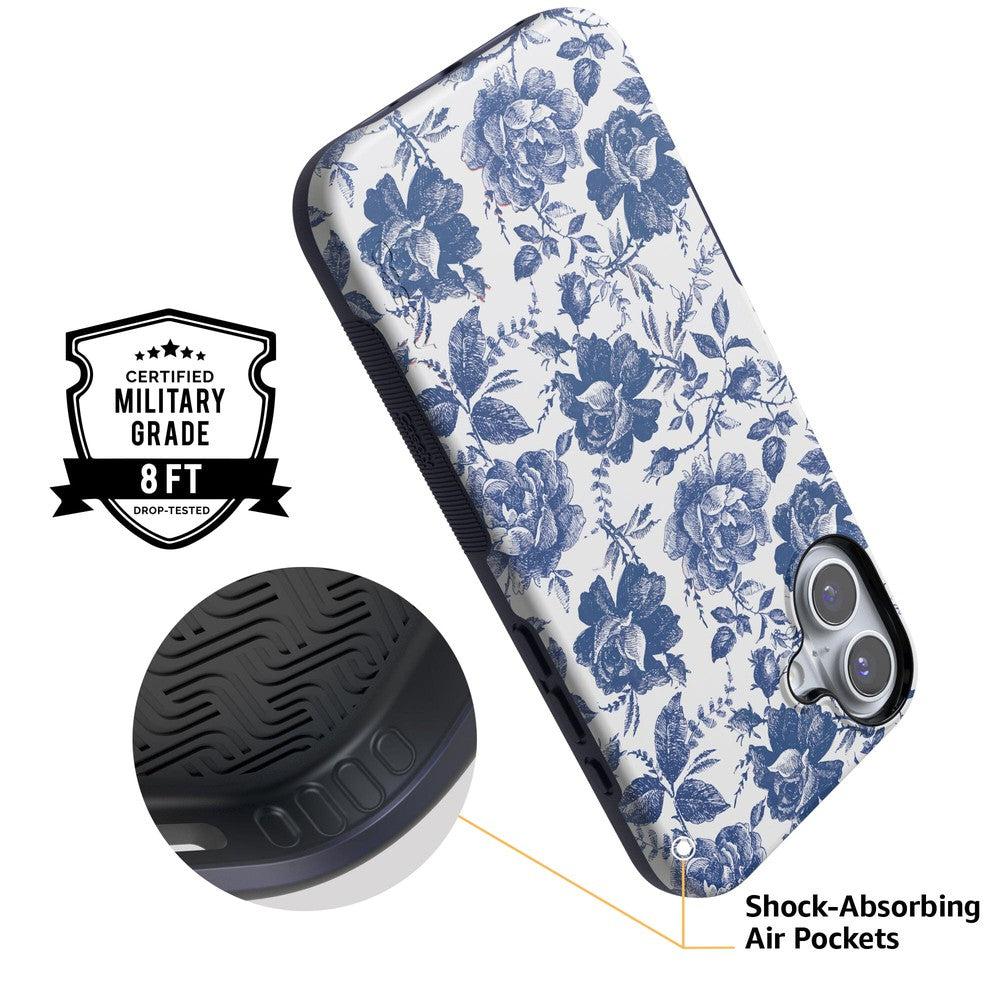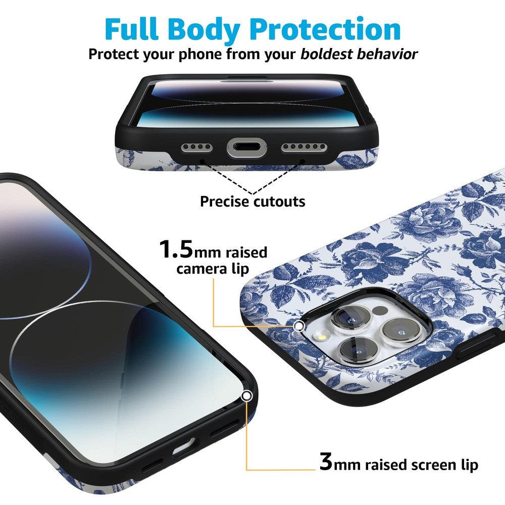 This gorgeous. elegant. classic pattern is perfect for the hopeless romantic at heart. The cornflower blue floral designs strewn across the delicate white background makes this color combination perfect for any sweet-heart themed outfit. Think flowy skirts and sweaters. oxfords. scarves. the works. This phone cover just screams nostalgia for summer and early fall vibes. This case is perfect for a day date with friends or a love interest. and it begs to be sat down by a cup of coffee at a bookstore. As gorgeous and sweet as this case looks. don’t be deceived! It’s perfectly able to withstand some hard falls. With specifically rounded edges to protect your phone screen and volume buttons. you’ll never have to worry if you’re sacrificing protection for looks. This case is offered in both the Bold and Classic collections. This phone case can be purchased for all iPhones 6 and up. the latest Samsung models. and the latest Note models.