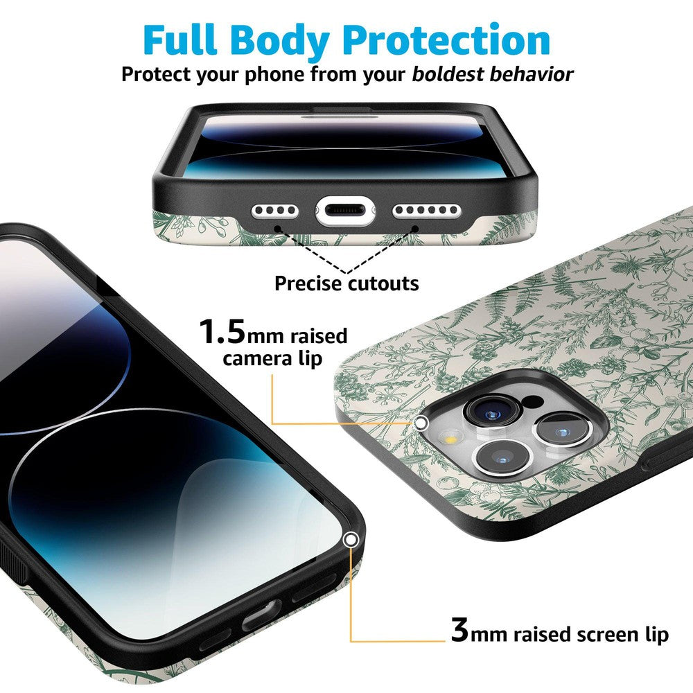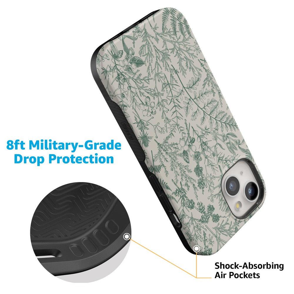 Not only does this case look great. but it’s also durable. too. Gone are the days of worrying about whether your phone has smashed after a drop. Our shock-resistant cases have your back – and Sage Garden is no exception.