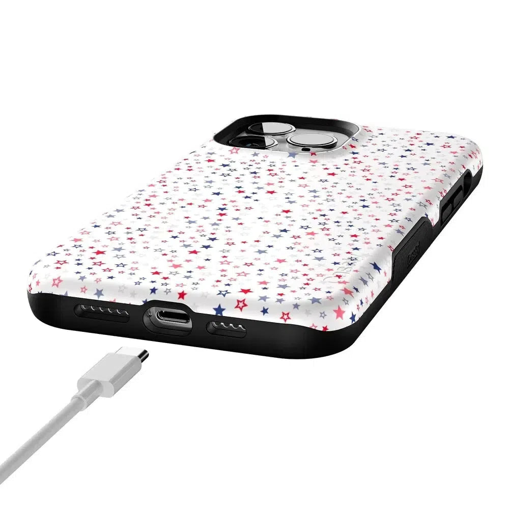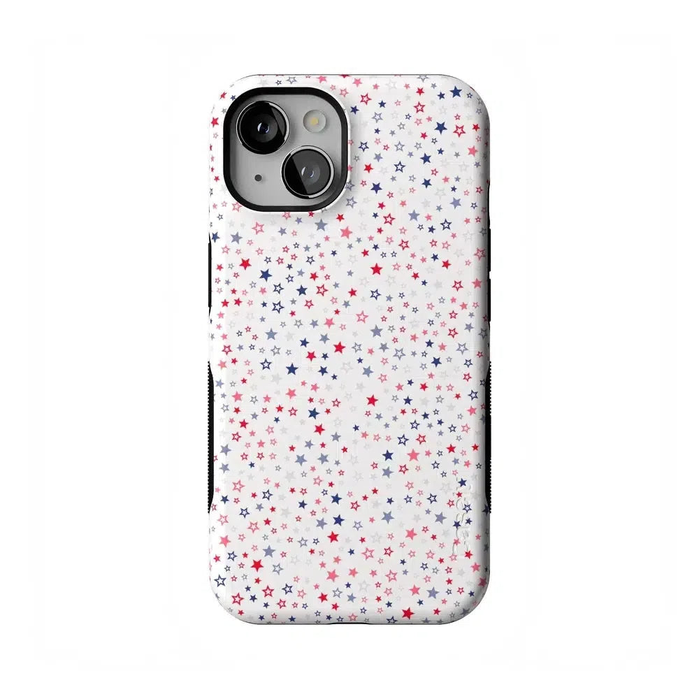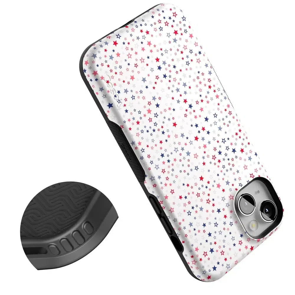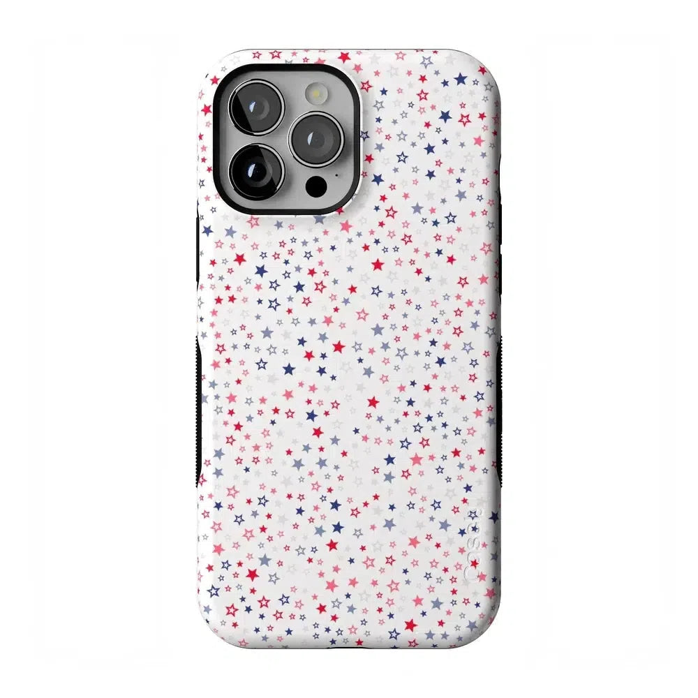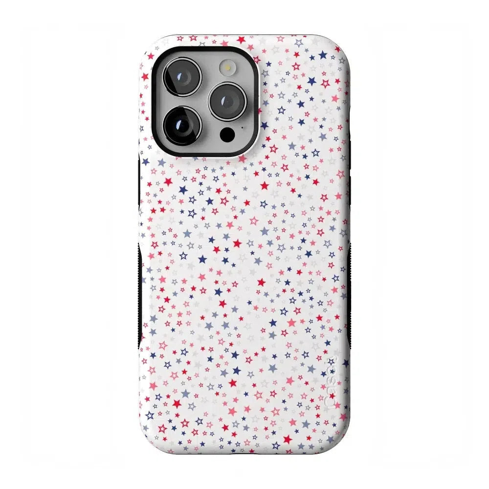 Feel the festive spirit with the vibrant red. white. and blue stars! Casely’s Seeing Stars Red. White & Blue Case captures the essence of patriotic celebration with its lively and eye-catching design. Featuring 360掳 wrap protection. a slim profile. a 2mm raised lip for screen and camera protection. and a built-in MagSafe compatible magnet. this case ensures both style and dependable protection for all your summer adventures.