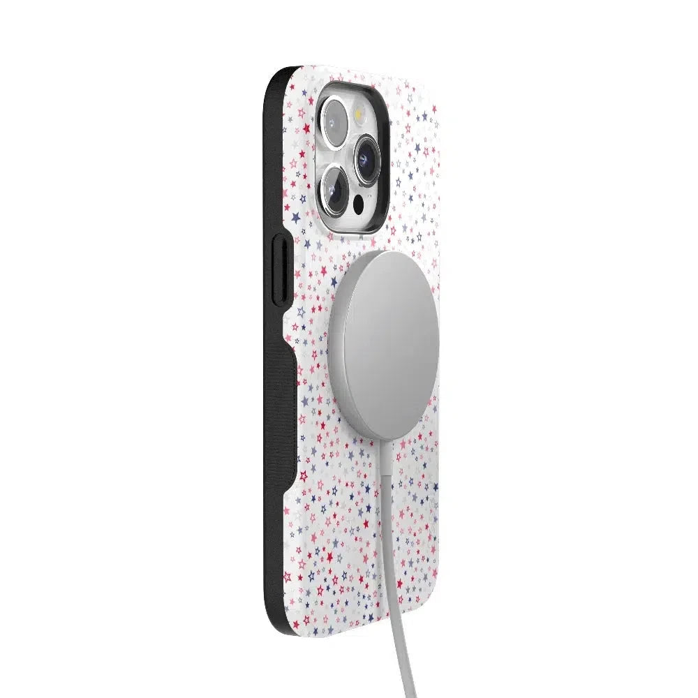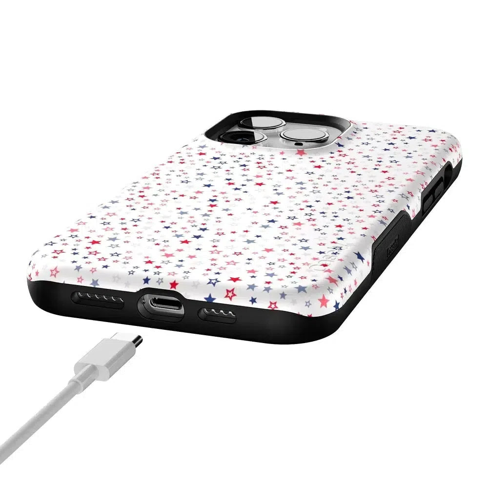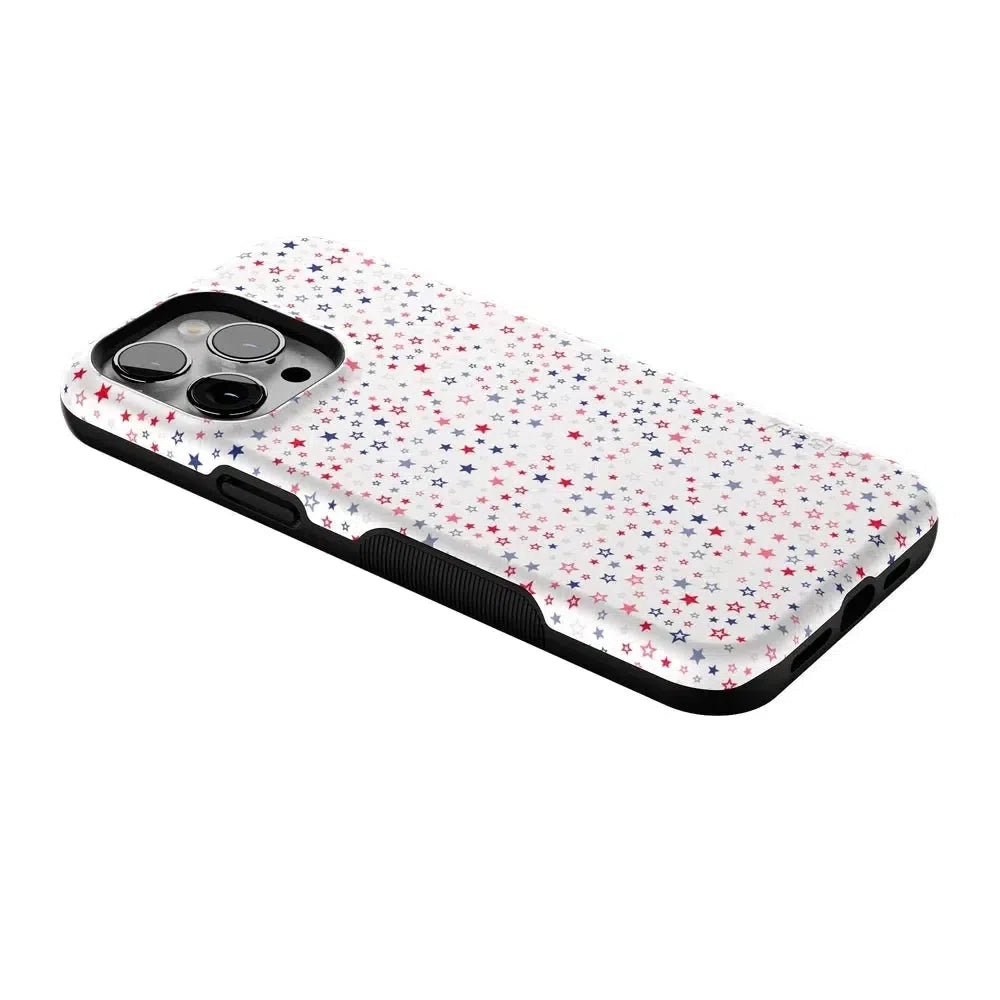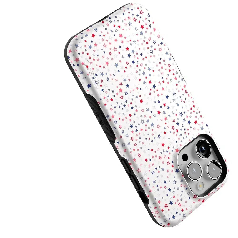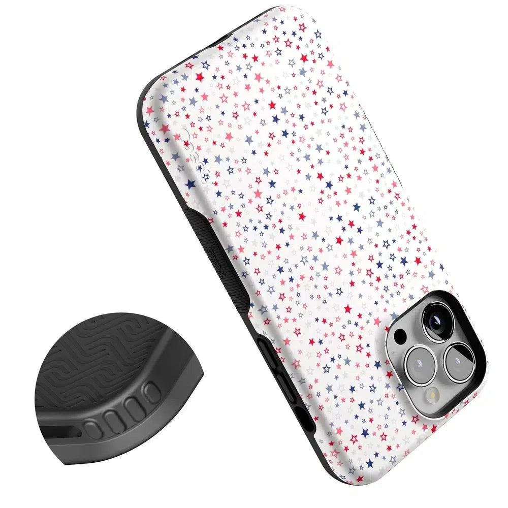Feel the festive spirit with the vibrant red. white. and blue stars! Casely’s Seeing Stars Red. White & Blue Case captures the essence of patriotic celebration with its lively and eye-catching design. Featuring 360掳 wrap protection. a slim profile. a 2mm raised lip for screen and camera protection. and a built-in MagSafe compatible magnet. this case ensures both style and dependable protection for all your summer adventures.